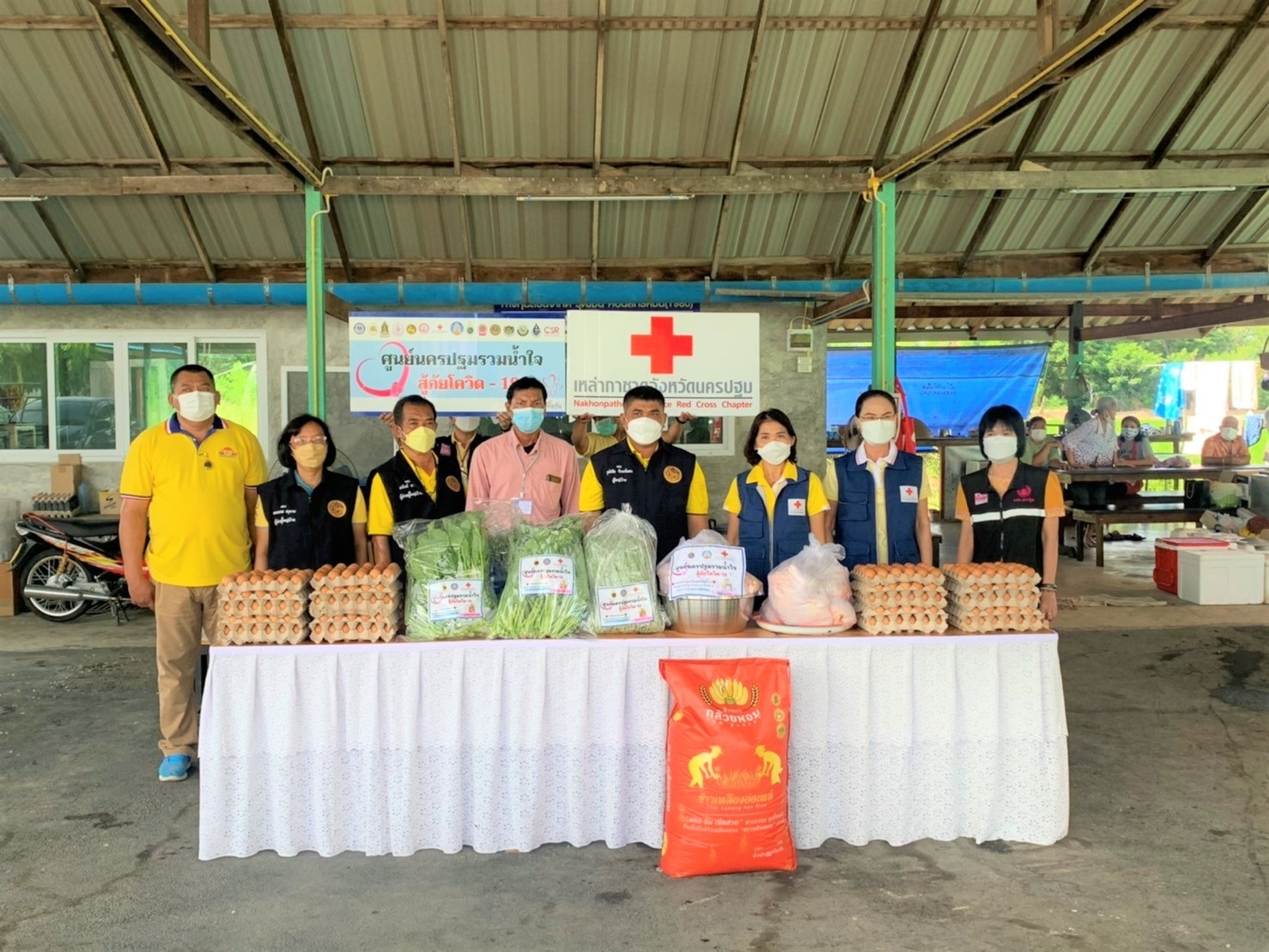 เหล่ากาชาดจังหวัดนครปฐมลงพื้นที่เยี่ยมเยียนให้กำลังใจ พร้อมมอบชุดอาหารสดให้โรงครัวขององค์กรปกครองส่วนท้องถิ่น นำไปประกอบอาหารปรุงสุก ส่งมอบให้กับผู้แยกกักตัวที่บ้าน (Home Isolation) ผู้สัมผัสเสี่ยงสูง