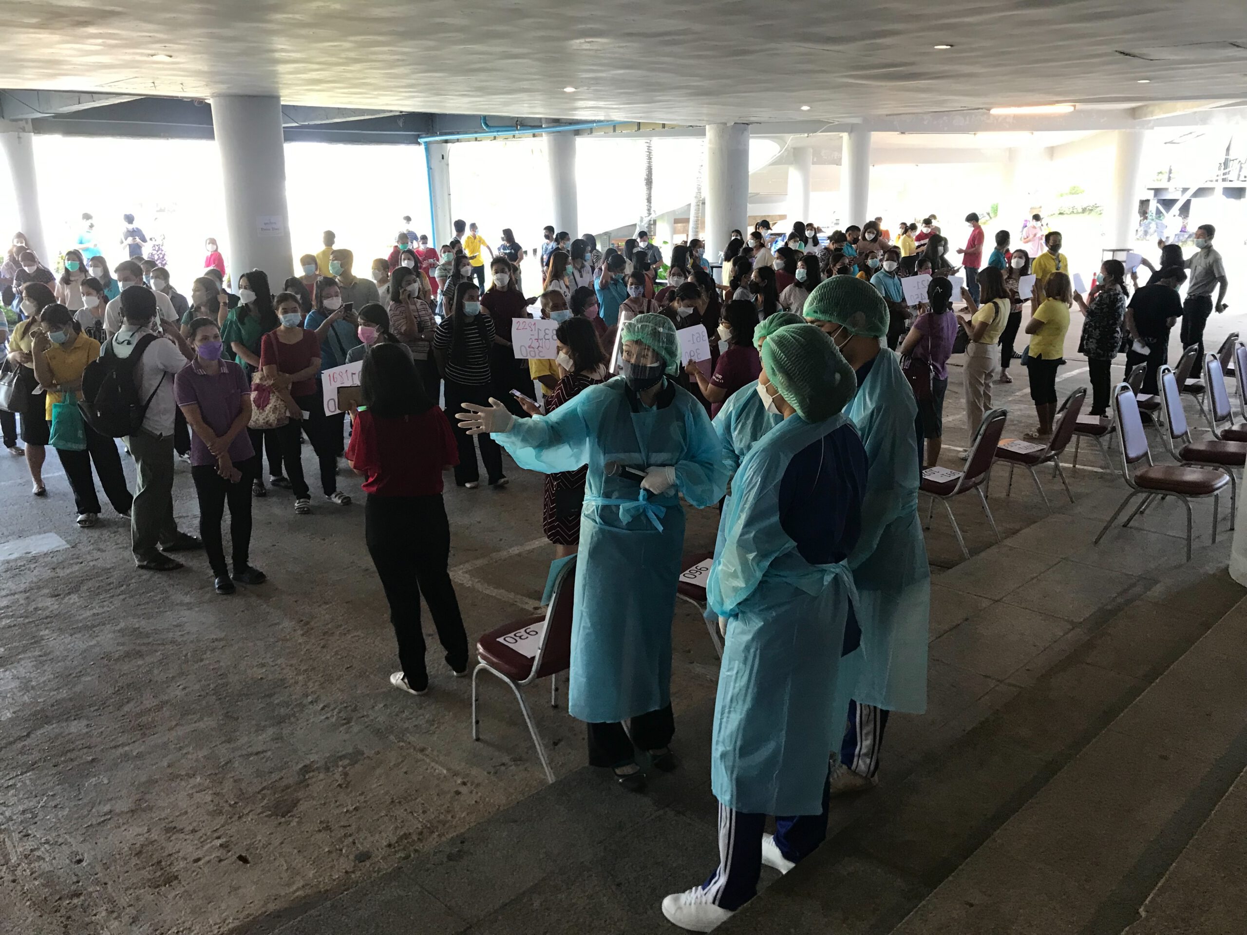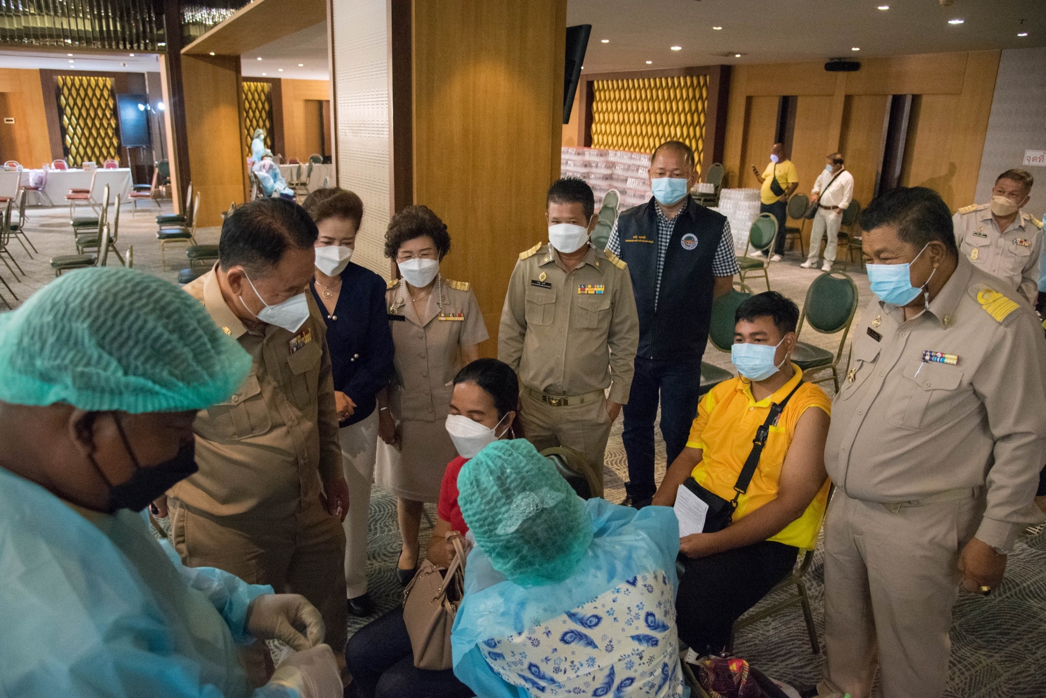 ซึ่งบริการฉีดวัคซีนให้กับประชาชนตั้งแต่เวลา 07.45 -16.00 น. ภาพรวมการให้บริการเป็นไปด้วยความเรียบร้อย โดยผู้รับบริการฉีดวัคซีนส่วนใหญ่วันนี้เป็นกลุ่มบุคลากรทางการศึกษา กลุ่มอาสาสมัครต่างๆ เช่น อสม. เจ้าหน้าที่กู้ภัย ผู้ให้บริการขนส่งสาธารณะ เช่น พนักงานขับรถโดยสารธารณะ ผู้ขับขี่รถจักรยานยนต์รับจ้าง พระสงฆ์ นักบวช และผู้ด้อยโอกาสทางสังคม และได้เปิดบริการช่องทางพิเศษ drive thru ให้กับประชาชนกลุ่มเป้าหมาย ประกอบด้วย ผู้สูงอายุ ผู้พิการ ผู้ป่วยโรคเรื้อรังหรือจำเป็นต้องใช้รถเข็น หญิงมีครรภ์ 12 สัปดาห์ขึ้นไป และพระสงฆ์ ซึ่งมีผู้ใช้บริการ drive thru จำนวน 79 คน