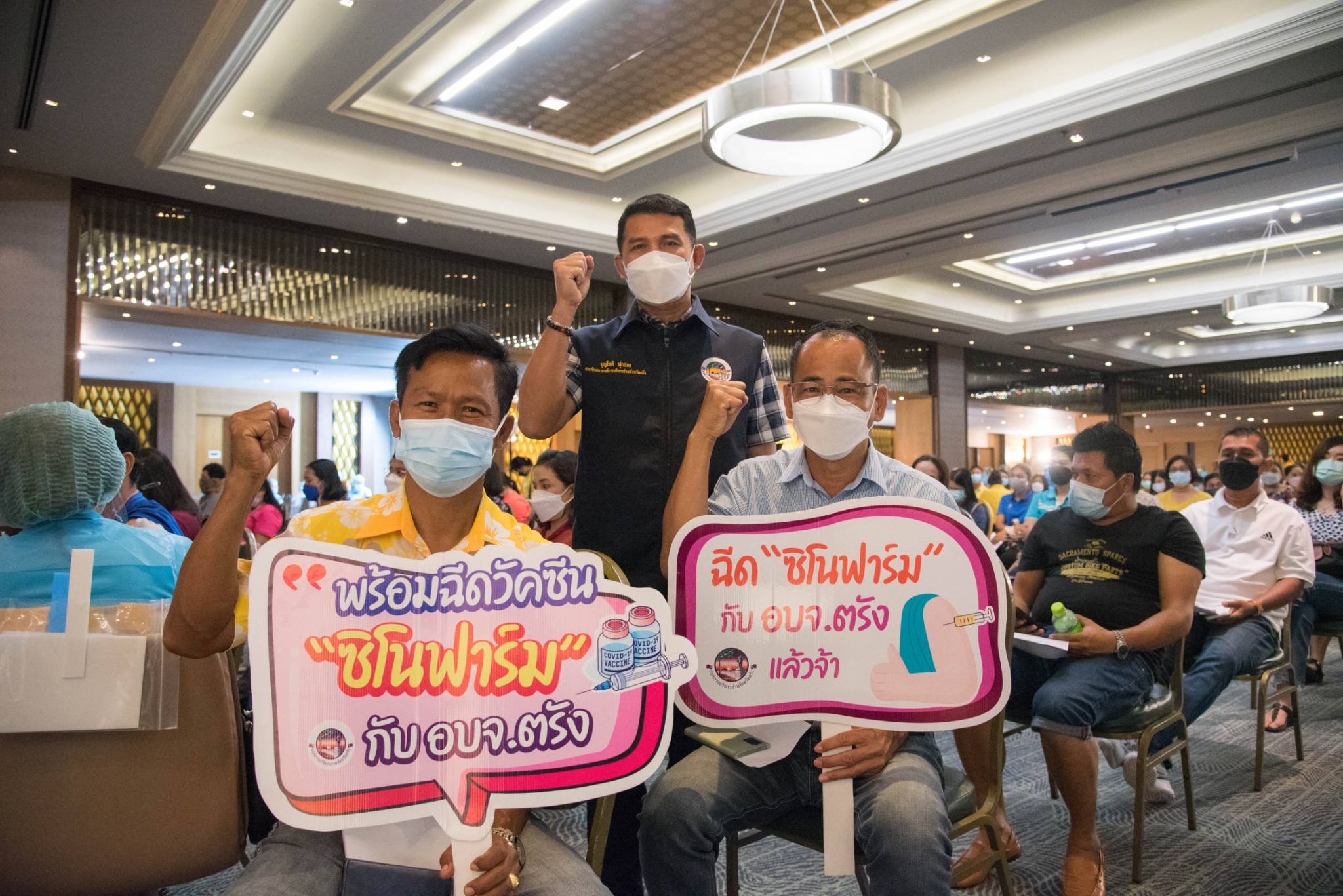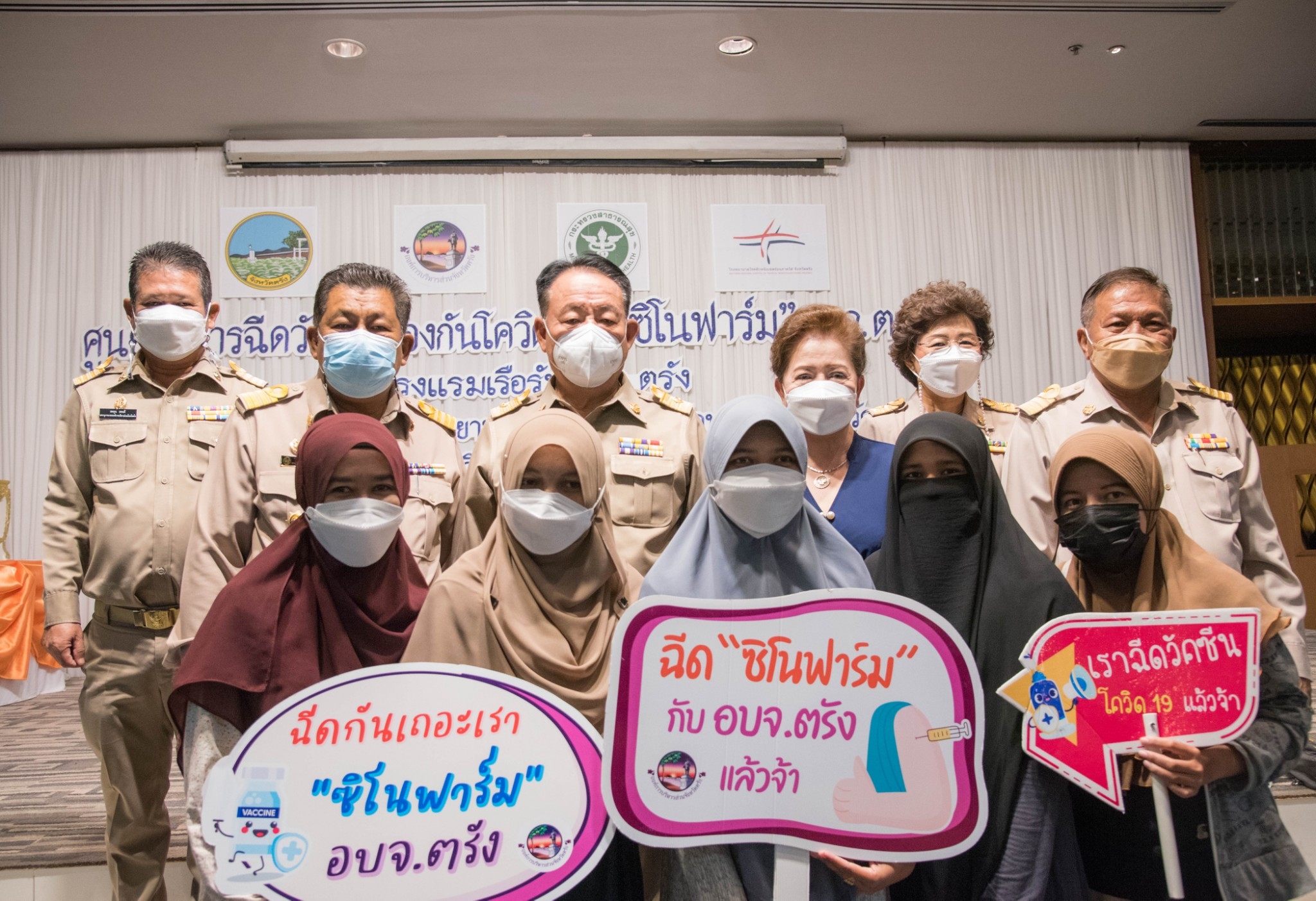 ข้อมูลการฉีดวัคซีนซิโนฟาร์มให้กับประชาชนในจังหวัดตรัง ขององค์การบริหารส่วนจังหวัดตรัง ตั้งแต่วันที่ 2 – 30 สิงหาคม 2564 ฉีดเข็มแรกเสร็จแล้วจำนวน 9 อำเภอ จาก 10 อำเภอ ประชาชนตามเป้าหมายได้รับวัคซีนแล้วกว่า 40,000 คน ซึ่งจะบริการฉีดจนครบ 44,000 คน ครอบคลุมทั้ง 10 อำเภอ ตามที่ได้รับการจัดสรรวัคซีนจากราชวิทยาลัยจุฬาภรณ์ และได้ทยอยบริการฉีดวัคซีนซิโนฟาร์มเข็มที่ 2 ไปแล้ว 10 อำเภอ โดยมีกำหนดบริการแล้วเสร็จภายใน 15 กันยายน 2564 ซึ่งจะช่วยใสร้างภูมิคุ้มกันหมู่ให้กับประชาชนในจังหวัดตรัง ทั้งนี้ โดยภาพรวมทั้งจังหวัดตรังประชาชนได้รับวัคซีนป้องกันโควิด -19 จากรัฐบาลและที่องค์กรปกครองส่วนท้องถิ่นจัดซื้อบริการประชาชนเข็มแรกแล้ว จำนวน 185,557 ราย หรือ 43.25 %
