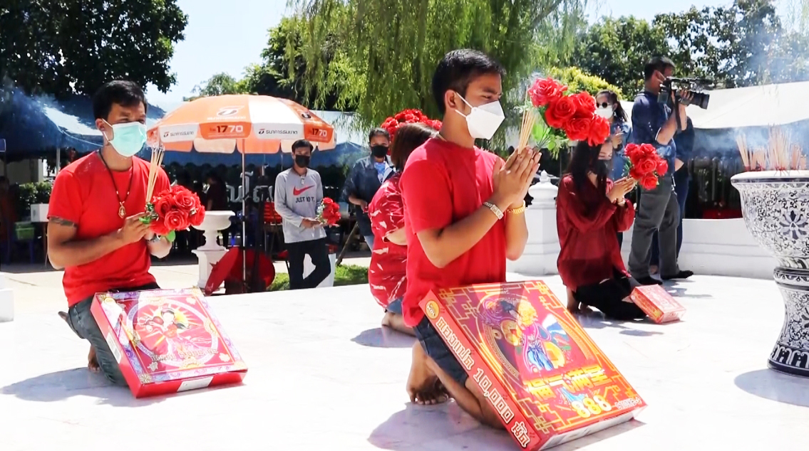 สุพรรณบุรี คอหวยแห่ขอโชคลาภท้าวเวสสุวรรณวัดพังม่วงคึกคัก