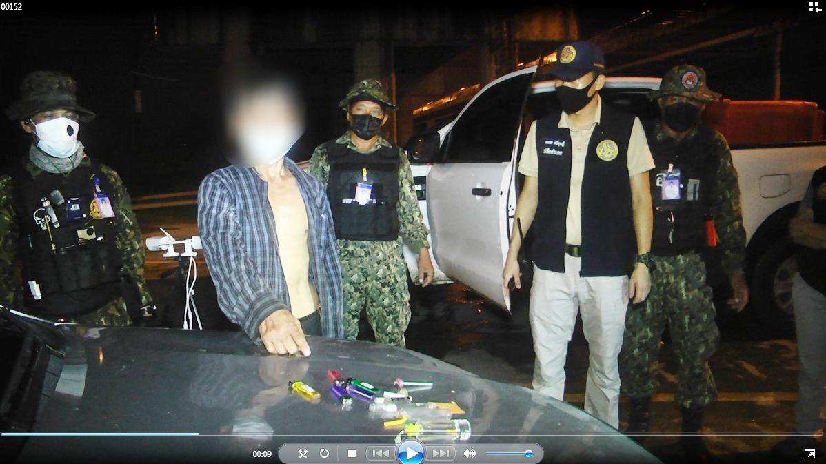 จากนั้นเจ้าหน้าที่ได้ย้ายตั้งจุดตรวจที่ถนนสายโพธิ์พระยา-บ้านกร่าง ต.มดแดง อ.ศรีประจันต์ พบรถกระบะสีขาวขับมาตามถนนที่ตั้งจุดตรวจเจ้าหน้าที่จึงเรียกตรวจค้นและให้คนขับลงจากรถเพื่อทำการตรวจค้นและ สอบถามทราบชื่อนายแก้ว นามสมมุติ อายุ 50 ปีเบื้องต้นนายแก้ว เล่าว่าตนมีอาชีพขายปลาหมึกเพิ่งกลับจากบ้านเพื่อน แต่เจ้าหน้าที่ไม่เชื่อเนื่องจากนายแก้ว ท่าทางมีพิรุธ เจ้าหน้าที่จึงตรวจค้นในรถพบทั้งใบกระท่อม อุปกรณ์เสพยาไฟแช็กแก๊สจำนวนมากและซองพลาสติกใสภายในมียาไอซ์ติดอยู่จึงถ่ายภาพนายแก้ว พร้อมของกลางที่พบในรถไว้เป็นหลักฐาน เมื่อจนด้วยหลักฐานนายแก้ว รับว่าเพิ่งเสพยาไอซ์ มาและยาไอซ์ดังกล่าวได้ฝากคนรู้จักกันไปซื้อในราคา 200บาทหลังจากเสพยาไอซ์เสร็จก็จะไปรับลูกชายเพื่อเดินทางไปซื้อปลาหมึกที่ จ.สมุทรสาคร เจ้าหน้าที่จึงบันทึกทำประวัติและพฤติกรรมไว้เป็นหลักฐานเพื่อรอเรียกตัวเข้าสู่กระบวนการบำบัดรักษา