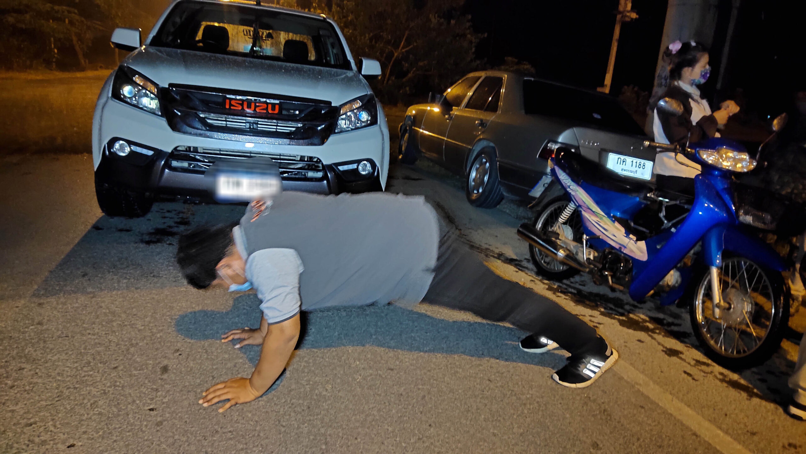 ระหว่างที่เจ้าหน้าที่กำลังตรวจค้นรถกระบะอยู่นั้นได้มีนายเอ นามสมมุติ อายุ 40 ปีพ่อค้าขายล็อตดเตอรี่ได้ขับขี่รถจักรยานยนต์ฝ่าสายฝนผ่านมาเจ้าหน้าที่จึงเรียกตรวจค้นแต่ไม่พบสิ่งของผิดกฎหมาย สอบถามนายเอ ซึ่งอยู่ในอาการมึนเมาพูดจาไม่ค่อยรู้เรื่องรับสารภาพว่าได้ไปตั้งวงดื่มสุรากับเพื่อนที่ในพื้นที่ อ.เมืองสุพรรณบุรี ตั้งแต่บ่ายสอง จนดึกและไม่ทราบว่ากี่ทุ่มกระทั่งภรรยาโทรศัพท์มาตามให้กลับบ้านจึงรีบกลับโดยขับรถอ้อมมาตามถนนสายเลี่ยงเมือง เพราะตนไม่อยากชนกับคนอื่นเจ้าหน้าที่ถามว่ารู้หรือไม่ว่าเป็นเวลาเคอร์ฟิว นายแก้ว ตอบว่ารู้แต่ตอนนี้ไม่รู้กี่โมง เจ้าหน้าที่จึงให้นายแก้วนั่งพักเพื่อให้สร่างเมา กระทั่งเลิกตั้งจุดตรวจด้วยความสงสารเจ้าหน้าที่ต่างพากันช่วยซื้อล็อตเตอรี่ของนายแก้ว จนเกือบหมดแผงเนื่องจากโค้งสุดท้ายใกล้วันหวยออก จากนั้นนั้น เจ้าหน้าที่ได้สั่งทำโทษนายแก้ว ด้วยการวิดพื้น 20 ครั้งพร้อมว่ากล่าวตักเตือนไม่ให้ทำผิดกฎหมายบ้านเมืองให้ปฏิบัติตามมาตรการป้องกันการแพร่ระบาดเชื้อไวรัสโควิด 19 ของกระทรวงสาธารณสุขอย่างเคร่งครัดก่อนปล่อยตัวกลับบ้านโดยก่อนกลับนายแก้ว หันมาบอกกับเจ้าหน้าที่อีกว่าพรุ่งนี้จะมาใหม่