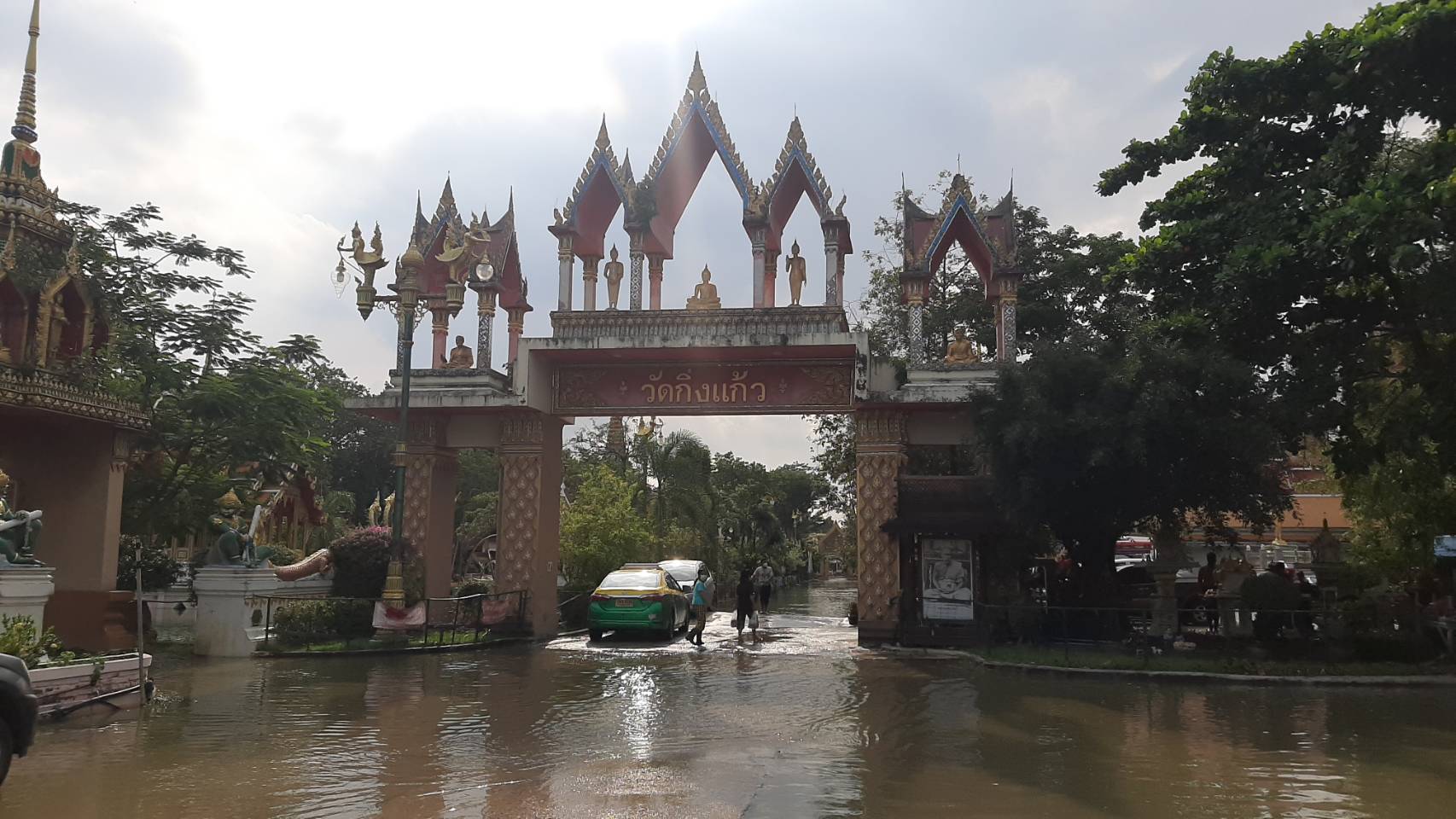 *****นายรัชพล ทองดี มัคทายกของวัด ได้เล่าว่า ปริมาณน้ำดังกล่าวสืบเนื่องจากเมื่อกลางดึกเมื่อคืนนี้ได้มีฝนตกลงมาอย่างหนักทำให้ปริมาณน้ำฝนเข้าท่วมขังภายในโบสถ์และวิหารของวัดกิ่งแก้ว ซึ่งตั้งอยู่ริมถนนกิ่งแก้ว ต.ราชาเทวะ อ.บางพลี จ.สมุทรปราการ ซึ่งโบสถ์และวิหารของวัดกิ่งแก้วแห่งนี้ได้จดเป็นโบราณสถาน ทางวัดจึงพยายามสูบน้ำออกอย่างเร่งด่วนเพื่อรักษาโบราณสถานไว้ และจากการตรวจสอบพบว่ามีปริมาณน้ำได้ไหลทะลักเข้าไปท่วมในโบสถ์สูงประมาณ 20 เซนติเมตรเกรงว่าความเสียหายจะเกิดกับโบสถ์ เพราะโบสถ์เป็นโบราณสถานที่มีอายุมายาวนานหลายสิบปี