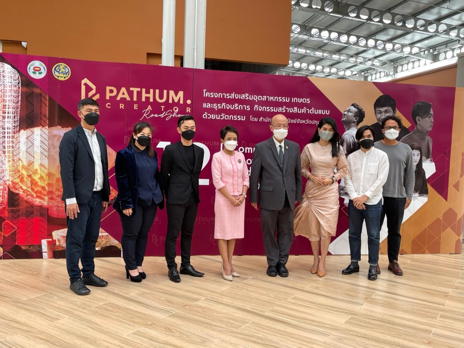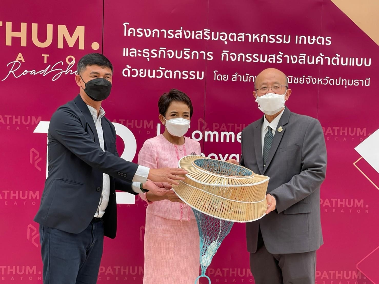 นางรวีพรรณ ช้างเย็นฉ่ำ พาณิชย์จังหวัดปทุมธานี กล่าวว่า สำนักงานพาณิชย์จังหวัดปทุมธานีส่งเสริมขับเคลื่อนเศรษฐกิจโดยดำเนินตามนโยบาย “ตลาดนำการผลิต” ปัจจุบันสถานการณ์โควิดทำให้พฤติกรรมของผู้บริโภคเปลี่ยนแปลงไป สามารถทำงานที่ไหนก็ได้ การตกแต่งมุมทำงานในแต่ละที่จึงสำคัญ เป็น “เทรนด์วิถีใหม่” เป็นสินค้าที่ตลาดต้องการและมีแนวโน้มสูง จึงได้ดึงนักออกแบบผลิตภัณฑ์ชั้นนำมาออกแบบผลิตภัณฑ์นวัตกรรมต้นแบบ เชิงพาณิชย์จังหวัดปทุมธานี พร้อมจัดแสดงอวดโฉมให้ชมในงานแสดง “Pathum Creator Roadshow” ครั้งนี้ ซึ่งเป็นผลงานการออกแบบและสร้างสรรค์จากภูมิปัญญาพื้นถิ่น ให้บุคคลทั่วไปได้รับชมและรับทราบรายละเอียดพร้อมสัมผัสผลงานจริงจำนวน 12 ผลงาน