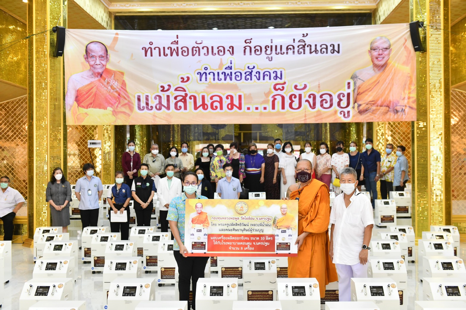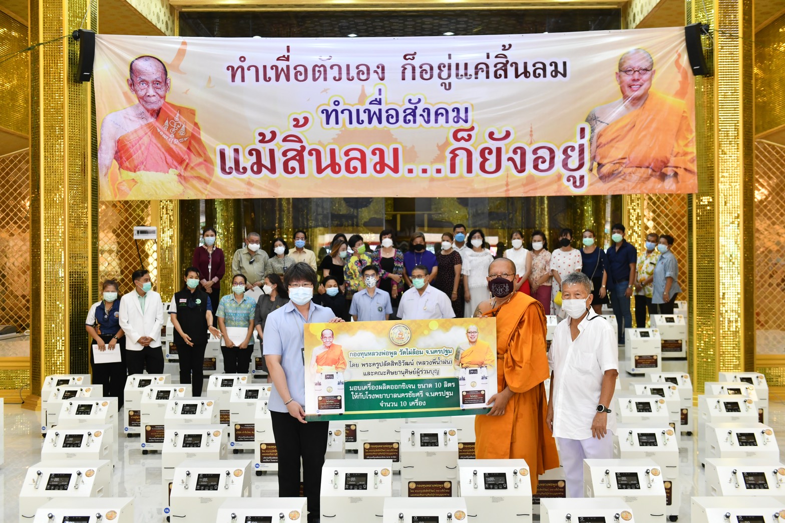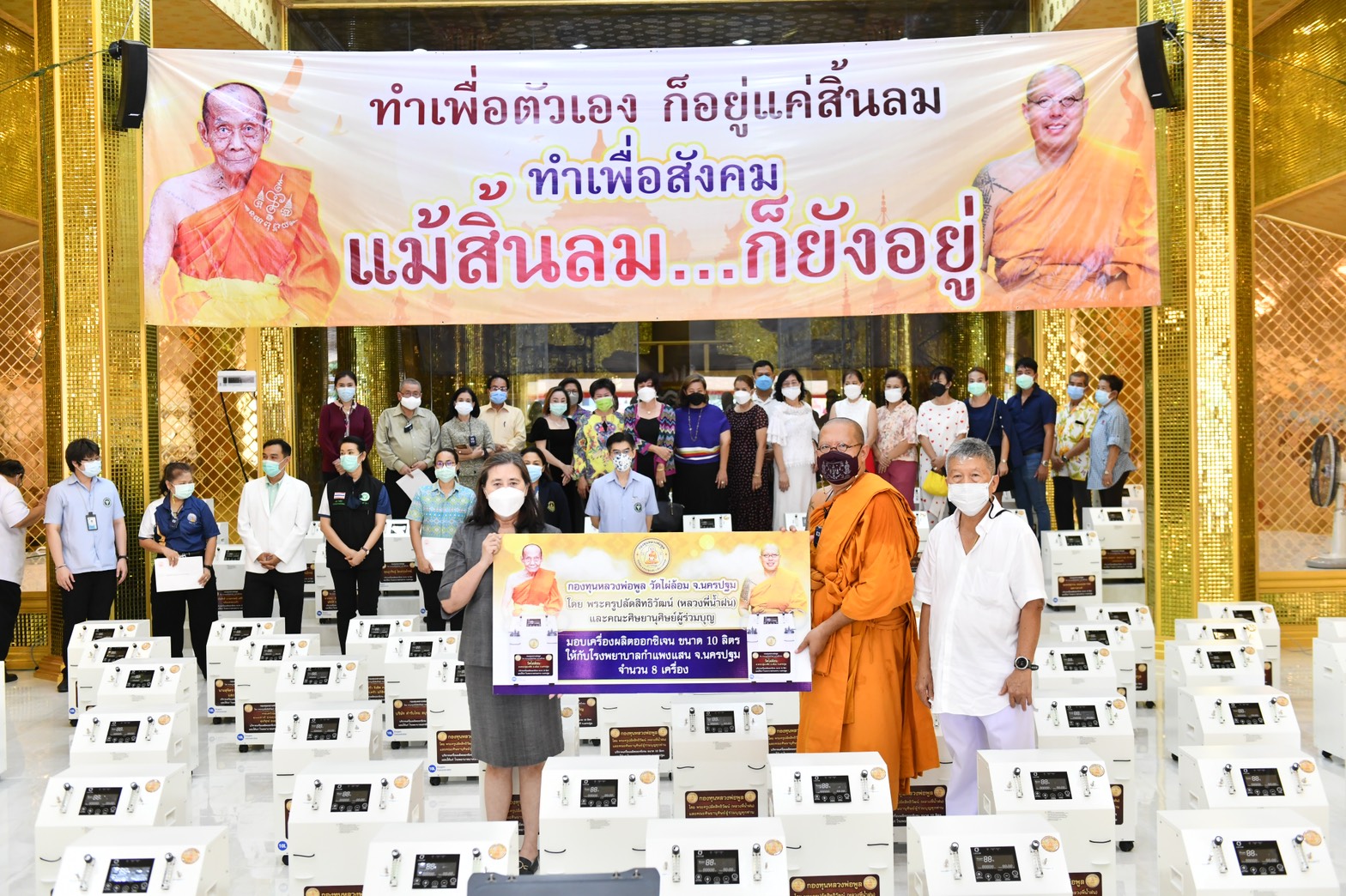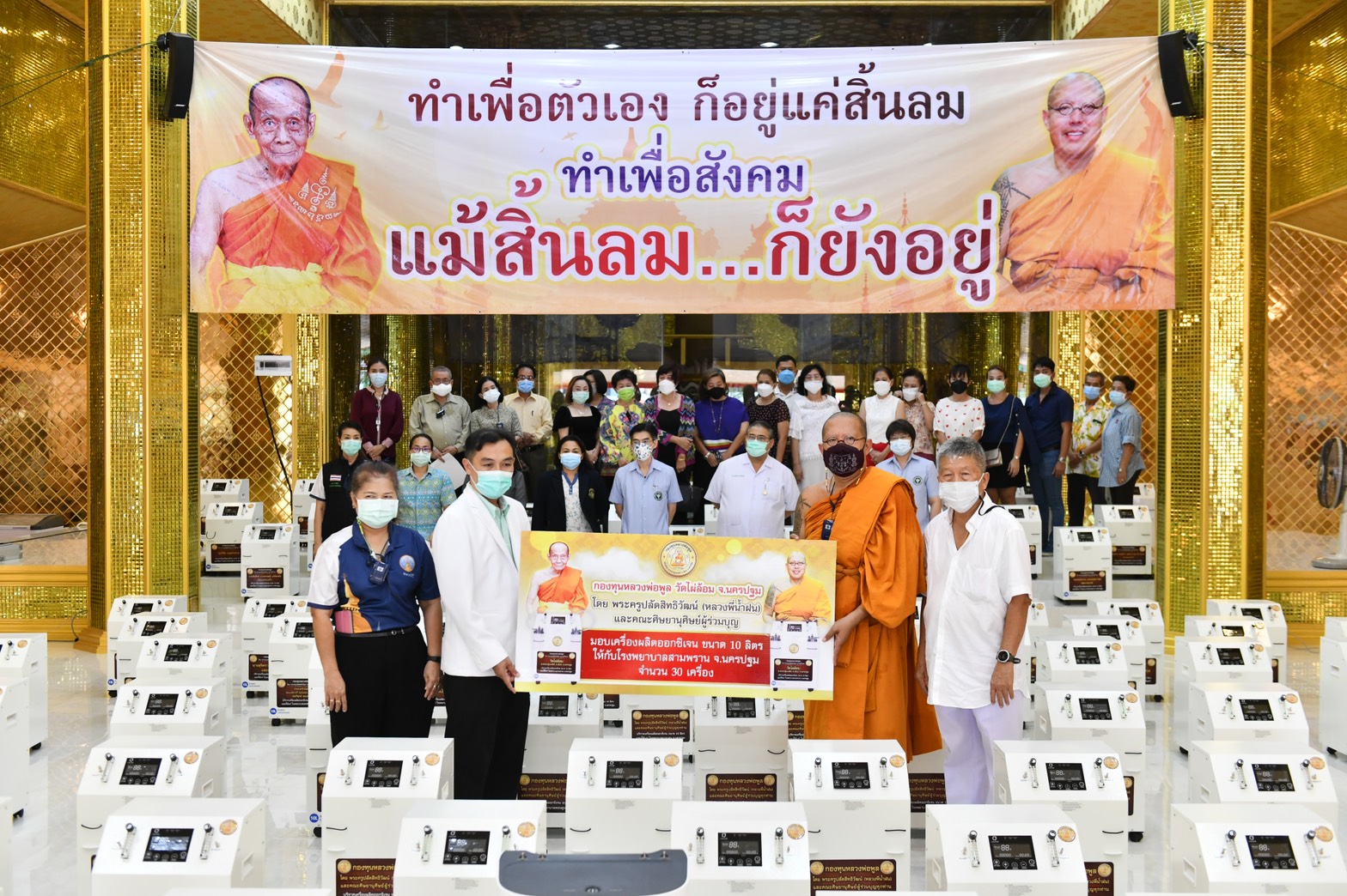 นครปฐม หลวงพี่น้ำฝนมอบเครื่องผลิตออกซิเจน 96 เครื่องให้9โรงพยาบาล