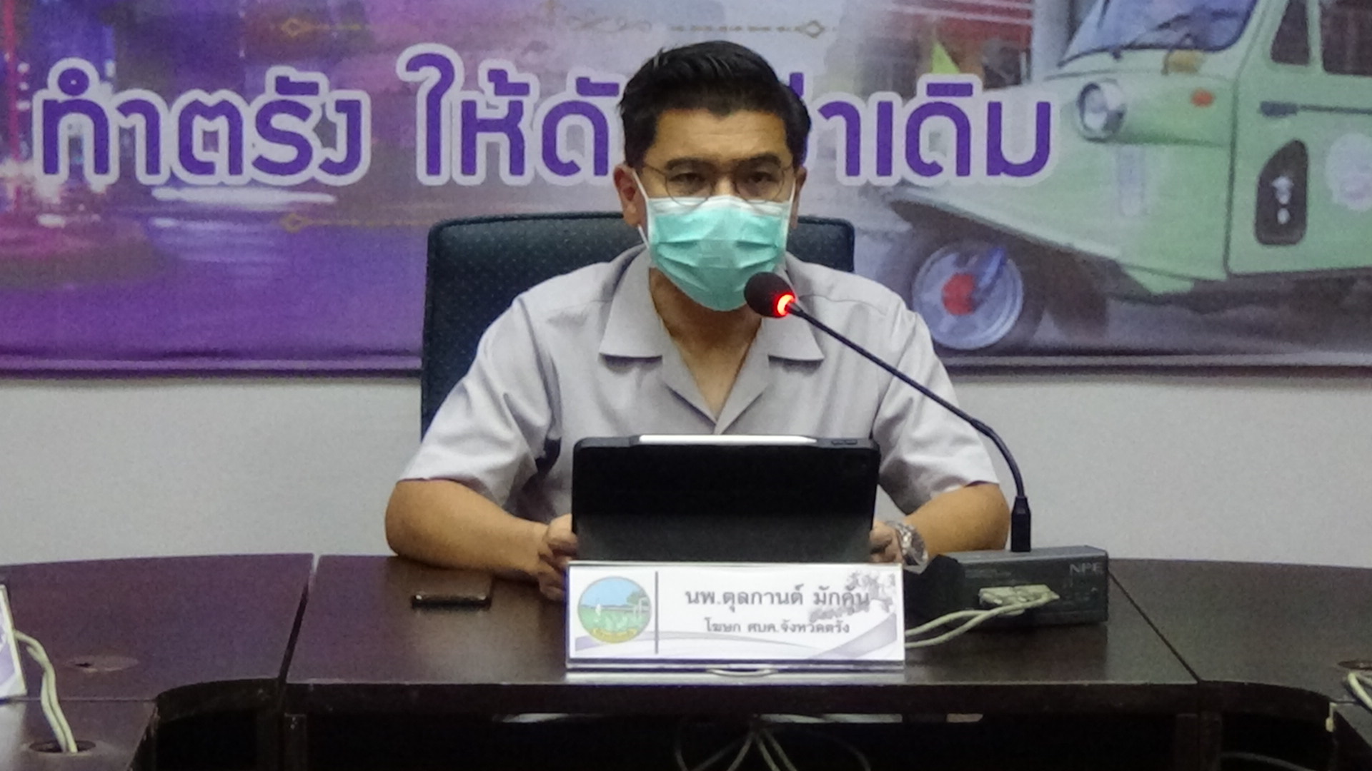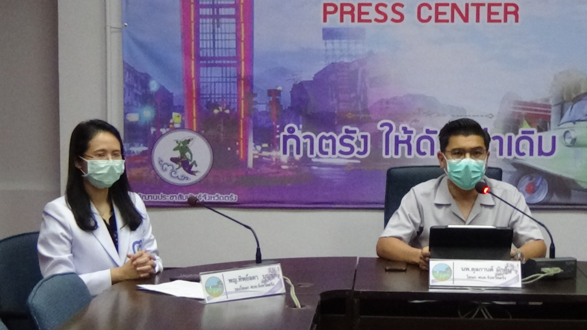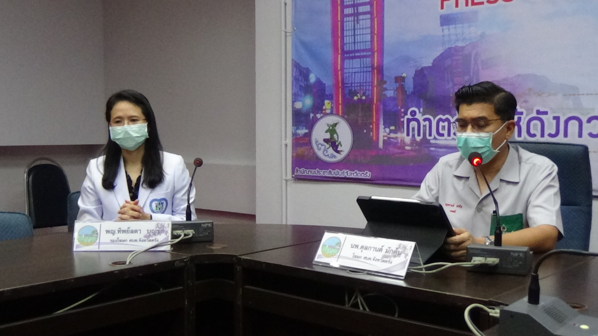 ที่ศูนย์แถลงข่าว ศูนย์บริหารสถานการณ์การแพร่ระบาดของโรคติดเชื้อไวรัสโคโรนา 2019 จังหวัดตรัง ห้องลิบง ชั้น 2 ศาลากลางจังหวัดตรัง นายแพทย์ ตุลกานต์ มักคุ้น นายแพทย์ชำนาญการพิเศษ โรงพยาบาลตรัง ในฐานะโฆษกศูนย์บริหารสถานการณ์การแพร่ระบาดของโรคติดเชื้อไวรัสโคโรนา 2019 จังหวัดตรัง พร้อมด้วยแพทย์หญิงทิพย์ลดา บุญชัย นายแพทย์ชำนาญการโรงพยาบาลตรัง ในฐานะรองโฆษกศูนย์บริหารสถานการณ์การแพร่ระบาดของโรคติดเชื้อไวรัสโคโรนา 2019 ร่วมแถลงข่าวสถานการณ์การแพร่ระบาดของโรคติดเชื้อไวรัสโคโรนา 2019 พบผู้ป่วยโควิด 19 รายใหม่ 53 ราย เป็นผู้ติดเชื้อในจังหวัดตรัง 50ราย มาจากที่อื่น 3 ราย นับเป็นผู้ติดเชื้อตามการระบาดระลอกใหม่ตั้งแต่วันที่ 1 เมษายน 2564 จำนวน 4,584 ราย เป็นเพศชาย 21 ราย เป็นเพศหญิง 32ราย เป็นชาวไทย 50 ราย พม่า 3 ราย