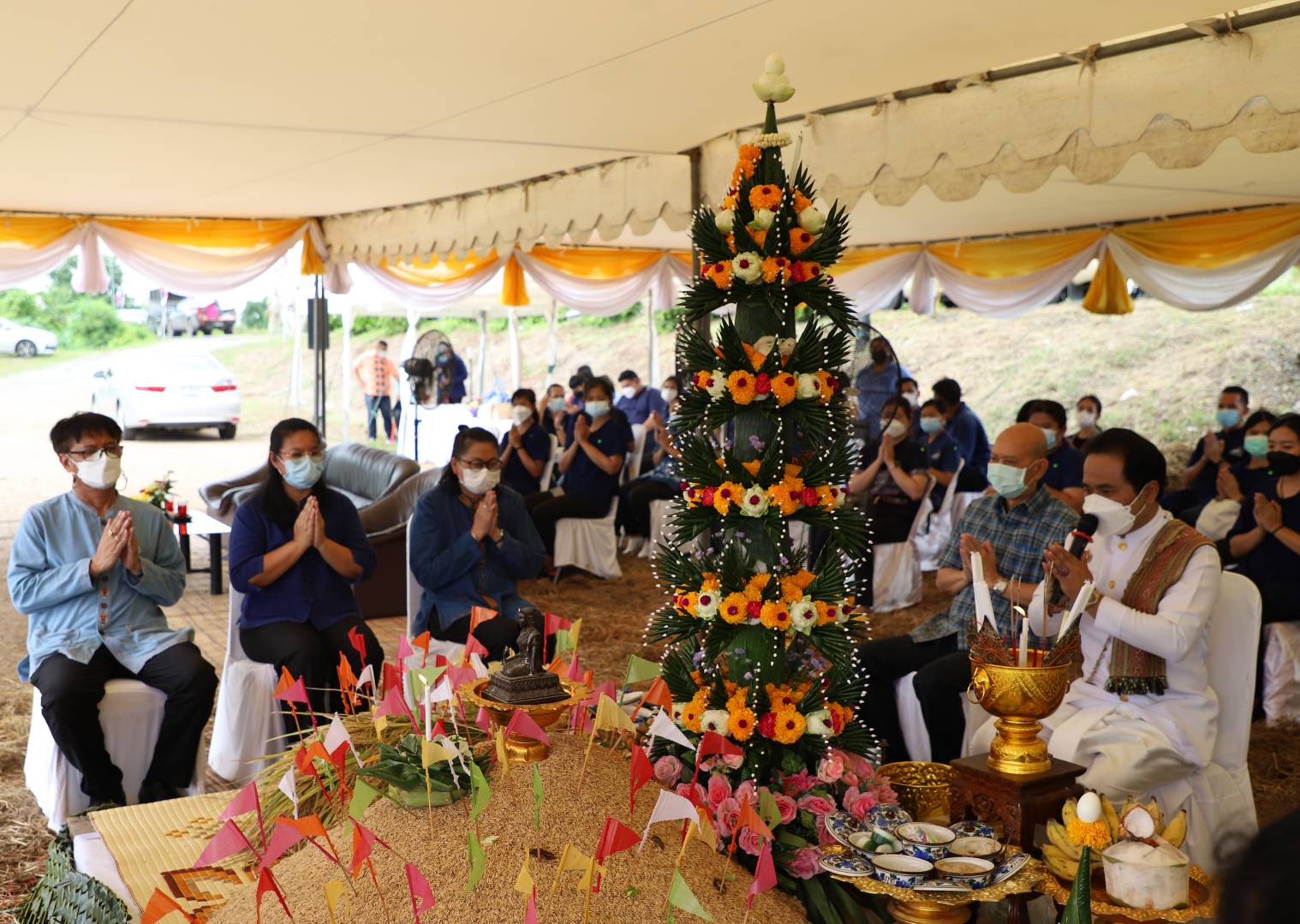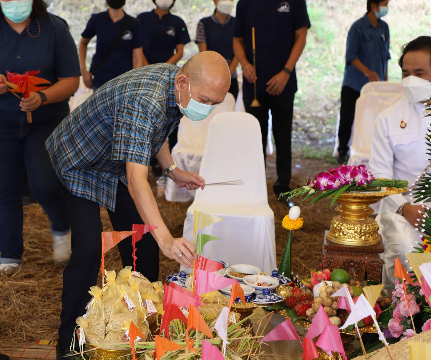 วันที่ 9 กันยายน 2564 เวลา 10:00 น. ที่แปลงนาส่วนพระองค์ (ทุ่งมะขามหย่อง) ตำบลบ้านใหม่ อำเภอพระนครศรีอยุธยา จังหวัดพระนครศรีอยุธยา นายภานุ แย้มศรี ผู้ว่าราชการจังหวัดพระนครศรีอยุธยา มอบหมายให้ นายพรพจน์ บัณฑิตยานุรักษ์ รองผู้ว่าราชการจังหวัด เป็นประธานในพิธีฯ พร้อมด้วย นายไพฑูรย์ รื่นสุข เกษตรจังหวัดพระนครศรีอยุธยา หัวหน้าส่วนราชการ เกษตรอำเภอ และเจ้าหน้าที่และเกษตรกร เข้าร่วมพิธีบวงสรวงรับขวัญพระแม่โพสพแปลงนาส่วนพระองค์ “งานสืบสานคุณค่า วิถีชาวนาไทย” และสืบสานพระราชปณิธานโครงการพระราชดำริฯ ของพระบาทสมเด็จพระเจ้าอยู่หัว รัชกาลที่ 9