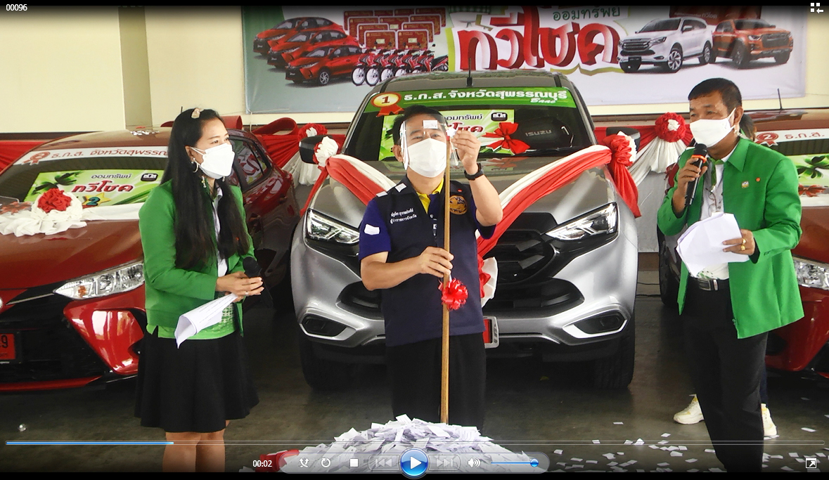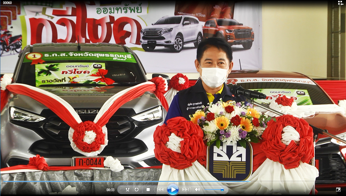 นายพิพัฒน์ เลิศปฏิภานพงษ์ ผู้อำนวยการสำงานธ.ก.ส.จังหวัดสุพรรณบุรี กล่าวว่าประชาชนหรือเกษตรกรยิ่งฝากออมทรัพย์ทวีโชค มากยิ่งมีโอกาสถูกรางวัลมาก เป็นการส่งเสริมให้ประชาชนทุกสาขาอาชีพได้มีการเก็บออมเงิน และรู้จักประหยัด อันจะนำไปสู่ความมั่นคงทางเศรษฐกิจ และความเข้มแข็งของครอบครัว ธ.ก.ส.ได้มุ่งเน้นช่วยเหลือเกษตรกร สนับสนุนและพัฒนาให้ประชาชนในภาคชนบทให้มีความเป็นอยู่ที่ดีขึ้นอย่างมั่นคง และยั่งยืนทางด้านการเงิน เพื่อมุ่งเน้นยกระดับคุณภาพชีวิตของเกษตรกรและประชาชนทั่วไป