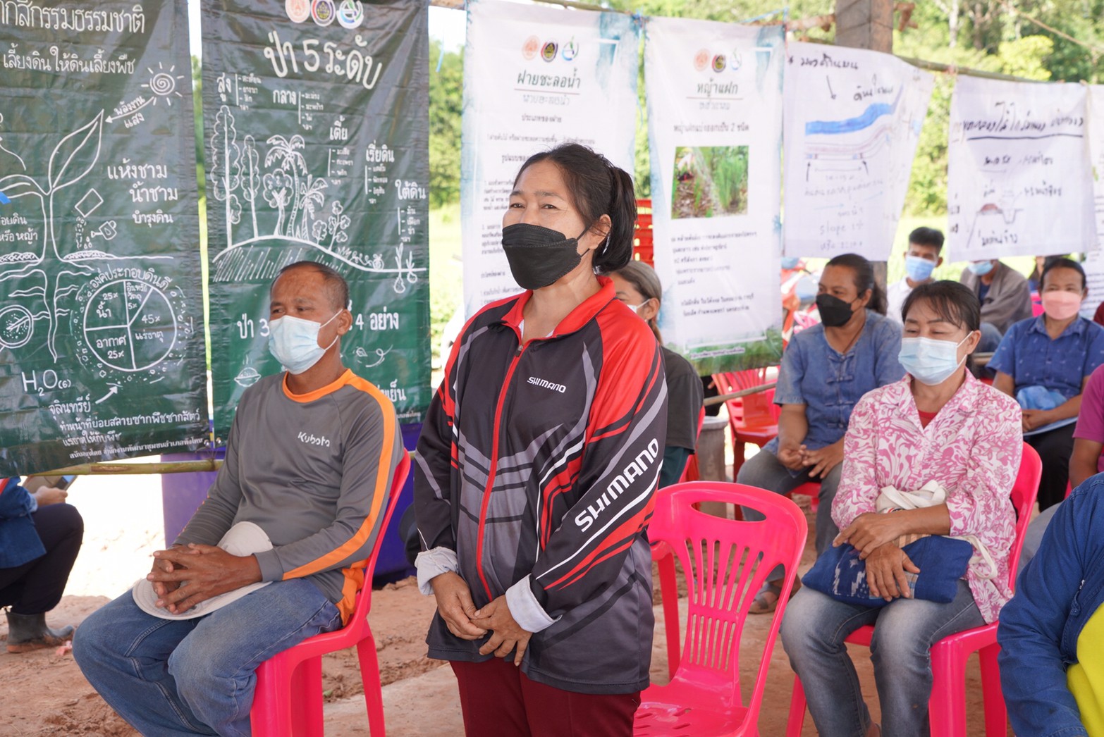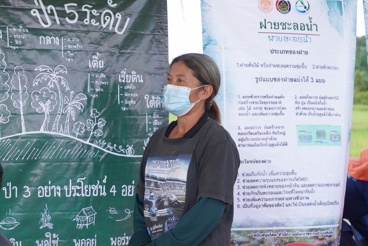 โอกาสนี้ผู้เข้าร่วมโครงการฯ ได้กล่าวขอบคุณ แสดงความรู้สึกภูมิใจและดีใจที่ได้มีส่วนร่วมกับโครงการฯ จากที่เราไม่มีความรู้เกี่ยวกับโคก หนอง นา พอเราได้มาสัมผัสและลงมือปฏิบัติจริง ทำให้เรารู้จักกับความสุข ความยั่งยืนในชีวิต มีการปลูกพืชผักสวนครัว เลี้ยงเป็ด เลี้ยงไก่ ปลูกไม้ 5ระดับ บนคันนาทองคำ เพื่อฟื้นฟูระบบนิเวศที่สมบูรณ์ มีการกักเก็บน้ำไว้ใช้ในยามแห้งเเล้ง มีการเรียนรู้ตามหลักกสิกรรมธรรมชาติ ทำให้เกิดการบริหารจัดการดินและน้ำได้อย่างมีประสิทธิภาพ ทำให้คุณภาพชีวิตของพวกเราดีขึ้น
