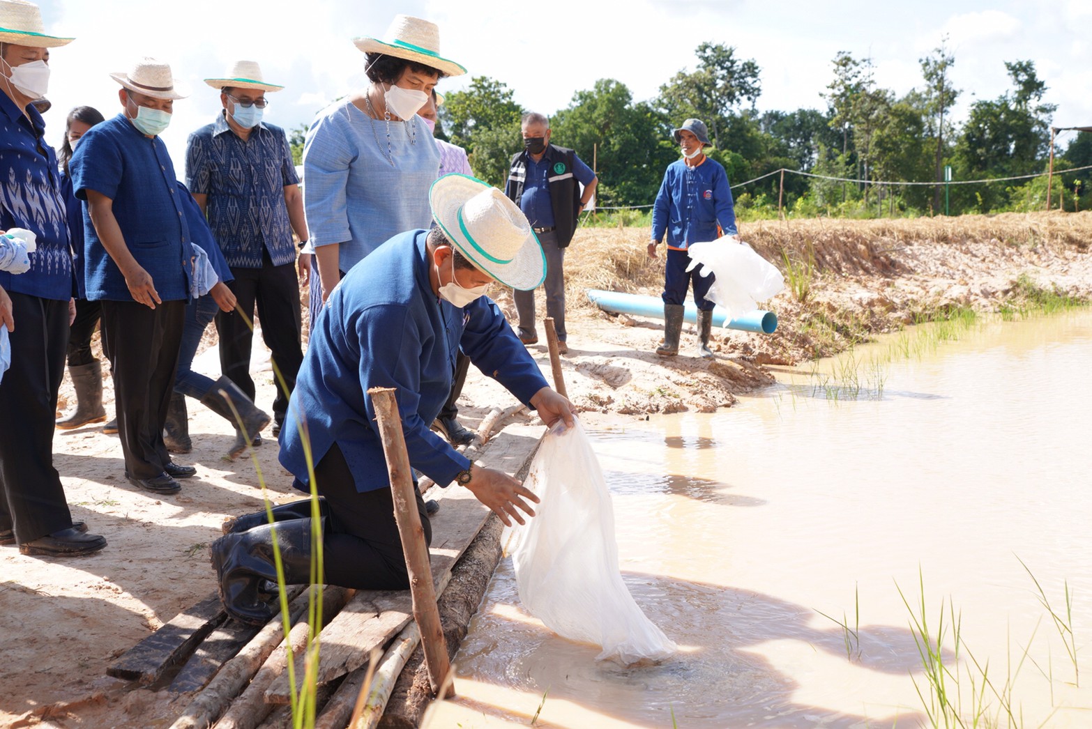 จากนั้น อธิบดีกรมการพัฒนาชุมชน ได้ร่วมกิจกรรม ปล่อยปลาจำนวน 5,000 ตัว ประกอบด้วย ปลานิล ปลาตะเพียน ปลานวลจันทร์ รวมถึงปลูกต้นพะยูง พืชสมุนไพร ฟ้าทะลายโจร จำนวน 50 ต้น กระชาย จำนวน 50 ต้น และร่วมกันห่มดิน ใส่ปุ๋ยและน้ำหมักชีวภาพ ด้วยการแห้งชามน้ำชาม สุดท้ายนี้ จึงขอฝากความหวังของกรมการพัฒนาชุมชนที่อยากเห็นพี่น้องประชาชนทุกคนมีความมั่นคงในชีวิต และมีคุณภาพชีวิตที่ดีขึ้น สามารถช่วยเหลือตนเองและประเทศชาติได้อย่างยั่งยืนต่อไป อธิบดีพช.กล่าว