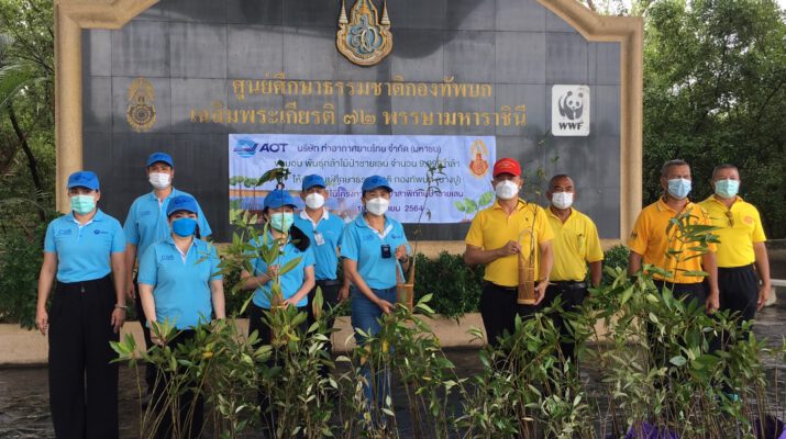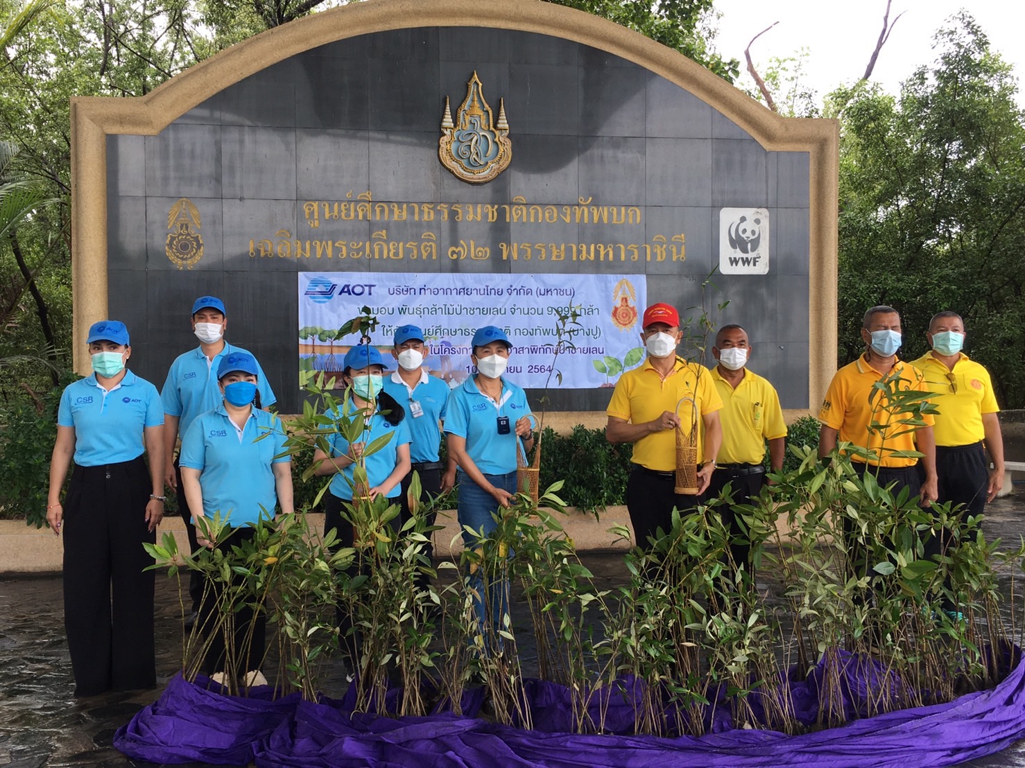 เมื่อเวลา 10.00 น.วันที่ 10 กันยายน 2564 นางร่มเกล้า ษรานุรักษ์ ผู้อำนวยการฝ่ายกิจการเพื่อสังคม บริษัท ท่าอากาศยานไทย จำกัด (มหาชน) (ทอท.) พร้อมด้วยคณะผู้บริหาร ได้เดินทางมาที่ศูนย์ศึกษาธรรมชาติกองทัพบก (บางปู) จ.สมุทรปราการ มอบพันธุ์ต้นกล้าไม้โกงกาง จำนวน 9,999 ต้น ตามโครงการ “ทอท.อาสาพิทักษ์ป่าชายเลน” ประจำปี 2564 ให้กับ พันเอก ศุภฤกษ์ ผลฉาย ผู้อำนวยการศูนย์ศึกษาธรรมชาติกองทัพบก ( บางปู ) ก่อนร่วมกันลงมือปลูกต้นกล้าไม้โกงกางที่บริเวณป่าชายเลน หน้าศูนย์ศึกษาธรรมชาติกองทัพบก ( บางปู ) จ.สมุทรปราการ โดยมีกำลังเจ้าหน้าที่ทหารของกองทัพบก ร่วมปลูกต้นกล้าไม้โกงกางและดูแลป่าชายเลนแห่งนี้เป็นระบบนิเวศต่อไป