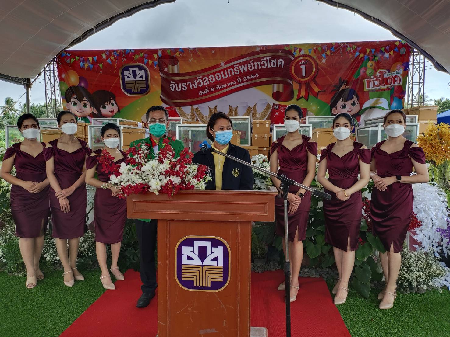สำหรับปีนี้รางวัลออมทรัพย์ทวีโชคครั้งที่ 1 / 2564 มีมูลค่ารวม 7, 677, 300 บาท โดยรางวัลที่ 1 เป็น รถยนต์โตโยต้า 4 ประตูยกสูง 1 คัน มูลค่า 800,000 บาทรางวัลที่ 2 2 รางวัลรถเก๋ง โตโยต้า ยาริส 2 คันมูลค่า 1, 098, 000 บาท รางวัลที่ 3 รถจักรยานยนต์ honda wave 110 จำนวน 25 คัน รางวัลที่ 4 ทองคำหนัก 1 บาท 50 เส้น แบะรางวัลที่ 5 ทองคำหนัก 2 สลึง 129 เส้นรางวัลที่ 6 ทองคำหนัก 1 สลึง 175 เส้นรางวัลที่ 7 ข้าวสาร A,,Rice 70 กระสอบ, ผลการจับรางวัลรถยนต์โตโยต้ายกสูง 4 ประตู รางวัลที่ 1 ได้แก่ นายสมใจ เพชรประดับ อยู่ที่ สาขากุยบุรี รางวัลที่ 2 รถเก๋ง โตโยต้า ยาริส 2 คัน นางวาสนา ฑิตะลำพูน สาขาหัวหินคันที่ 2 ได้แก่นางสัมฤทธิ์ ยิ้มมาก สาขาเกาะยายฉิม ส่วนรางวัลที่ 3 ที่ 4 ที่ 5 ที่ 6 ที่ 7 ให้ติดต่อดูรายชื่อตามสาขาใกล้ๆบ้านท่านทุกสาขาและมีกำหนดการรับรางวัล ภายใน 90 วัน