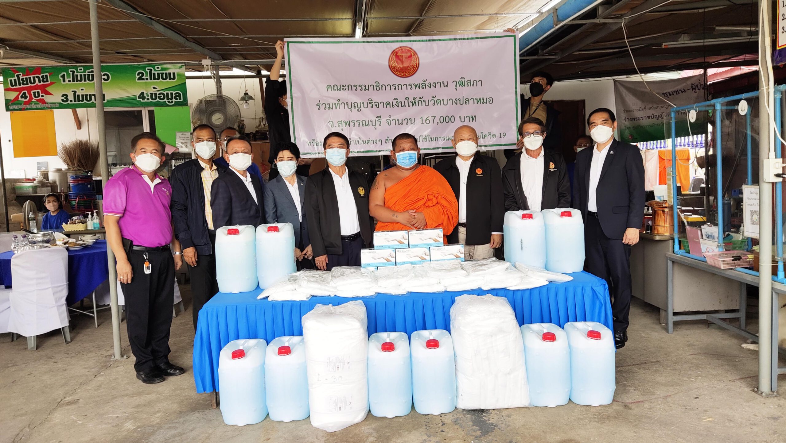 สุพรรณบุรี กมธ.พลังงานวุฒิสภามอบวัสดุป้องกันโควิดให้ด่านสุดท้ายวัดบางปลาหมอ