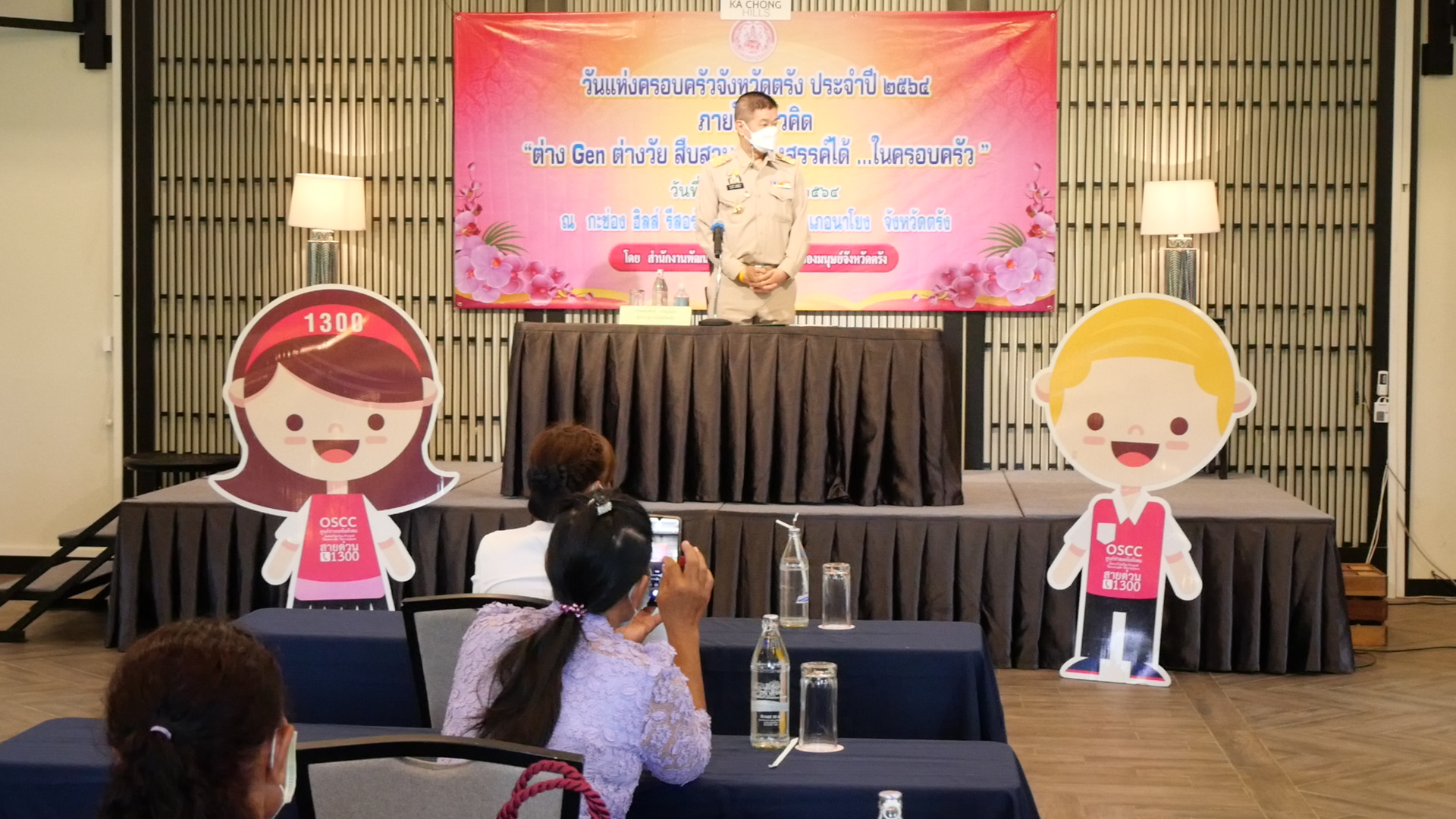 กรมกิจการสตรีและสถาบันครอบครัว ขอความร่วมมือจังหวัดตรัง ดำเนินการประชาสัมพันธ์และคัดเลือกครอบครัวร่มเย็น จำนวน 3 ครอบครัว และคัดเลือกบุคคลดีเด่นด้านการพัฒนาครอบครัว จำนวน 1 คน หรือตามจำนวนที่เหมาะสม ตามหลักเกณฑ์การคัดเลือกที่กำหนด โดยได้ขอความร่วมมือจังหวัดตรัง ดำเนินการมอบเกียรติบัตรให้แก่ครอบครัวร่มเย็น และบุคคลดีเด่นด้านการพัฒนาครอบครัว ประจำปี 2564 ที่ผ่านการคัดเลือก เพื่อเชิดชูเกียรติ ในงานวันแห่งครอบครัวระดับจังหวัด ประจำปี 2564 ภายใต้แนวคิด “ต่าง Gen ต่างวัย สืบสานสร้างสรรค์ได้ …ในครอบครัว”ซึ่งจังหวัดตรังได้มีครอบครัวที่ได้รับการคัดเลือกเป็นครอบครัวร่มเย็น จำนวน 5 ครอบครัว และคัดเลือกบุคคลดีเด่นด้านการพัฒนาครอบครัว จำนวน 6 คนและมีการมอบทุนการศึกษาเพื่อช่วยเหลือครอบครัว อีก 6 ทุนการศึกษา เนื่องจากสถานการณ์การแพร่ระบาดของโรคติดเชื้อไวรัสโคโรนา 2019(COVID – 19) ระลอกใหม่ในห้วงเดือนเมษายน 2564 ซึ่งจังหวัดตรังได้รับผลกระทบจากสถานการณ์ดังกล่าว ทำให้ไม่สามารถจัดกิจกรรมวันแห่งครอบครัวในห้วงเดือนดังกล่าวได้สำนักงานพัฒนาสังคมและความมั่นคงของมนุษย์จังหวัดตรังจึงได้จัดทำกิจกรรมวันแห่งครอบครัวจังหวัดตรัง ประจำปี 2564 ขึ้นในวันนี้