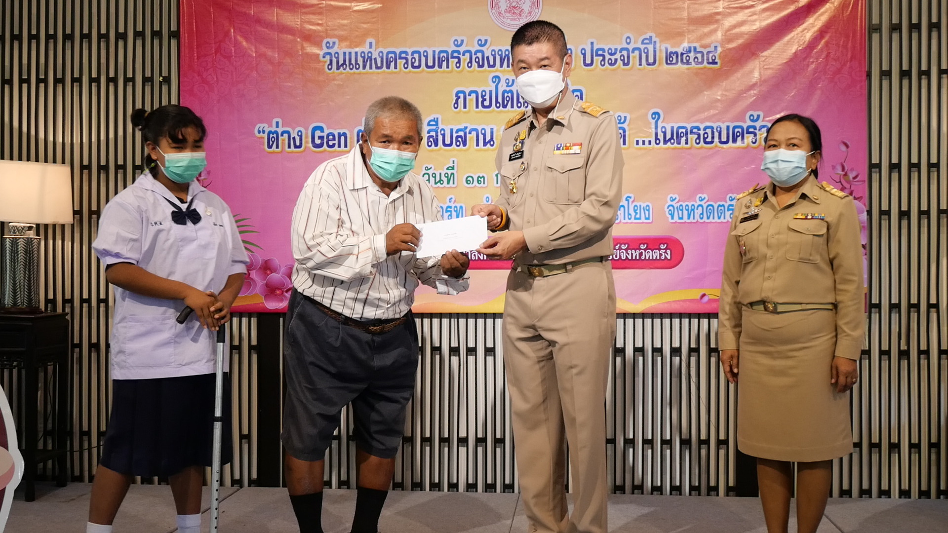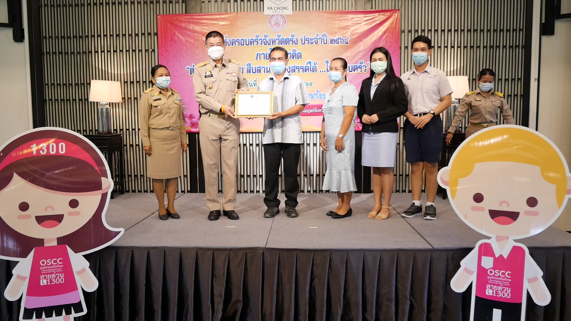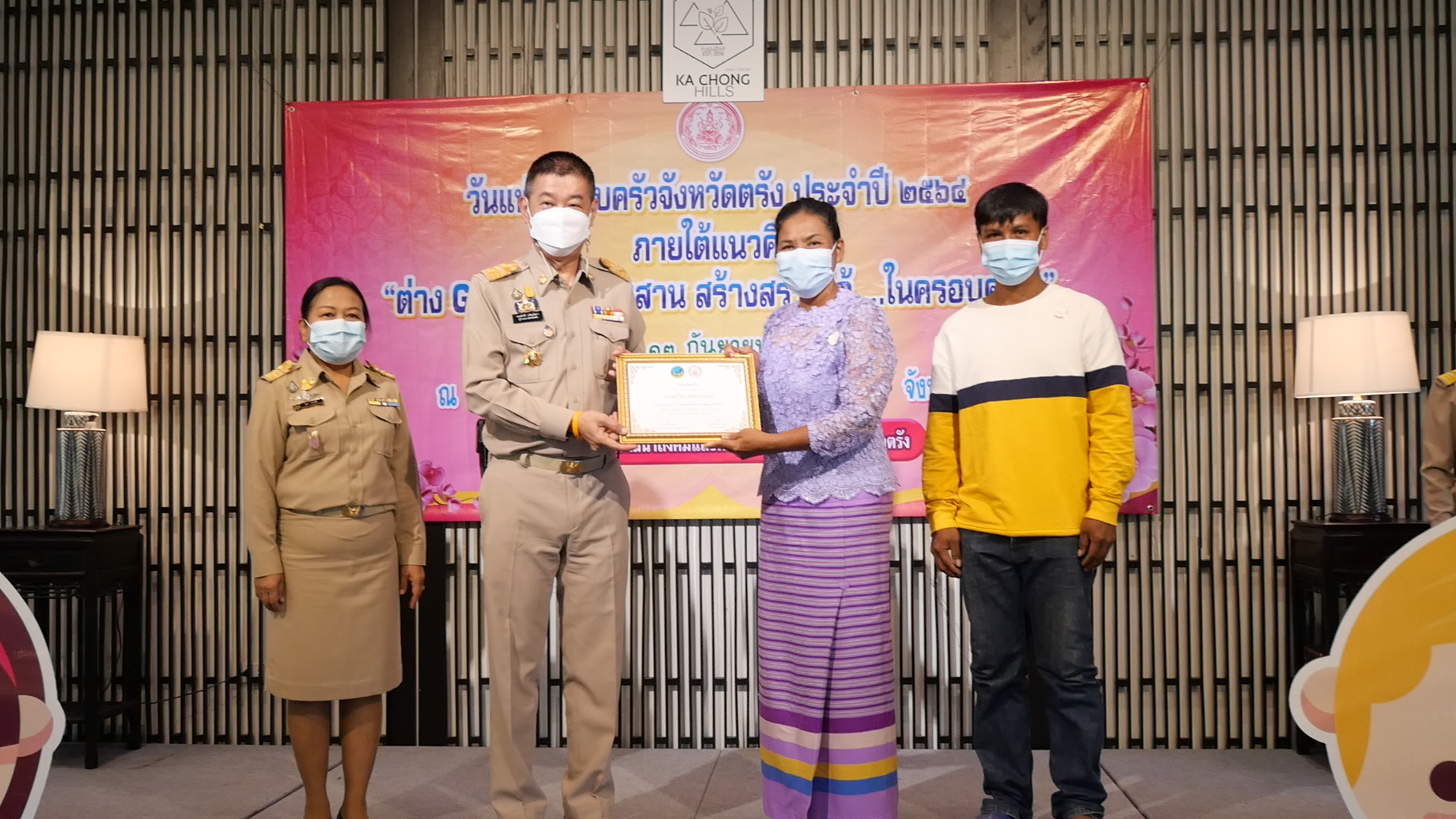 สำนักงานพัฒนาสังคมและความมั่นคงของมนุษย์จังหวัดตรัง เปิดงานวันแห่งครอบครัว ประจำปี 2564 โดยมีการมอบเกียรติบัตรให้กับครอบครัวร่มเย็น และบุคคลดีเด่นด้านการพัฒนาครอบครัว ประจำปี 2564 ที่ผ่านการคัดเลือก ร่วมถึงมอบเงินช่วยเหลือครอบครัวนักเรียน
