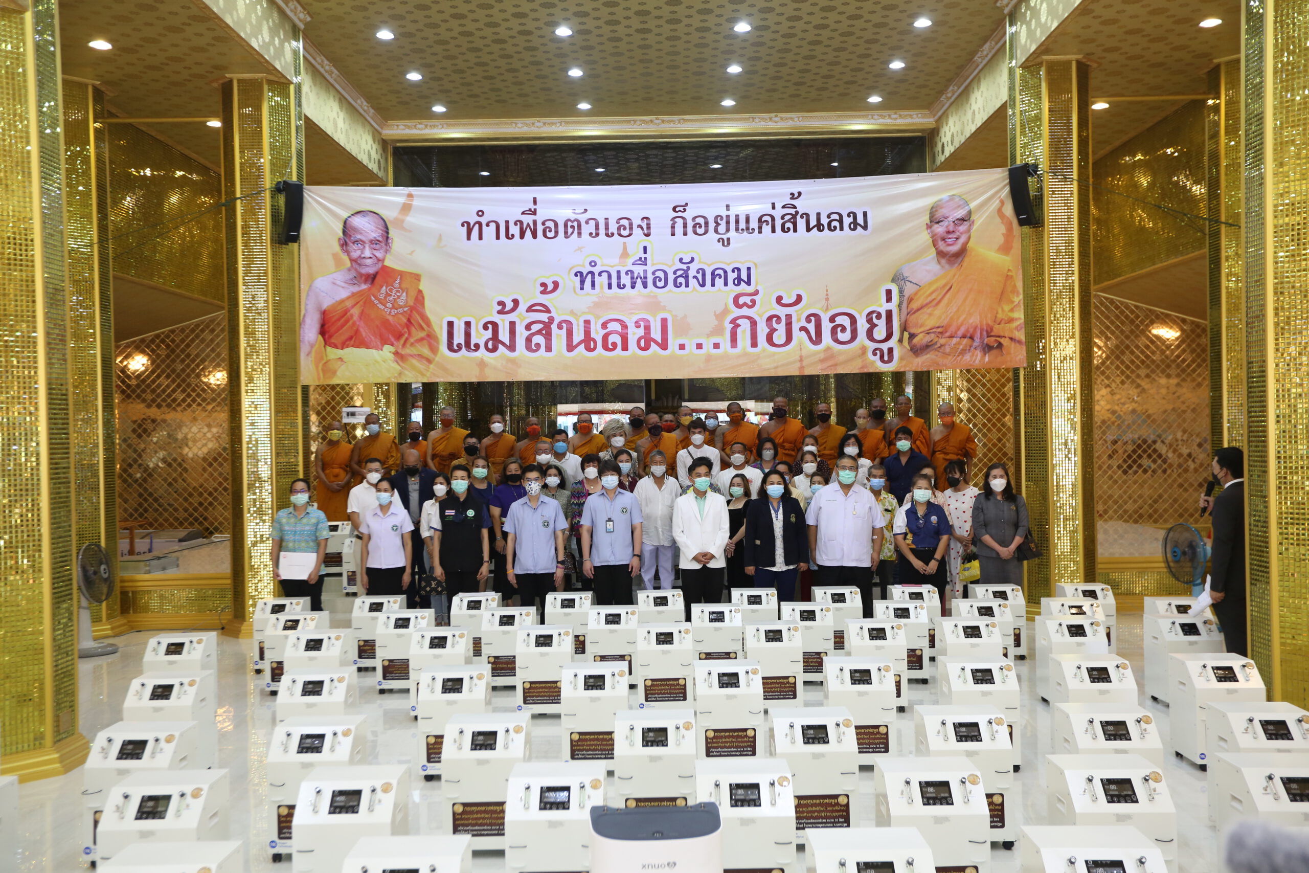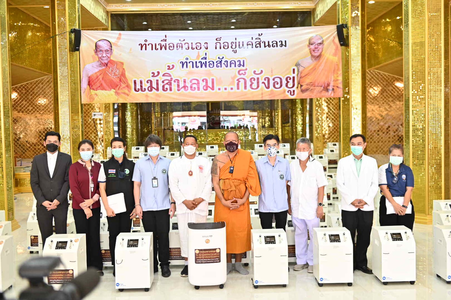 เรื่องที่สอง อาตมามีความยินดีที่จะเจริญพรแจ้งว่า ในวันที่ 9 กันยายน 2564 เวลา 13.00 น. เป็นวันดี วันที่เก้าเดือนเก้า อาตมาจะมอบเครื่องผลิตออกซิเจนจำนวน 10 ลิตร จำนวน 100 เครื่อง แก่โรงพยาบาลต่าง ๆ เครื่องผลิตออกซิเจนแต่ละเครื่องนั้นสามารถใช้ได้ 2 คนต่อหนึ่งเครื่อง เท่ากับว่าสามารถต่อชีวิตญาติโยมได้ถึง 200 คนทีเดียว ทั้งนี้ งบประมาณที่ใช้สำหรับการจัดซื้อเครื่องผลิตออกซิเจนนั้น ได้มาจากจิตศรัทธาของญาติโยมทุกท่าน ทั้งออกนามมาก็ดี ไม่ออกนามมาก็ดี ผ่านทางกองทุนสวด เผา ฟรี และกองทุนหลวงพ่อพูล จนได้เป็นเครื่องผลิตออกซิเจนร้อยเครื่อง เพื่อผู้ป่วยโรคโควิด-19 ที่ยังคงรักษาตัวอยู่