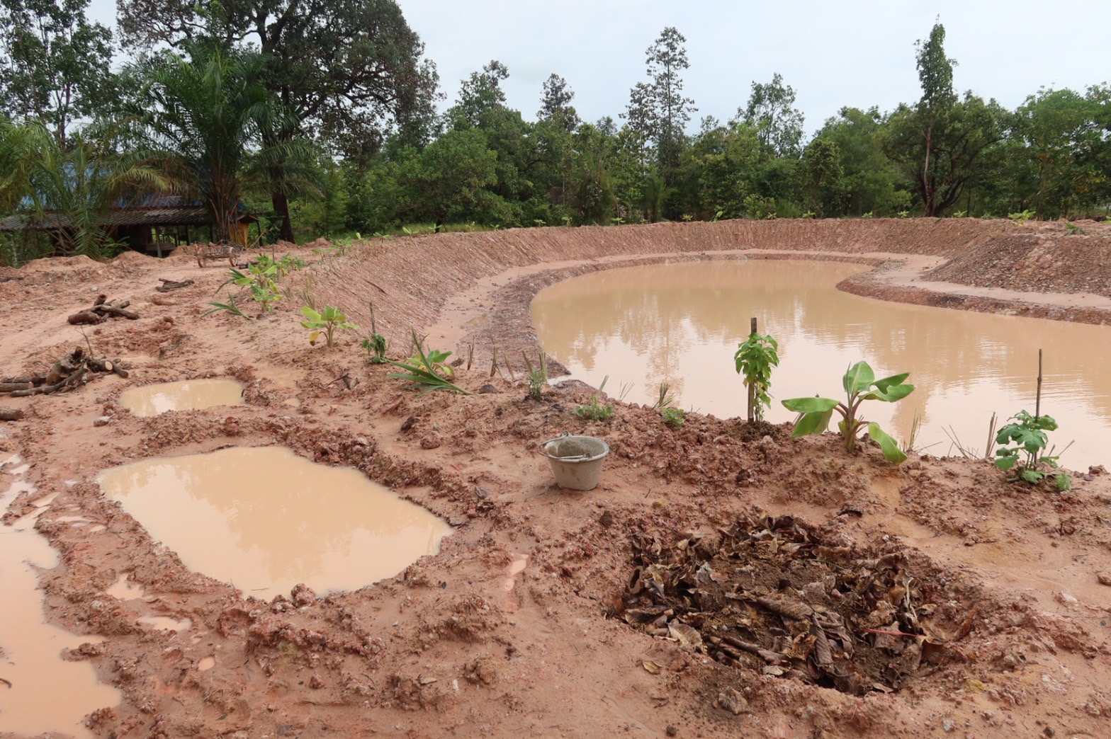 “ประการสุดท้ายต้อง ททท. คือทำทันทีที่คิดได้ ตากดิน ผสมปุ๋ยหมัก ขุดคลองไส้ไก่เล็ก กับหลุมขนมครกบนคันดิน เวลาให้น้ำจะได้กระจายไปทั่ว และเวลาฝนตกจะไม่ชะล้างขอบสระให้พังทลาย มีหญ้าแฝกคนละอันกับหญ้าแพรกนะ เป็นพระเอกกั้นดินระยะยาว ส่วนระบบการให้น้ำ ปลูกเยอะขนาดนี้คงต้องจ้างคนมาดูแลไม่งั้นตายหมด กำลังออกแบบระบบให้น้ำควบคุมด้วยอินเทอร์เน็ต คนรดน้ำต้นไม้ดูในจอทีวีหรือจอมือถือกดคำสั่งรดน้ำไปทีละแปลง หรือจะเป็นเวลาด้วย Timer ก็ได้ รวมไปถึงระบบเซ็นเซอร์วัดความชื้นของดิน ถ้าแห้งเกินก็รดน้ำ ถ้าเปียกแล้วปิด รอดูว่าเด็ก ๆ ที่นี่จะใช้ Internet of things ยังไง รอดูกันว่าแปลงเดียวจะเลี้ยงทั้งตำบลได้อย่างไร อย่ายึดติดตำรา บุคคล กาล สถานที่ เป็นหลักเดียวกันกับหลักธรรมะที่ว่า อกาลิโก บางที่ก็มุ่งไปทางไม่ยึดติดตำราฝรั่งก็อาจใช่ แต่บางทีก็ลืมไปว่ายึดติดตัวเองก็มี จนบางครั้งคนจะทำด้วยก็ไปได้ยากเพราะกลัวผิดหลักการของคนพาทำ การแม่นในหลักการและวิธีปฏิบัติเป็นสิ่งดี แต่ถ้ามีอัตตา มีทิฐิเมื่อไหร่ก็กลายเป็นกิเลสไปเสียซึ่งเห็นได้มากในหมู่นักปฏิบัติ จึงขอฝากสั้น ๆ ไว้ก่อน”