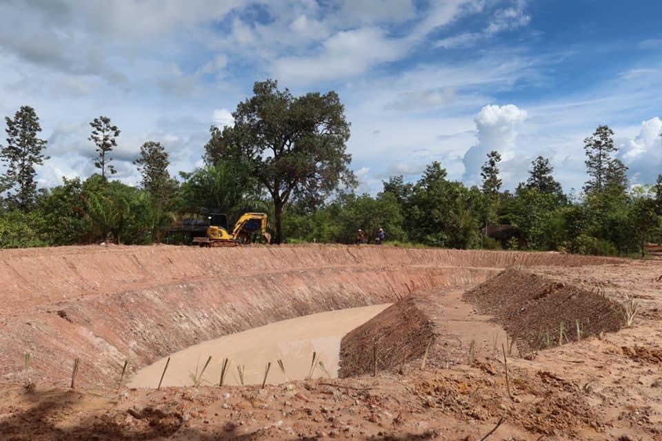 “ในช่วงฤดูฝนที่พระพิรุณโปรยปรายแทบจะทุกวัน การพัฒนาพื้นที่ ก็มิได้หยุดหย่อน ยังมีกิจกรรมในพื้นที่แปลง “โคก หนอง นา” ร่วมกับชาวบ้านผู้มีจิตอาสาและนักเรียนโรงเรียนศรีแสงธรรมอย่างต่อเนื่อง ดังคำกล่าวที่ว่า หนอง 1 โคก 1 ความมั่นคงทางอาหาร ช้า ๆ ได้พร้าเล่มงาม แต่ถ้าชักช้าไม่ได้พร้าเล่มงาม หลังจากที่รถขุดหนองที่ 1 เสร็จทั้งหมดมี 6 หนอง เราก็จะได้ดินจากการขุด ไม่ได้เอาไปไหน แต่ยกเป็นคันดินให้สูง และกว้างประมาณ 8-10 เมตร นั่นคือโคก ซึ่งเป็นพื้นที่สำคัญในการจัดการต้นไม้ จัดการที่ดิน ดูระบบการให้น้ำ ดูทิศทางลมในแต่ละฤดู และดูทิศทางแสงดวงอาทิตย์ และดวงจันทร์ วงโคจรของโลกในแต่ละเดือนมีส่วนต่อการเอียงของแกนโลกกับพระอาทิตย์ เมื่อคิดจะทำป่า 3 อย่าง ประโยชน์ 4 อย่างก็ต้องเลือกปลูปป่า 5 ระดับ หนองที่ 1 โคกที่ 1 จะมีต้นมะม่วง 90 ต้น แต่พอมากะหลุมด้วยระยะห่าง 6 เมตรแล้วได้เพียง 60 ต้น เป็นไม้หลัก การปลูกจนกว่าจะได้ผลผลิตประมาณ 4-5 ปี มีเขียวเสวย 30 ต้น กับ โชคอนันต์ 30 ต้น ส่วนแก้วขมิ้น 30 ต้น คงต้องหาที่ปลูกใหม่ มีมะพร้าวน้ำหอมสลับระหว่างต้น ระยะห่าง 4-6 เมตร รอบขอบหนอง 30 ต้น ส่วนที่ 2 เป็นไม้กลาง อายุการปลูกจนถึงการเก็บเกี่ยวผลผลิตประมาณ 1-3 ปี กล้วยน้ำหว้า พันธุ์ปากช่อง 50 เป็นไม้พี่เลี้ยง อาจจะมีต้น แคแดง แคขาว อ้อย มะละกอ หรือพวกสมุนไพรอื่น ๆ สลับไป ขอดูรายการไม้อีกที ไม้ที่ 3 เป็นไม้เตี้ย มะเขือ พริก โหรพา กะเพรา มะเขือเทศเตรียมมาในพื้นที่ว่าง ไม้ที่ 4 คือประเภทเรี่ยดิน ฟักทอง แตงไทย ผกบุ้ง ผักกาด ผักคะน้าต่าง หรืออื่นๆ ถ้ามี ไม้สุดท้ายคือพวกใต้ดิน ขิง ข่า กระชาย ตะไคร้”