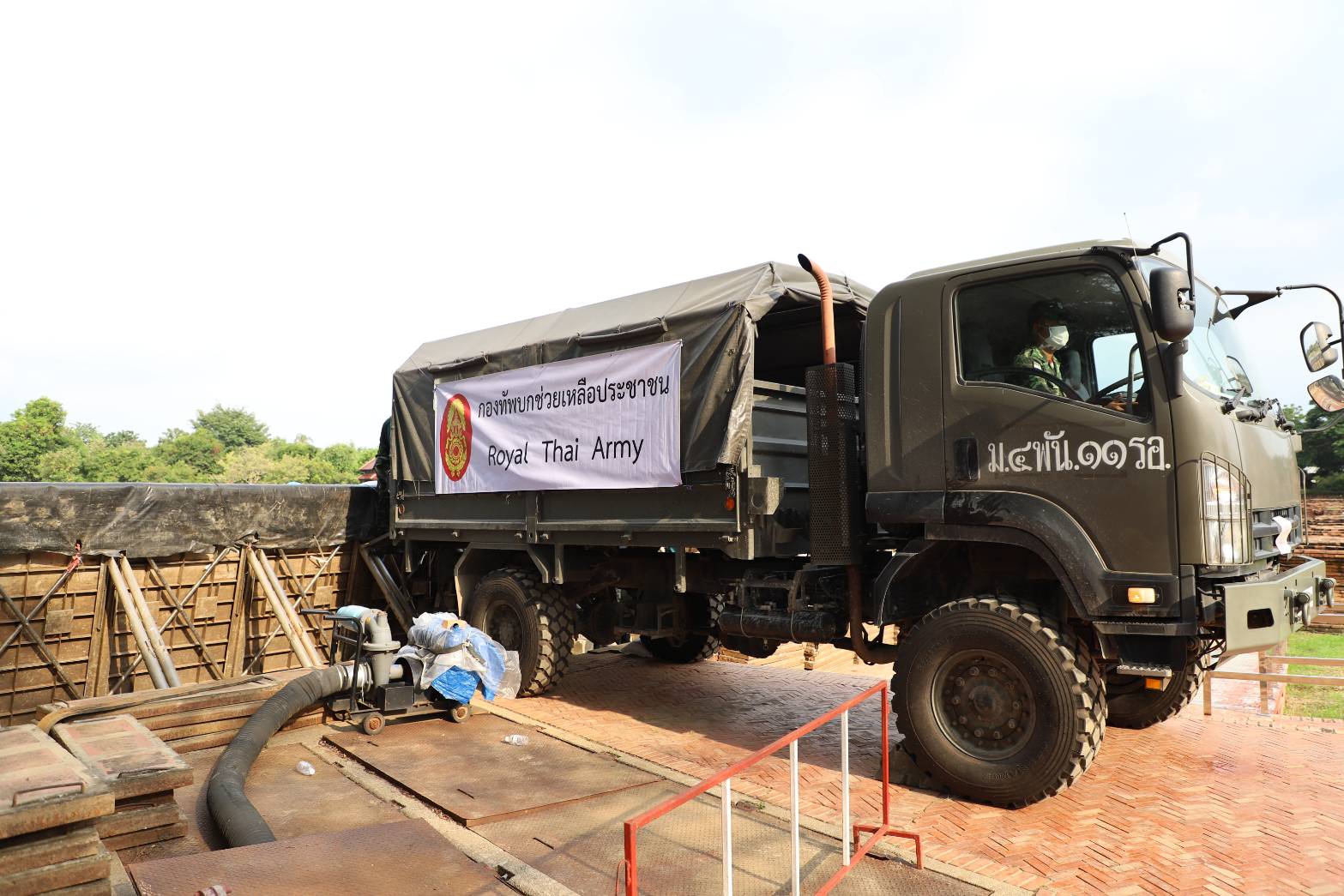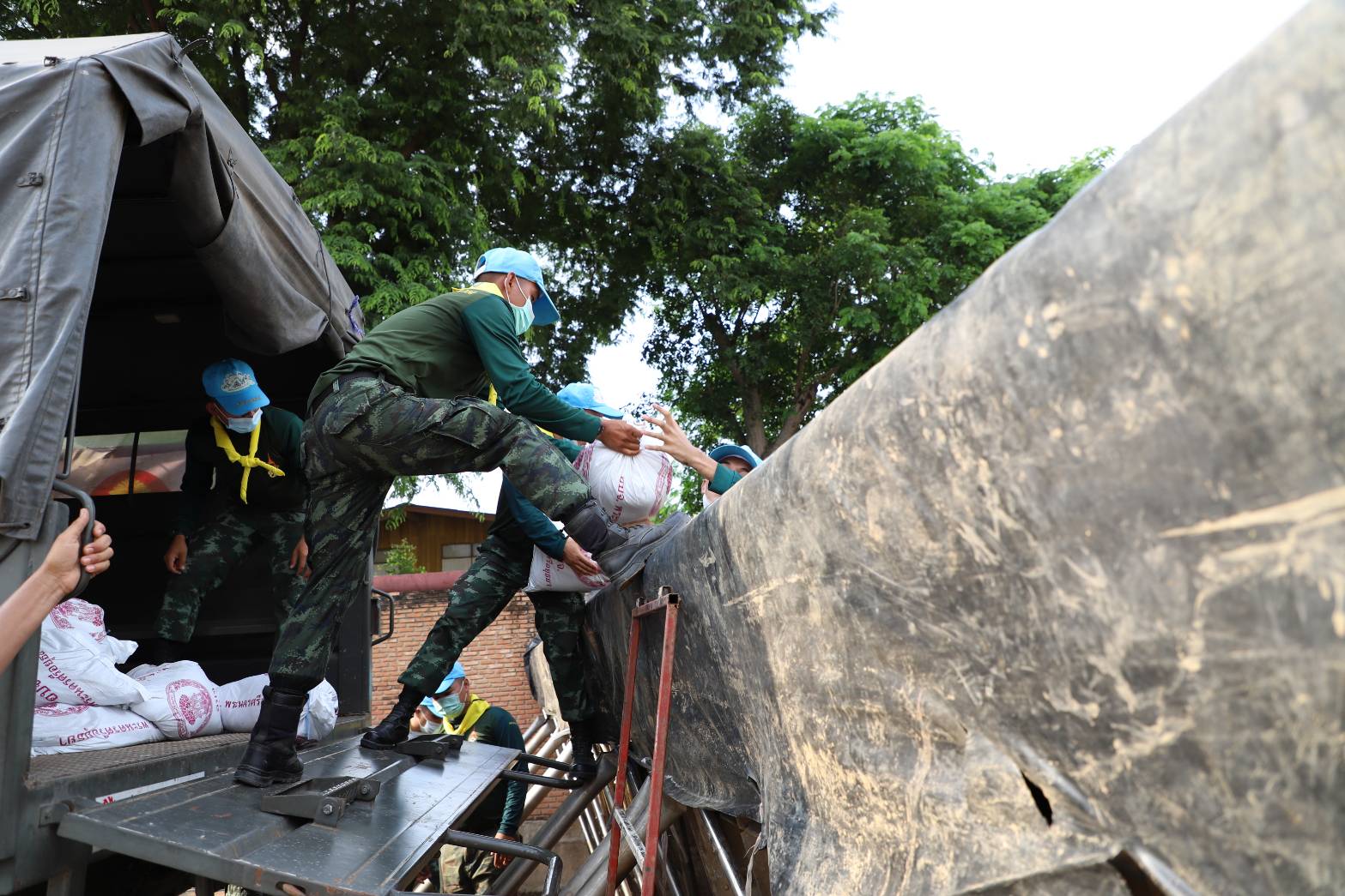 วันที่ 17 กันยายน 2564 เวลา 16.00 น. บริเวณริมแม่น้ำเจ้าพระยา วัดไชยวัฒนาราม ตำบลบ้านป้อม อำเภอพระนครศรีอยุธยา จังหวัดพระนครศรีอยุธยา ภายใต้การอำนวยการของนายภานุ แย้มศรี ผู้บัญชาการป้องกันและบรรเทาสารธารณภัยจังหวัดพระนครศรีอยุธยา พันเอก(พิเศษ)เพิ่มศักดิ์ ขุนโขลน รอง ผอ.รมน.อยุธยา มอบหมายให้ นาวาอากาศตรี ทรงพล เทศประทีป หัวหน้าศูนย์ประสานการปฎิบัติ ที่1 กอ.รมน.จว. พร้อมด้วยกำลังพลทหารจาก มทบ.18 รักษาพระองค์ จำนวน 25 นาย ร่วมกันกรอกกระสอบทรายวางแนวบังเกอร์ เพื่อเตรียมความพร้อมป้องกันน้ำเข้าวัดไชยวัฒนาราม ซึ่งเป็นโบราณสถานสำคัญของจังหวัดพระนครศรีอยุธยา เร่งดำเนินการให้แล้วเสร็จภายใน 2 วัน (16-17 กันยายน) รวมระยะทาง 150 เมตร สำหรับสถานการณ์ระดับน้ำวันนี้ลดลง 10 เซนติเมตร ถือว่ามีแนวโน้มที่ดี แต่เพื่อไม่ประมาทจึงเตรียมความพร้อมป้องกันโบราณสถานสำคัญอย่างเต็มที่