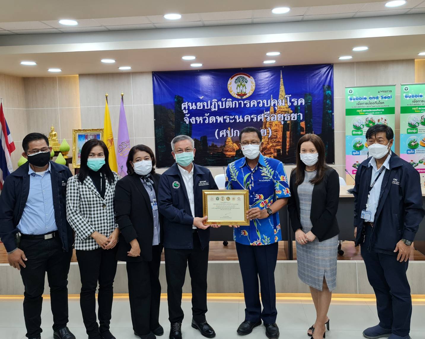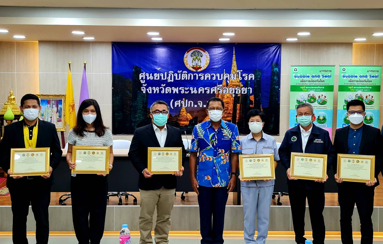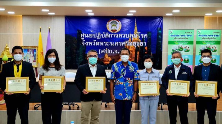 วันที่ 17 กันยายน 2564 เวลา 09.30 น. ที่ ห้องประชุมอโยธยา ศาลากลางจังหวัดพระนครศรีอยุธยา นายภานุ แย้มศรี ผู้ว่าราชการจังหวัดพระนครศรีอยุธยา เป็นประธานประกาศ Kick Off โครงการ “อยุธยาโมเดล” และมอบเกียรติบัตรให้แก่สถานประกอบกิจการที่มีส่วนร่วมการพัฒนาฯ 10 โรงงานต้นแบบมาตรฐานในการจัดการป้องกันควบคุมโรคโควิด-19 พร้อมทั้งจัดการเสวนา “กว่าจะมาเป็น อยุธยาโมเดล” ในวันนี้ โดยมี นายวิรัช ประวันเตา รักษาการผู้ทรงคุณวุฒิ กรมการควบคุมโรค นายแพทย์พีระ อารีรัตน์ นายแพทย์สาธารณสุขจังหวัดพระนครศรีอยุธยา หัวหน้าส่วนราชการ ประธานสภาอุตสาหกรรม ผู้บริหารสถานประกอบการ ทั้ง 10 แห่งที่ร่วมโครงการ “อยุธยาโมเดล” และสถานประกอบการทุกแห่งที่ เข้าร่วมรับฟังการเสวนาผ่านระบบออนไลน์