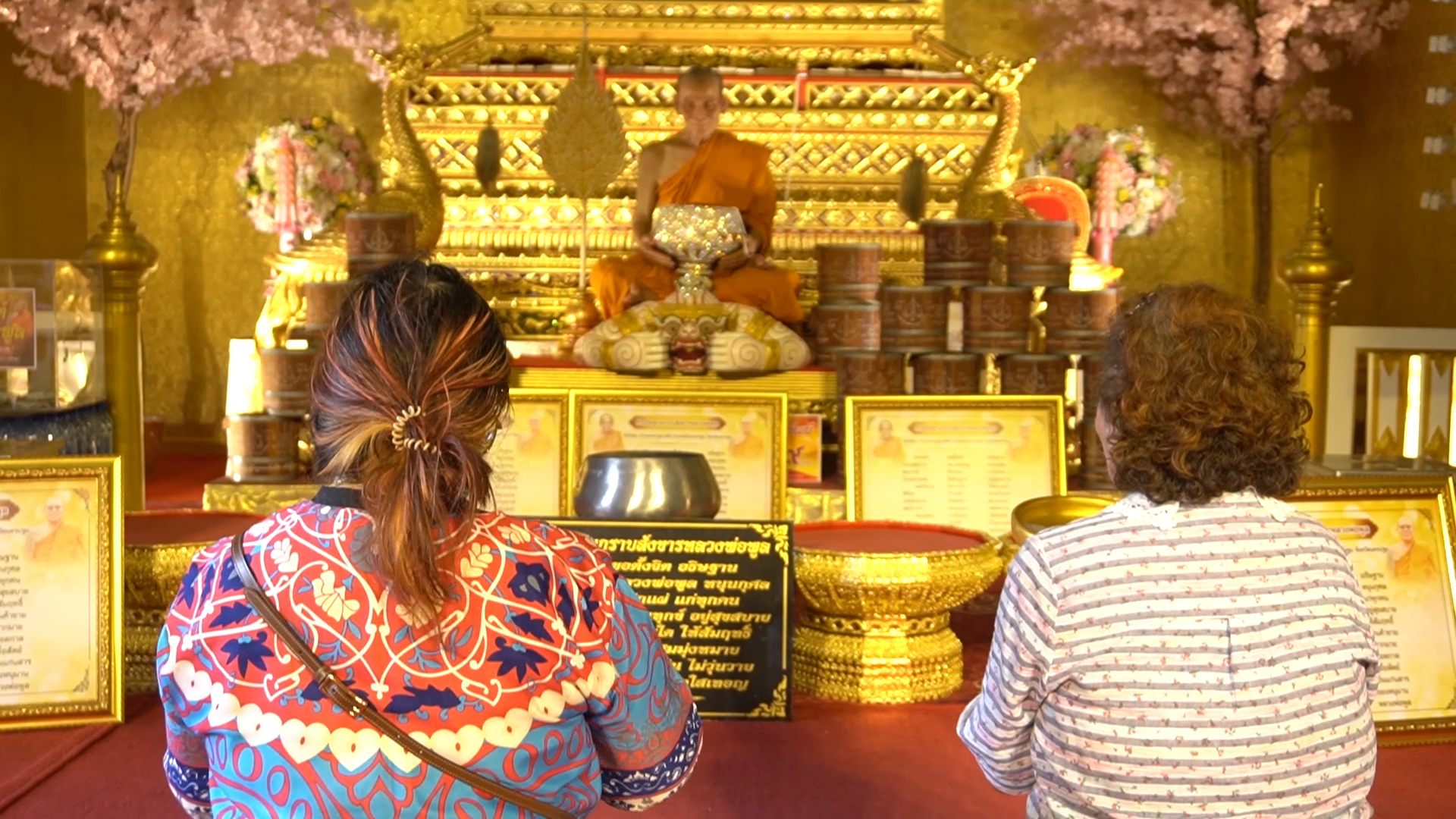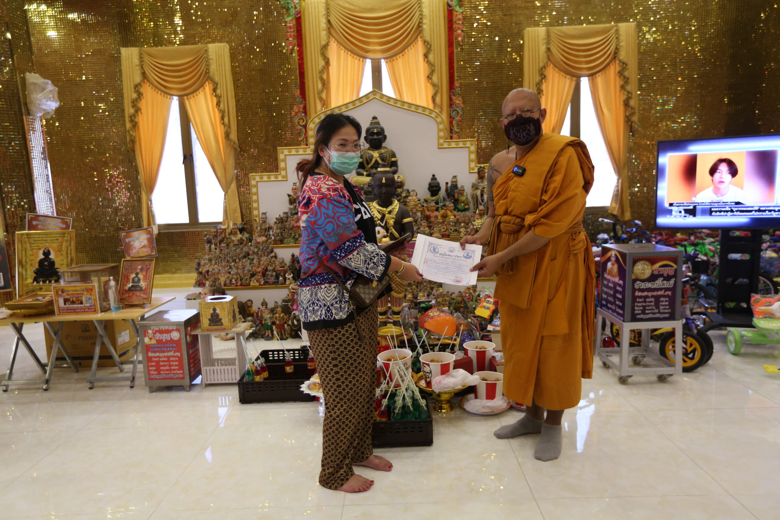 ซึ่งหลังพิธีการแก้บนเสร็จสิ้น ทั้งคู่ได้ขอพบพระครูปลัดสิทธิวัฒน์ หลวงพี่น้ำฝน เจ้าอาวาสวัดไผ่ล้อม เพื่อนำเงินสดจำนวน 100,000 บาท ถวายให้ทางวัดไผ่ล้อมได้นำไปสานต่องานบุญตามเจตนา ซึ่งหลวงพี่น้ำฝนได้เข้ามารับไว้และนำชมสถานที่พร้อมกับบรรยายให้ทราบถึงภารกิจด้านต่างๆที่วัดไผ่ล้อมได้จัดทำขึ้นหลายโครงการ ซึ่งวัดไผ่ล้อมได้มีการบูรณะและก่อสร้างวิหารทั้ง 2 หลังจนแล้วเสร็จ และเตรียมเปิดเป็นสถานที่ท่องเที่ยวทางพระพุทธศาสนาในอนาคต รวมถึงการดำเนินการด้านสาธารณสงเคราะห์ ที่ช่วยสังคมในหลายโครงการในขณะนี้