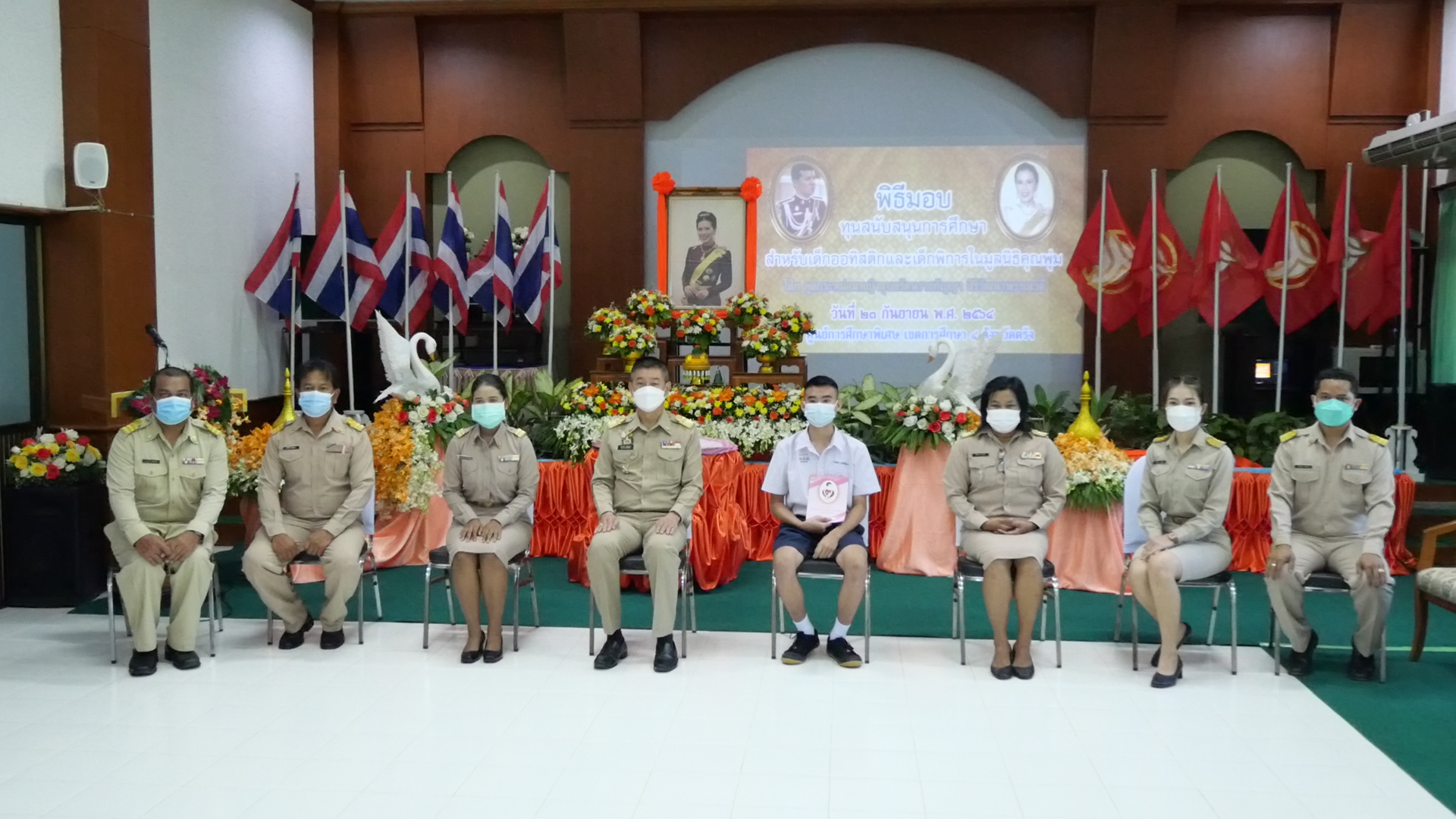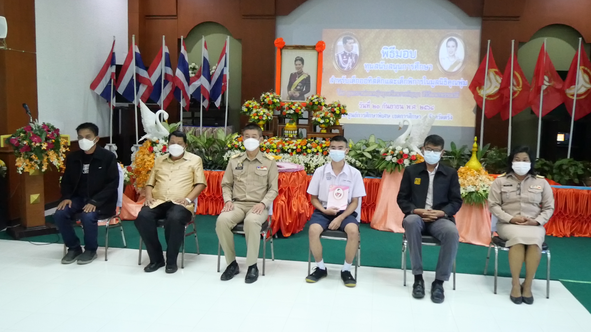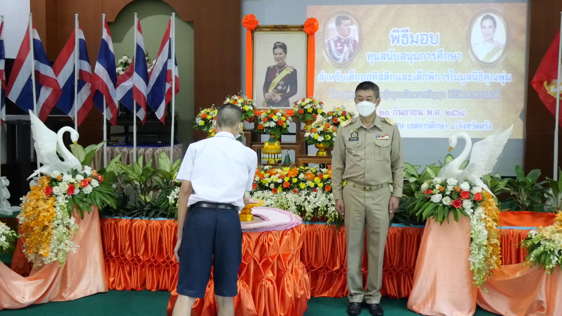 ที่ห้องประชุมศรีตรัง ศูนย์การศึกษาพิเศษ เขตการศึกษา 4 จังหวัดตรังนายขจรศักดิ์ เจริญโสภา ผู้ว่าราชการจังหวัดตรัง เป็นประธานในพิธีมอบทุนการศึกษาสำหรับเด็กออทิสติกและเด็กพิการในมูลนิธิคุณพุ่ม โดยมอบทุนการศึกษาให้กับตัวแทนนักเรียนเข้ารับทุนจำนวน 1 คน จากจำนวนทั้งสิ้น 113 คน เพื่อลดความแออัดตามมาตรการป้องกันและลดการแพร่ระบาดของโรคติดเชื้อไวรัสโคโรนา 2019