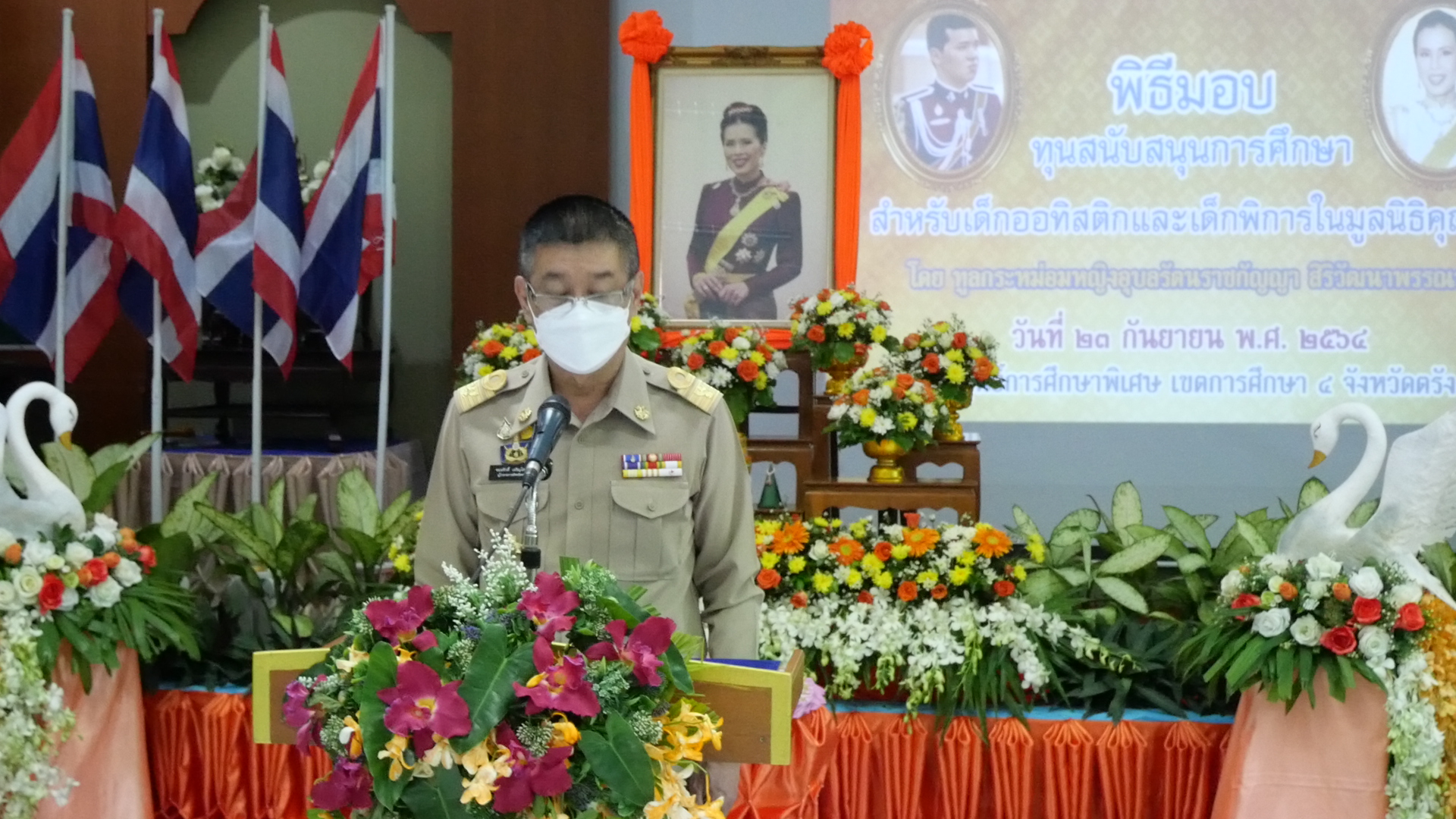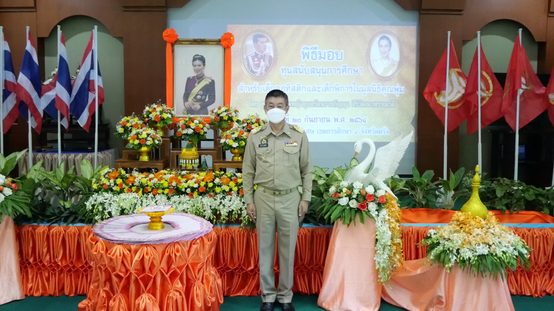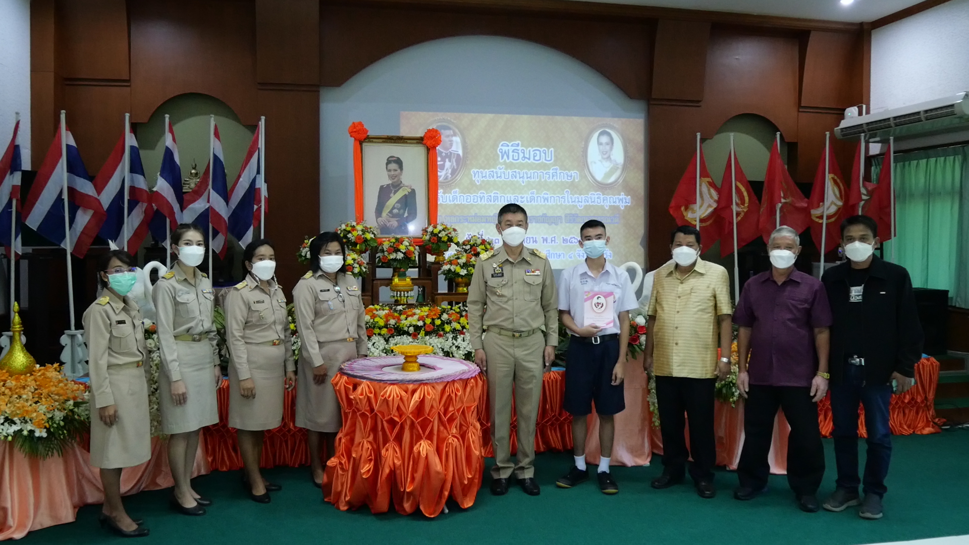 ที่ห้องประชุมศรีตรัง ศูนย์การศึกษาพิเศษ เขตการศึกษา 4 จังหวัดตรังนายขจรศักดิ์ เจริญโสภา ผู้ว่าราชการจังหวัดตรัง เป็นประธานในพิธีมอบทุนการศึกษาสำหรับเด็กออทิสติกและเด็กพิการในมูลนิธิคุณพุ่ม โดยมอบทุนการศึกษาให้กับตัวแทนนักเรียนเข้ารับทุนจำนวน 1 คน จากจำนวนทั้งสิ้น 113 คน เพื่อลดความแออัดตามมาตรการป้องกันและลดการแพร่ระบาดของโรคติดเชื้อไวรัสโคโรนา 2019