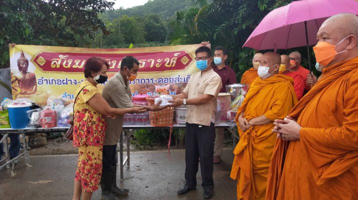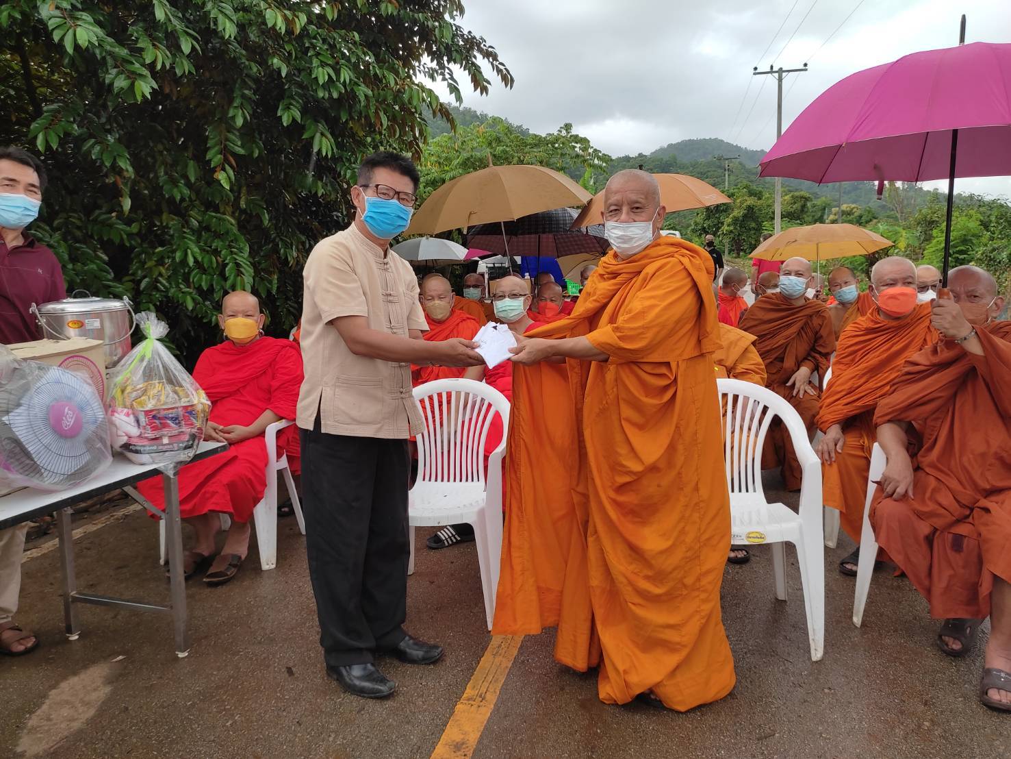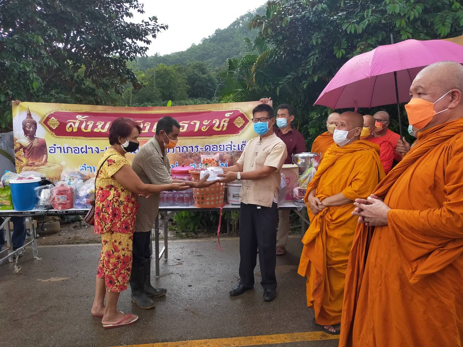 40,036บาท(สี่หมื่นสามสิบหกบาทถ้วน)มามอบให้ เพื่อเป็นการสงเคราะห์เบื้องต้นไปก่อนโดยทางพระครูสถิตธรรมาภิรักษ์ เจ้าคณะอำเภอไชยปราการ พร้อมตัวแทนคณะพระสงฆ์ทั้งหมดได้มอบให้กับนายจีรชาติ ซื่อตระกูล นายอำเภอไชยปราการ เพื่อมอบให้กับเจ้าของบ้านที่ได้รับความเสียหาย ซึ่งเป็นการช่วยเหลือเบื้องต้นไปก่อน ส่วนของราชการนั้นทั้งทางฝ่ายปกครองและเทศบาลตลอดจนทางบรรเทาสาธารณะภัย ก็จะได้เข้ามาช่วยเหลือตามกฏระเบียบของส่วนราชการต่อไป เนื่องจากในวันที่22กันยายน2564 ได้มีฝนตกหนักบนดอยแล้วน้ำป่าได้ไหลทะลักมาจากดอยถ้ำผาผึ้งแล้วไหลตามลำห้วยปกติแต่ว่ามีเศษไม้มาขว้างกันลำห้วยที่หน้าบ้านผู้ประสพภัย น้ำจึงเปลี่ยนทิศไหลแรงตรงมาที่บ้านจึงเข้าพัดพาสิ่งของทั้งหมดไปกับสายน้ำแบบสิ้นเนื้อประดาตัวเลย แต่เจ้าของบ้านทั้งสามีและภารยาปลอดภัยเหลือเพียงเสื้อผ้าที่สวมใส่เท่านั้น ทางคณะสงฆ์ฝางแม่อายไชยปราการนั้นได้มีการร่วมมือร่วมใจกันในการช่วยเหลือผู้ประสพภัยทางธรรมชาติมาโดยตลอดได้ช่วยเหลือโดยทางเจ้าอาวาสทุกวัดจะให้การช่วยเหลือตามเจตนาและครั้งนี้ก็ได้เข้าช่วยเหลือเบื้องต้นก่อน ขออนุโมทนาสาธุในการช่วยเหลือชาวบ้านในครั้งนี้ด้วย ท่านยังบอกว่าในการช่วยเหลือนั้นไม่จำกัดเชื้อชาติศาสนา จะช่วยเหลือเพื่อนมนุษย์ด้วยกันพระสงฆ์สามอำเภอได้กล่าวว่าพระสงฆ์ควรที่จะให้และช่วยเหลือคนที่ทุกข์ลำบากและผู้ด้อยโอกาสเพื่อจะได้อยุ่ร่วมกันอย่างมีความสุขและอบอุ่นเท่าเทียมเสมอกัน