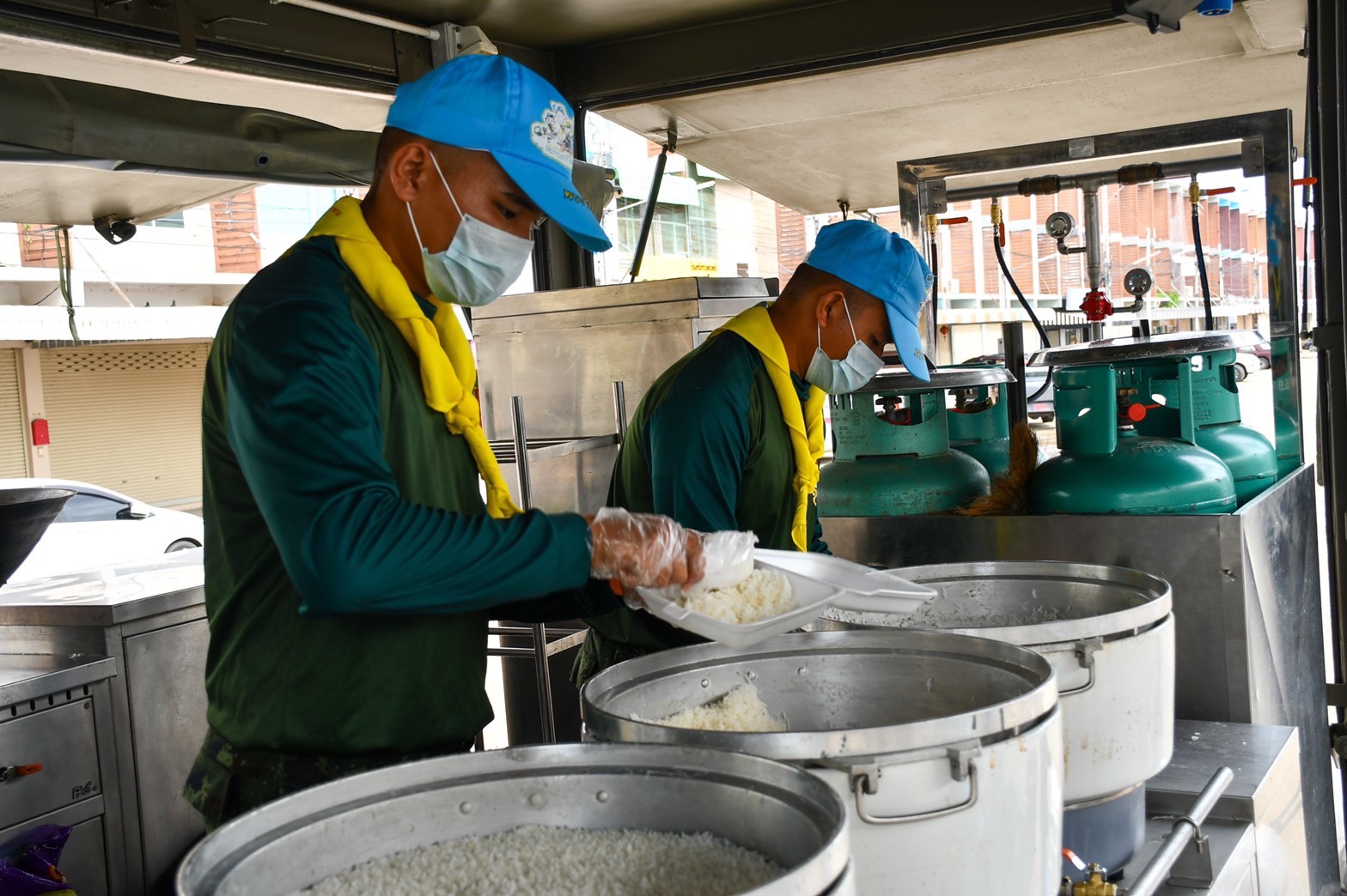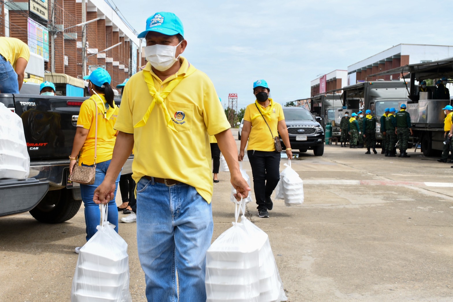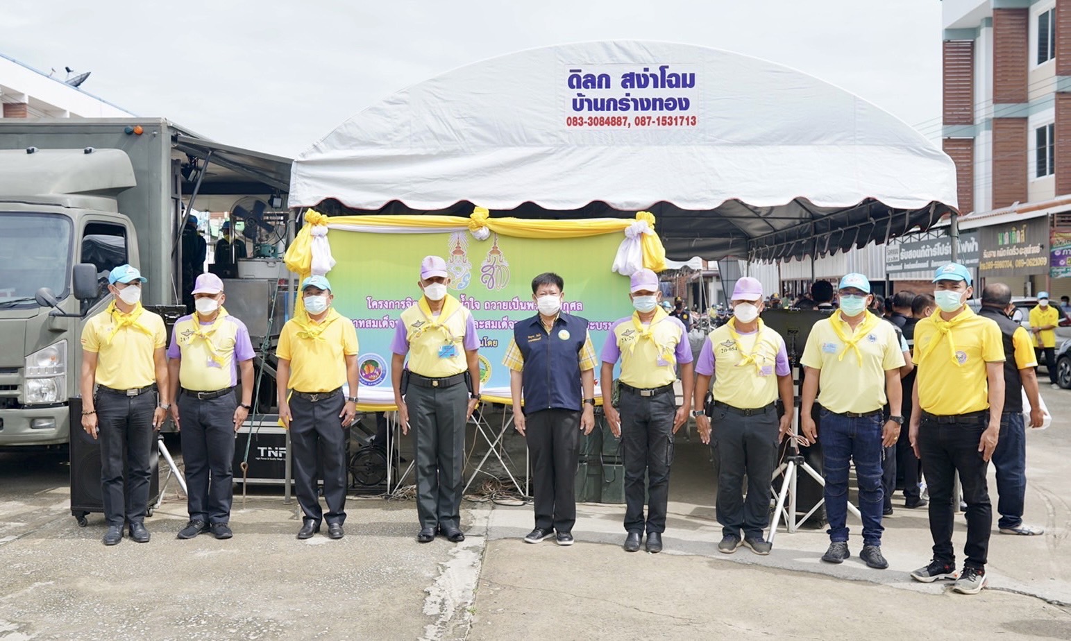 เพื่อบรรเทาความเดือดร้อนให้กับประชาชนในห้วงสถานการณ์โรคติดเชื้อ โควิด-19 ณ ลานปูนหน้าอาคาร 168 ซิตี้คอมเพล็กซ์ ตำบลท่าม่วง อำเภอท่าม่วง จังหวัดกาญจนบุรี