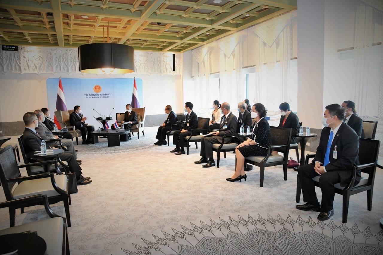ท่านประธานรัฐสภาไทยได้กล่าวตอบและได้แสดงความชื่นชมเป็นอย่างยิ่งต่อท่านนายกรัฐมนตรีสมเด็จฮุนเซนว่าสามารถยกระดับการพัฒนาเศรษฐกิจของกัมพูชาได้อย่างรวดเร็วจนน่าทึ่งในช่วงสองทศวรรษที่ผ่านมา