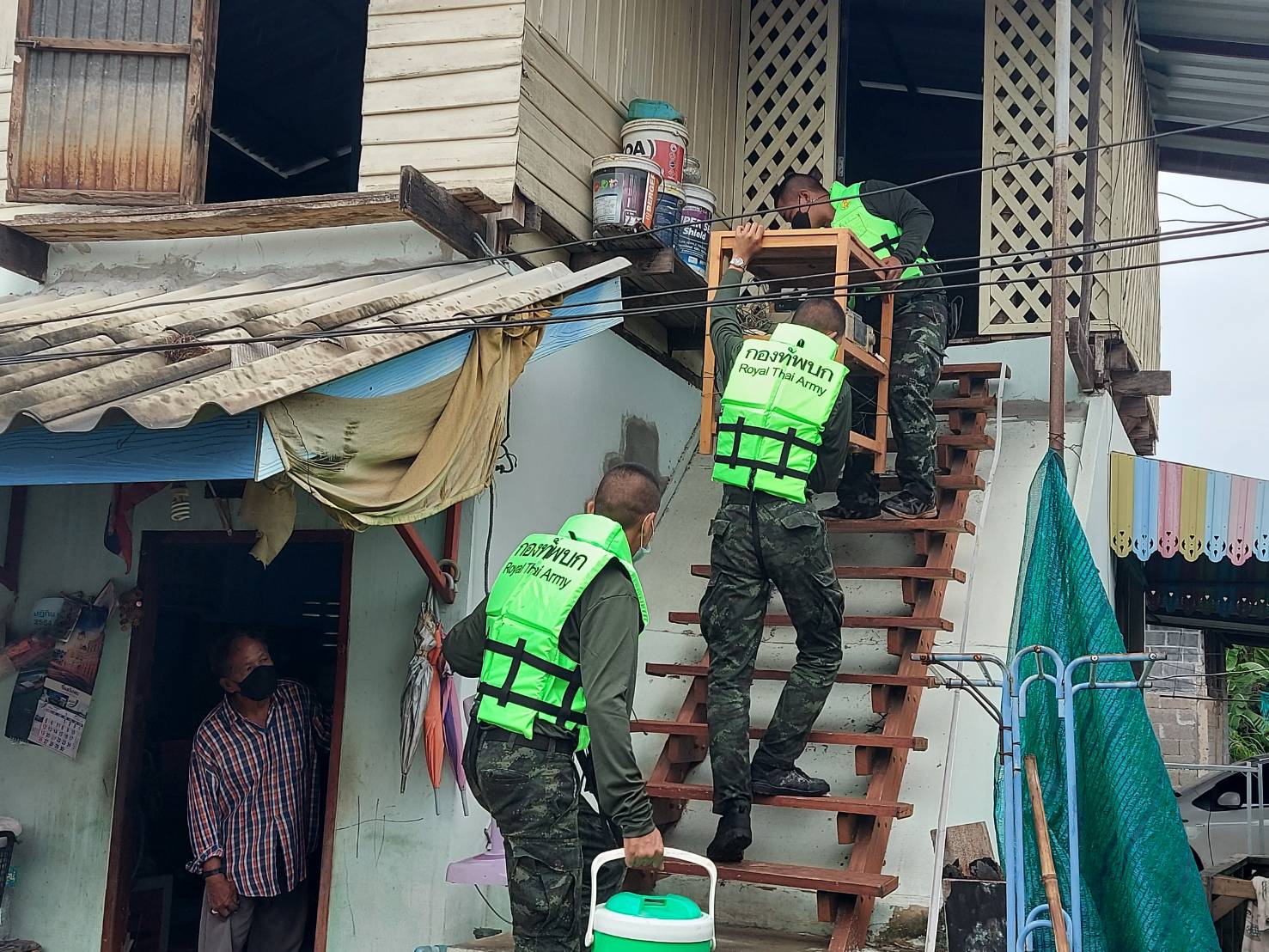 สิงห์บุรี ทหารช่วยเหลือประชาชนขนย้ายสิ่งของ และสร้างแนวคันกั้นน้ำป้องกันอุทกภัย