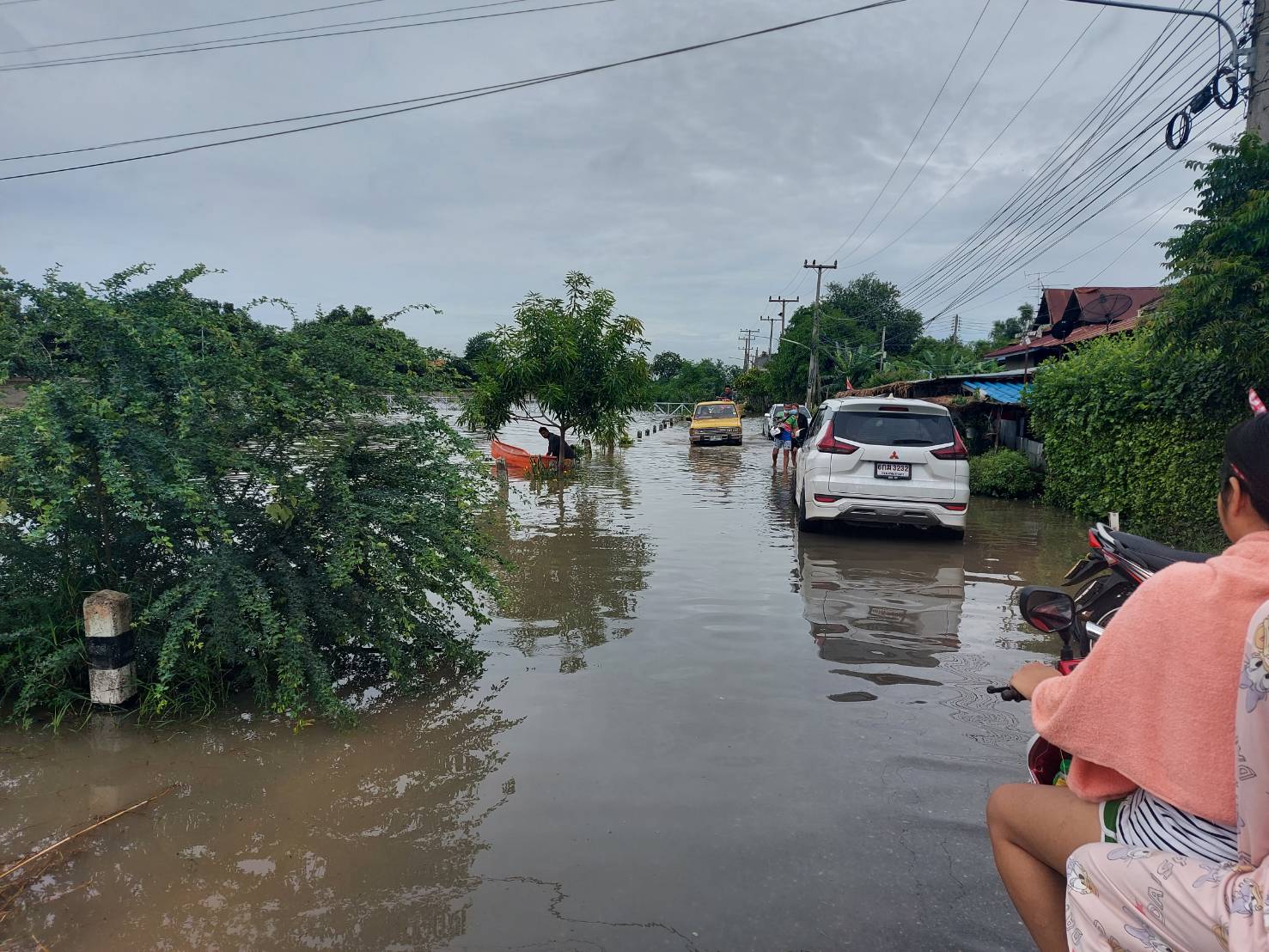 ในขณะเดียวกันมีประชาชน ต.ชีน้ำร้าย อ.อินทร์บุรี ที่ได้รับผลกระทบ จากบ้านอยู่ที่ลุ่มต่ำ ได้หนีน้ำขนย้ายสิ่งของขึ้นมาอยู่บนถนนคันคลอง และสร้างเพิงพักอาศัยชั่วคราว