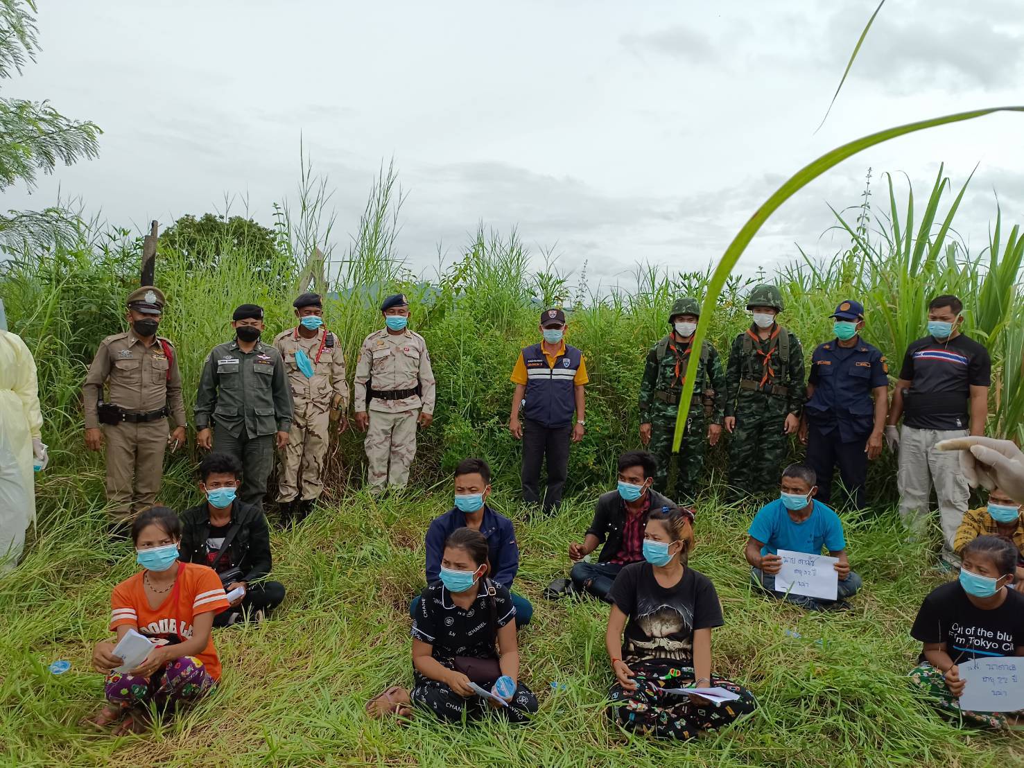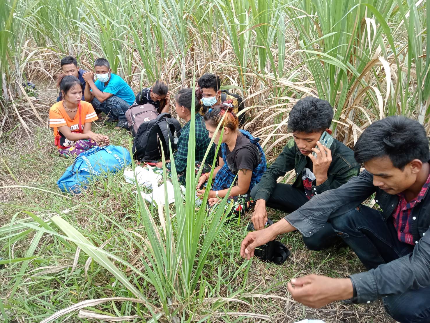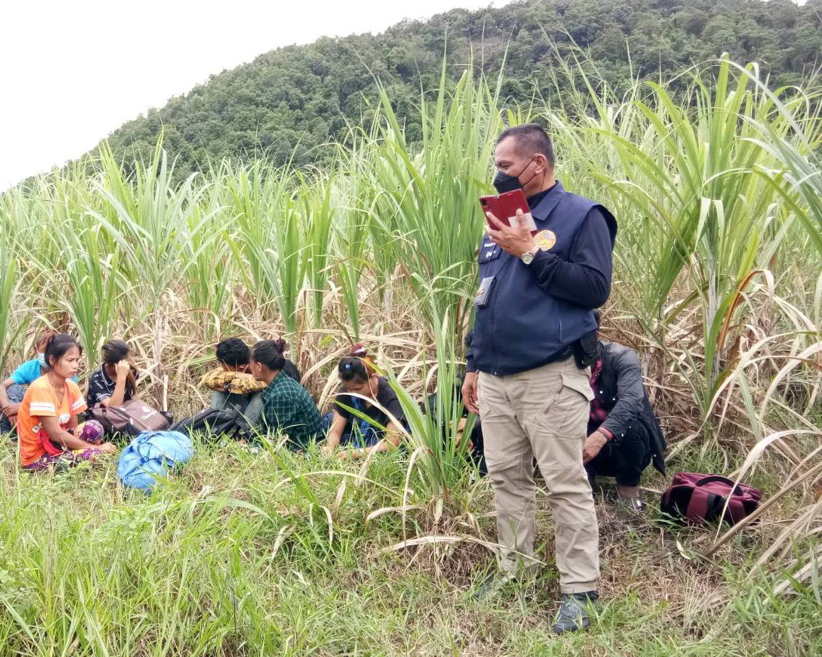 ร่วมกันเข้าตรวจสอบภายในไร่อ้อยดังกล่าว เมื่อบุคคลต่างด้าวพบเห็นเจ้าหน้าที่ต่างพากันวิ่งหลบหนีเจ้าหน้าจึงได้ทำการวิ่งไล่จับจนสามารถทำการควบคุมตัวได้ 9 คนเป็นชาย 5 หญิง 4 และได้ทำการตรวจวัดอุณภูมิ บุคคลต่างด้าวทั้ง 9 คนไม่พบความผิดปกติ จากการสอบถาม น.ส.มะขิ่น อายุ 24 ปีสัญชาติเมียนมา ว่าพวกตนได้พากันเดินทางมาจากเมืองเมาะละแหม่ง และรํฐยะไข่ มาทั้งหมด 22 คนโดยจ่ายค่าหัวให้แก่นายหน้าที่ไปแล้วโดยมีค่าหัวตามระยะทางใกล้ไกล อย่างที่จะไปวังน้อย จังหวัดพระนครศรีอยุธยาคนละ 16,000 บาทและส่วนที่ไปมหาชัย รังสิต และบางใหญ่ จะเสียค่าหัวคนละ 18,000 บาท ทั้งหมดได้ทำการจ่ายค่าหัวให้กับนายหน้าฝั่งเมียนมาเป็นที่เรียบร้อยแล้ว แต่เมื่อข้ามมาประเทศไทยแล้วมาถูกจับกุมได้เสียก่อน