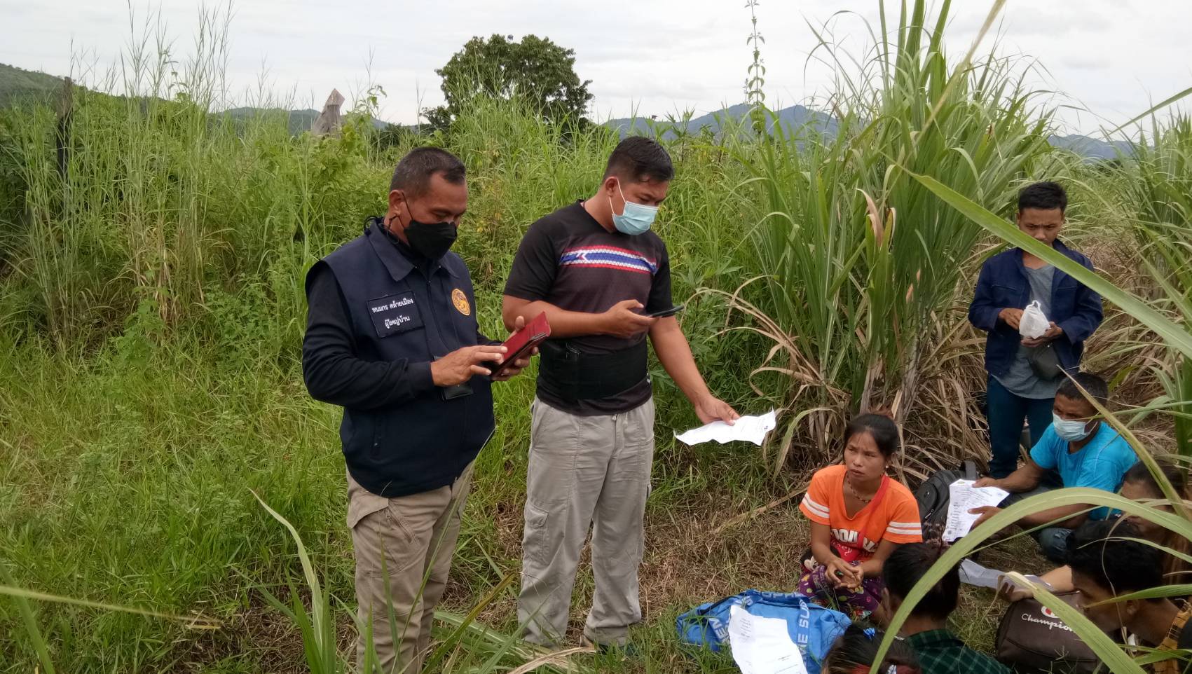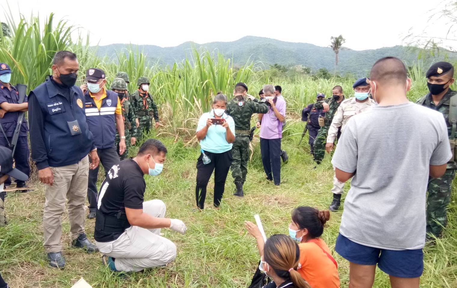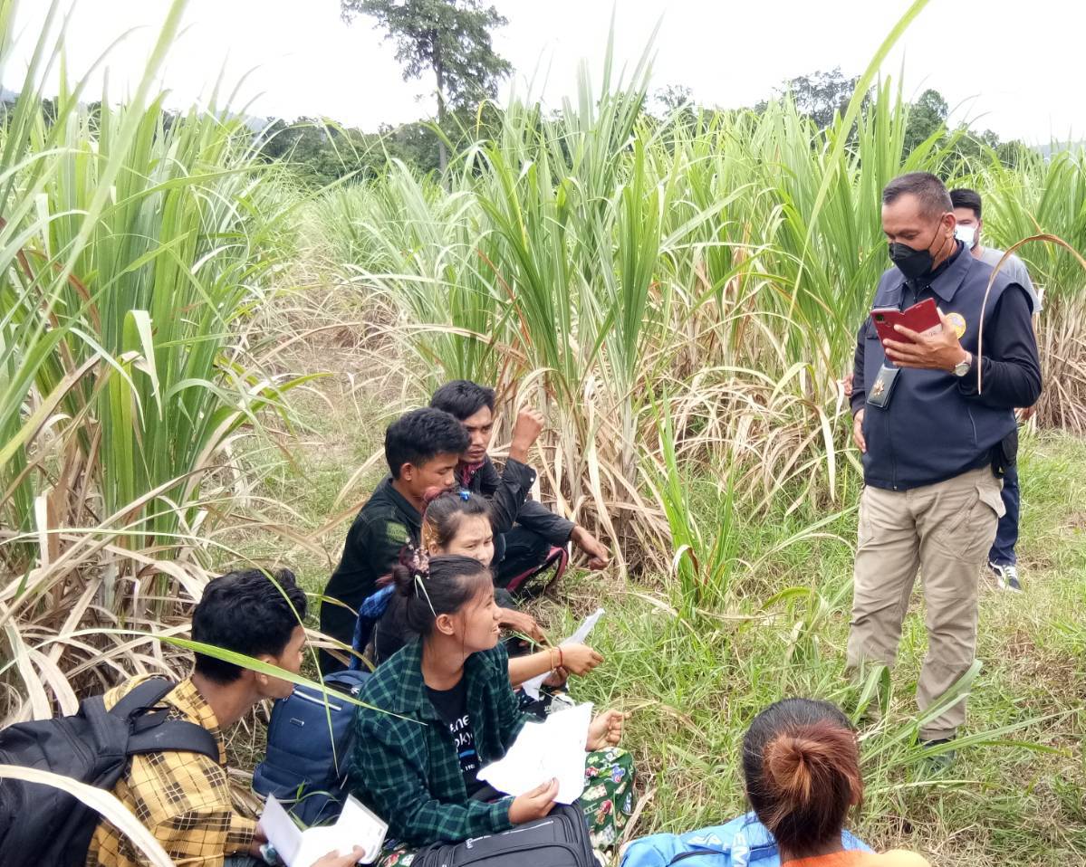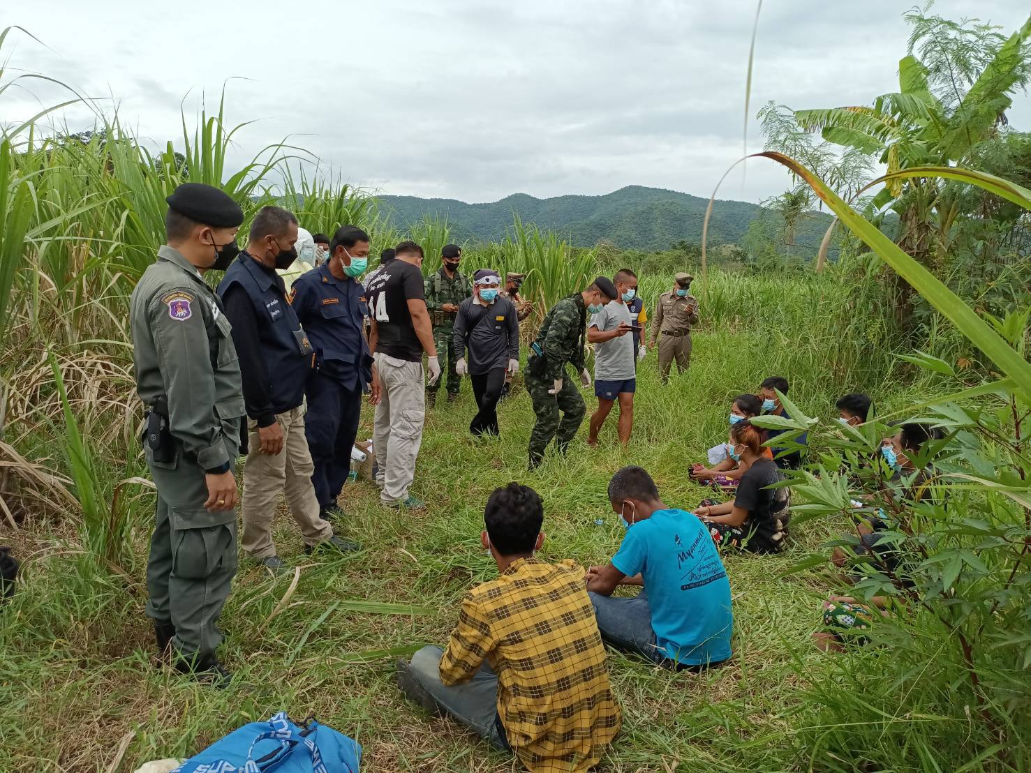 ร่วมกันเข้าตรวจสอบภายในไร่อ้อยดังกล่าว เมื่อบุคคลต่างด้าวพบเห็นเจ้าหน้าที่ต่างพากันวิ่งหลบหนีเจ้าหน้าจึงได้ทำการวิ่งไล่จับจนสามารถทำการควบคุมตัวได้ 9 คนเป็นชาย 5 หญิง 4 และได้ทำการตรวจวัดอุณภูมิ บุคคลต่างด้าวทั้ง 9 คนไม่พบความผิดปกติ จากการสอบถาม น.ส.มะขิ่น อายุ 24 ปีสัญชาติเมียนมา ว่าพวกตนได้พากันเดินทางมาจากเมืองเมาะละแหม่ง และรํฐยะไข่ มาทั้งหมด 22 คนโดยจ่ายค่าหัวให้แก่นายหน้าที่ไปแล้วโดยมีค่าหัวตามระยะทางใกล้ไกล อย่างที่จะไปวังน้อย จังหวัดพระนครศรีอยุธยาคนละ 16,000 บาทและส่วนที่ไปมหาชัย รังสิต และบางใหญ่ จะเสียค่าหัวคนละ 18,000 บาท ทั้งหมดได้ทำการจ่ายค่าหัวให้กับนายหน้าฝั่งเมียนมาเป็นที่เรียบร้อยแล้ว แต่เมื่อข้ามมาประเทศไทยแล้วมาถูกจับกุมได้เสียก่อน