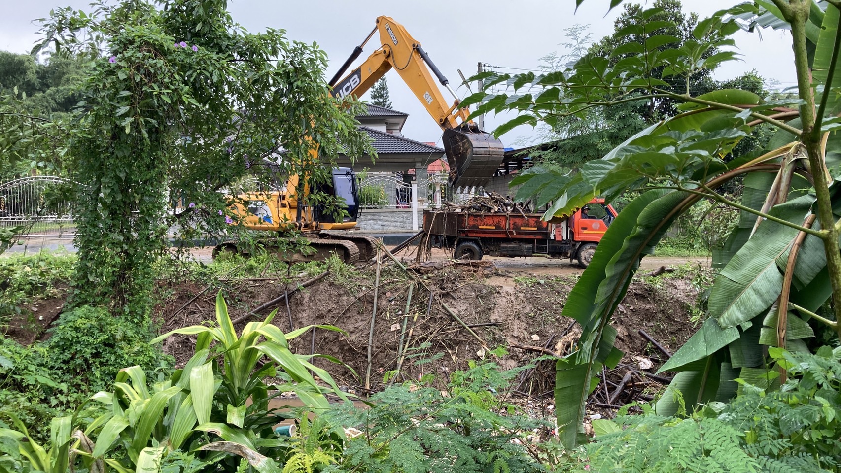 นายฐานิศร์ กมลรัตนา นายกเทศมนตรีตำบลเวียงฝาง และนายบุญรัตน์ จันทร์แสง นายกเทศมนตรีตำบลสันทราย ได้ร่วมมือนำเจ้าหน้าที่พร้อมรถแมคโฮมาทำการตักขยะที่ขวางกั้นลำน้ำ แล้วตัดต้นไม้ที่ขวางทางน้ำ