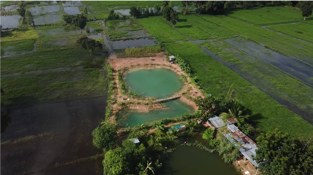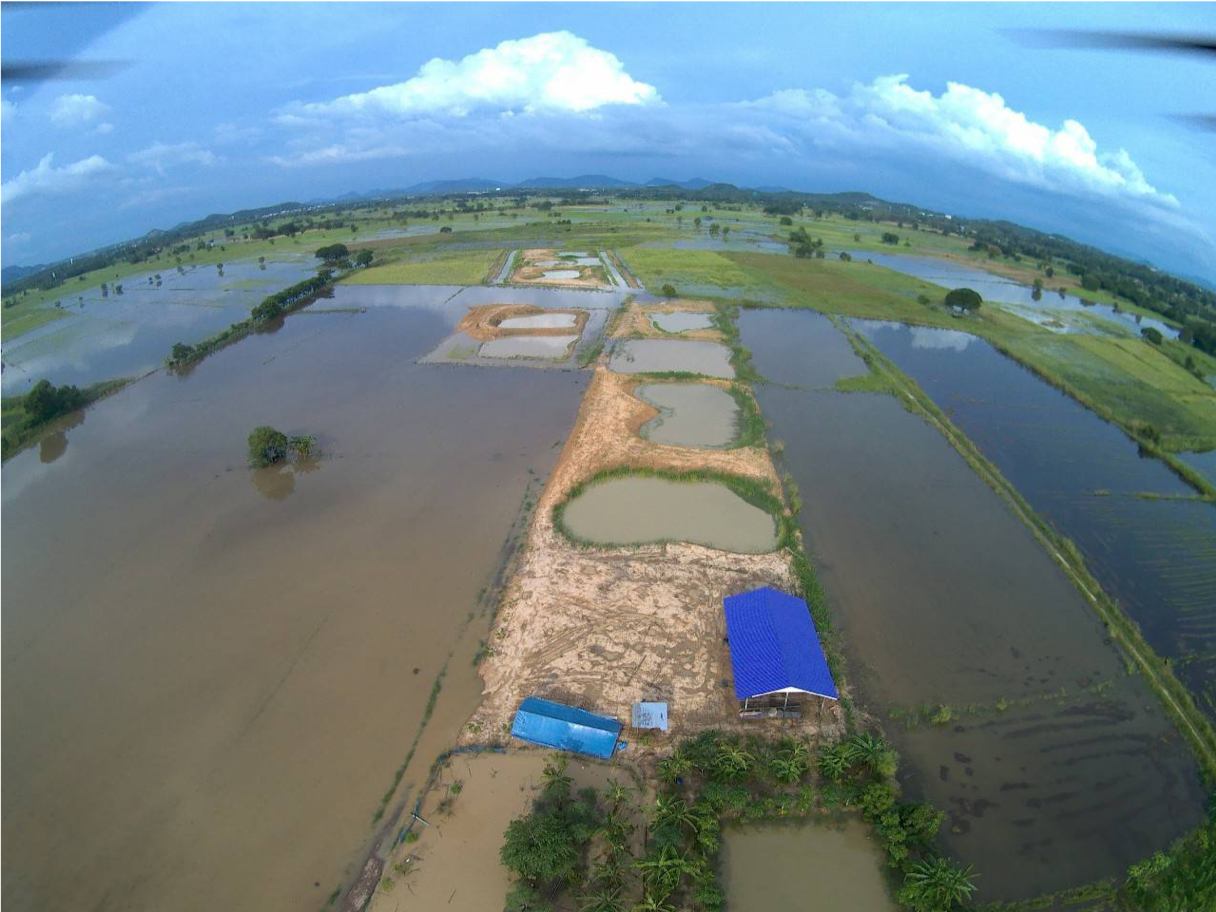แปลงของนายสมหมาย พันพะม่า ที่อยู่ ตำบลประดู่ อำเภอสำโรงทาบ จังหวัดสุรินทร์ พื้นที่ศูนย์เรียนรู้หมู่บ้านเศรษฐกิจพอเพียง ขนาดพื้นที่ 1 ไร่ สามารถกักเก็บน้ำไว้ได้อย่างดี ลดความเสียหายจากน้ำท่วม