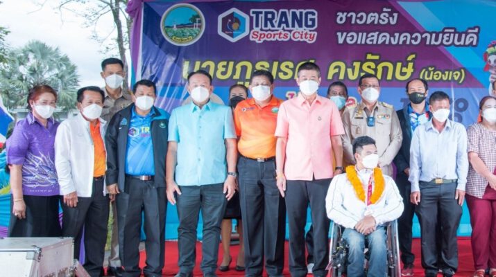 นายก อบจ.ตรัง ร่วมกิจกรรมเชิดชูเกียรตินักกีฬากรีฑาวีลแชร์เรซซิ่งทีมชาติไทย เพื่อเป็นขวัญและกำลังใจให้นักกีฬาผู้ทำคุณประโยชน์และสร้างชื่อเสียงให้กับประเทศไทยและ จ.ตรัง