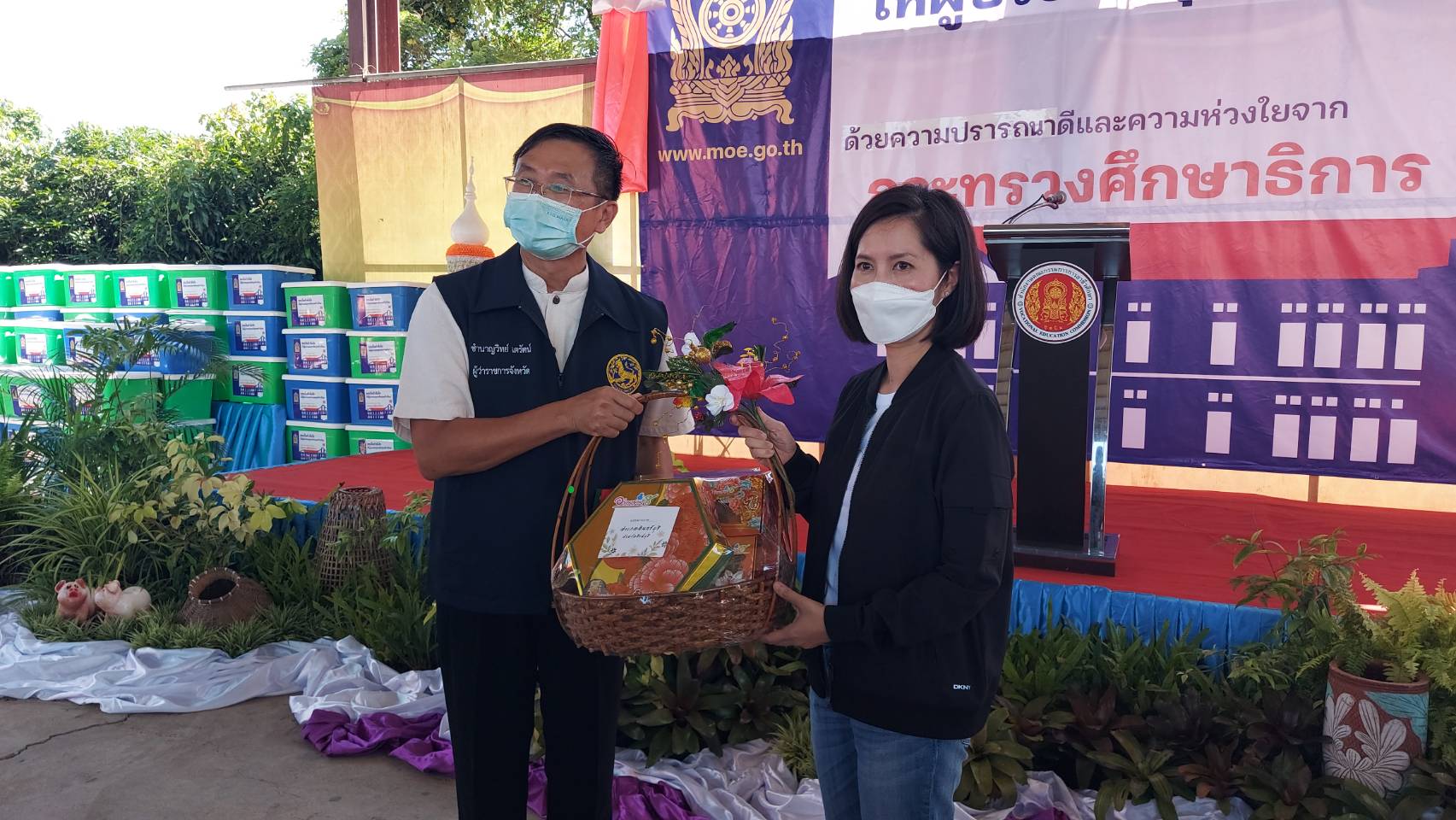 รัฐมนตรีว่าการกระทรวงศึกษาธิการพร้อมคณะ เดินทางไปมอบกล่องยังชีพให้ขวัญกำลังใจ ช่วยผู้ประสบภัยน้ำท่วมจังหวัดสิงห์บุรี