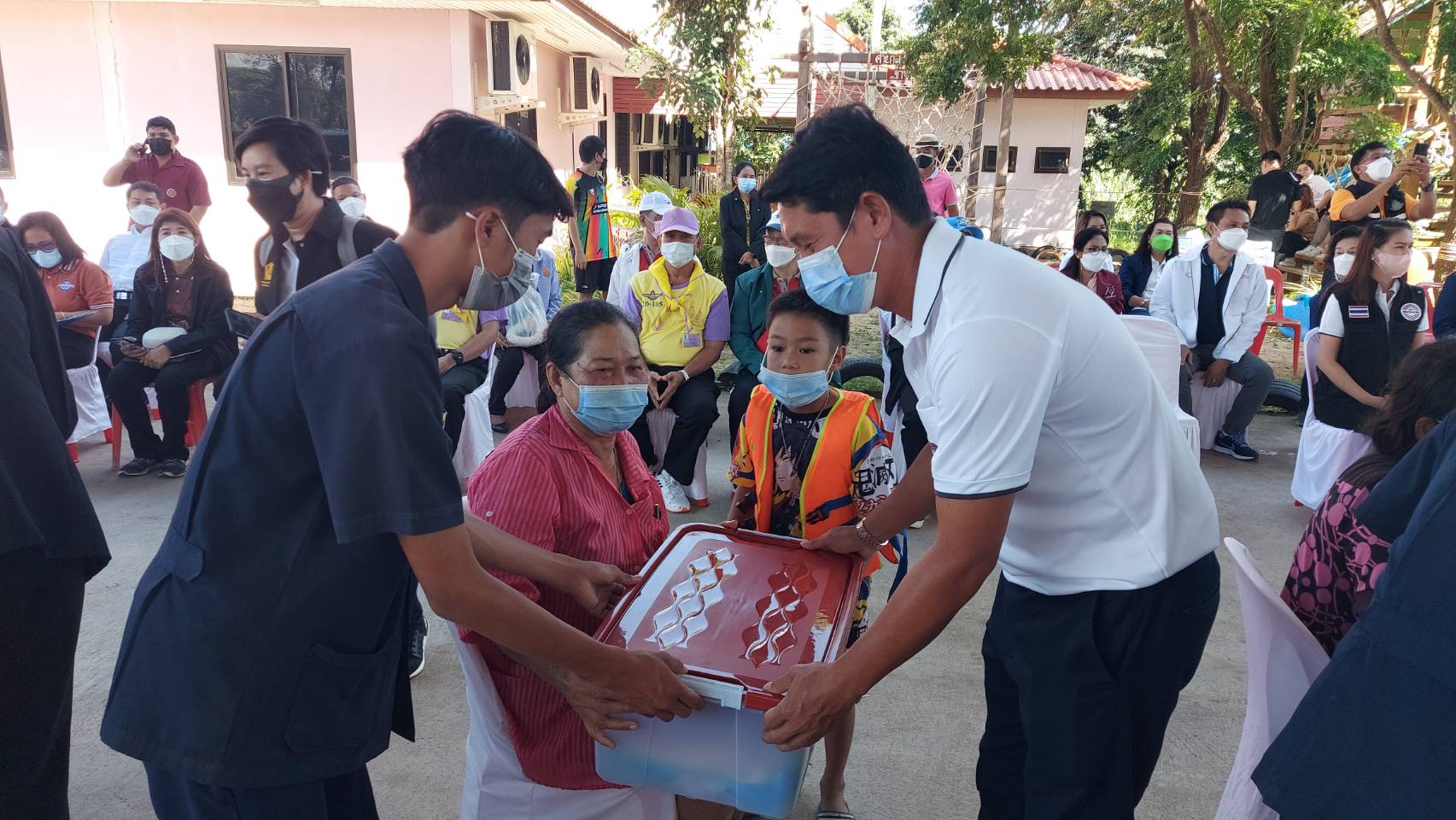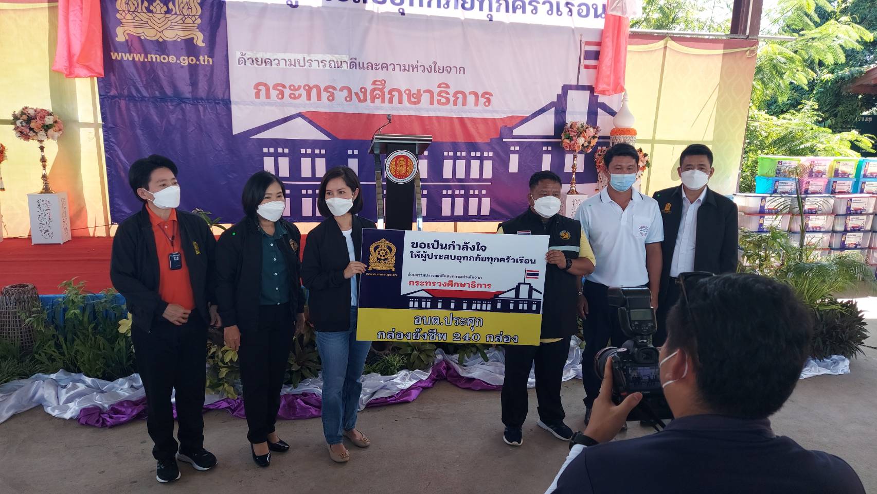 ต่อจากนั้นว่ากระทรวงศึกษาธิการได้เดินทางไปขึ้นเรือเพื่อไปมอบกล่องยังชีพเป็นขวัญและกำลังใจแก่ผู้สูงอายุและผู้พิการ ที่กำลังประสบอุทกภัยอยู่ในพื้นที่ตำบลประศุก หมู่ 6 อำเภออินทร์บุรี ให้สามารถดำรงชีวิตอยู่ได้