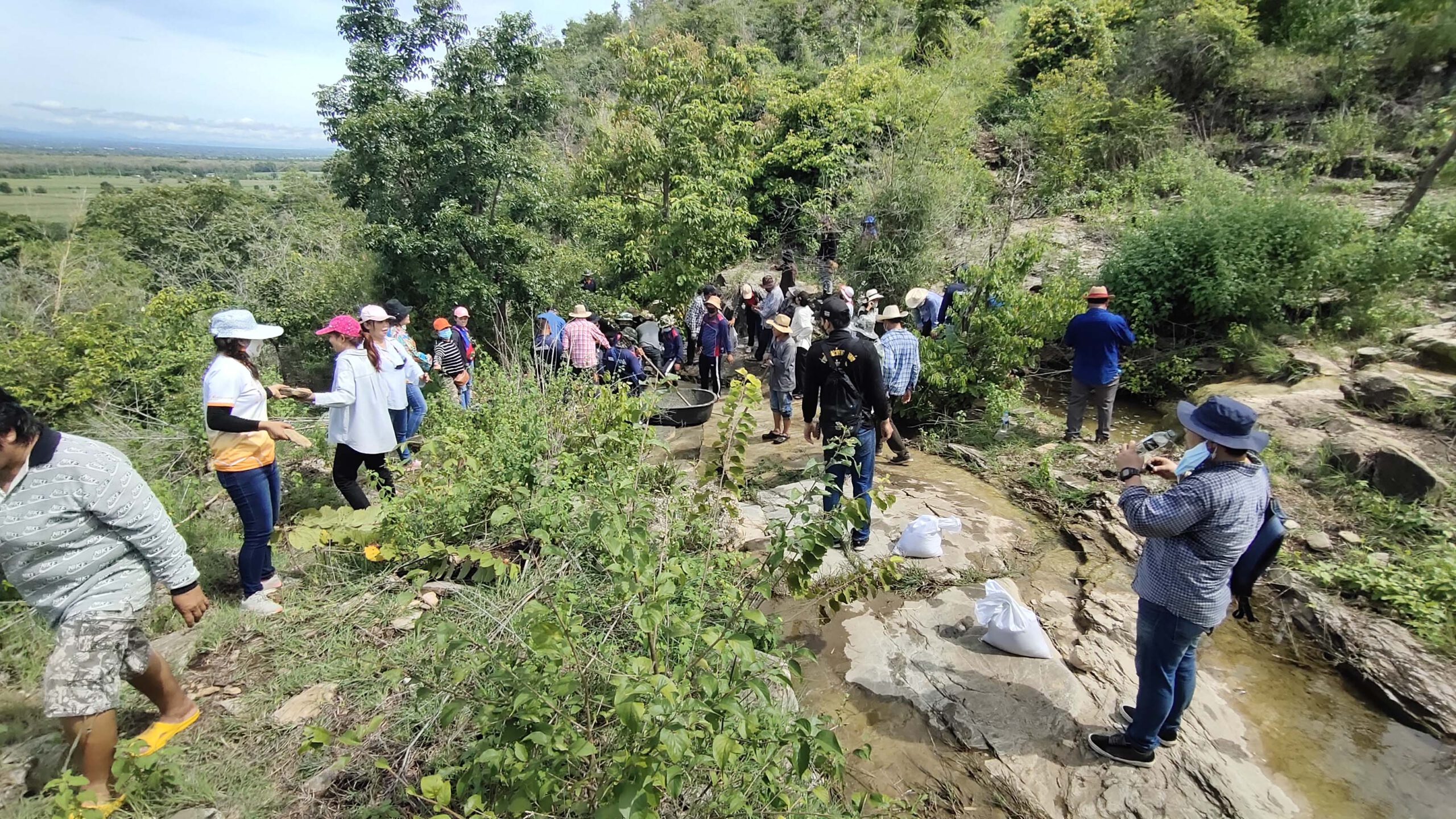 ที่ จ.สุพรรณบุรี นายมนตรี คำตัน นายกเทศมนตรีตำบลบ้านโข้ง นายวิทยา ศรีบุญเพ็ง ประธานสภาเทศบาลตำบลบ้านโข้ง นางอัจฉรา ศศิประภา ผู้ใหญ่บ้านหมู่ 4 ต.บ้านโข้ง นายสมพงษ์ ปรางรัศมี ผู้ช่วยผู้ใหญ่บ้านหมู่ 4 ต.บ้านโข้ง ชาวบ้านทุ่งดินดำ ชาวบ้านจิตอาสา ในพื้นที่และใกล้เคียง ร่วมกับผู้บริหารท้องถิ่น สมาชิก เทศบาล ผู้ใหญ่บ้าน ผู้นำชุมชน คณะครู นักเรียน นักศึกษา จาก กศน.ต.บ้านโข้ง และเยาวชน เกือบ 100 คนช่วยกันสร้างฝายชะลอน้ำที่ป่าชุมชนบนภูเขาบ้านทุ่งดินดำ หมู่ 4 ต.บ้านโข้ง อ.อู่ทอง จ.สุพรรณบุรี ซึ่งบริเวณที่สร้างฝายชะลอน้ำนั้นเป็นร่องน้ำจากยอดเขาที่เป็นต้นน้ำไหลลงไปด้านล่างซึ่งมีพื้นที่การเกษตรเช่นไร่ข้าวโพด มันสำปะหลัง และนาข้าว