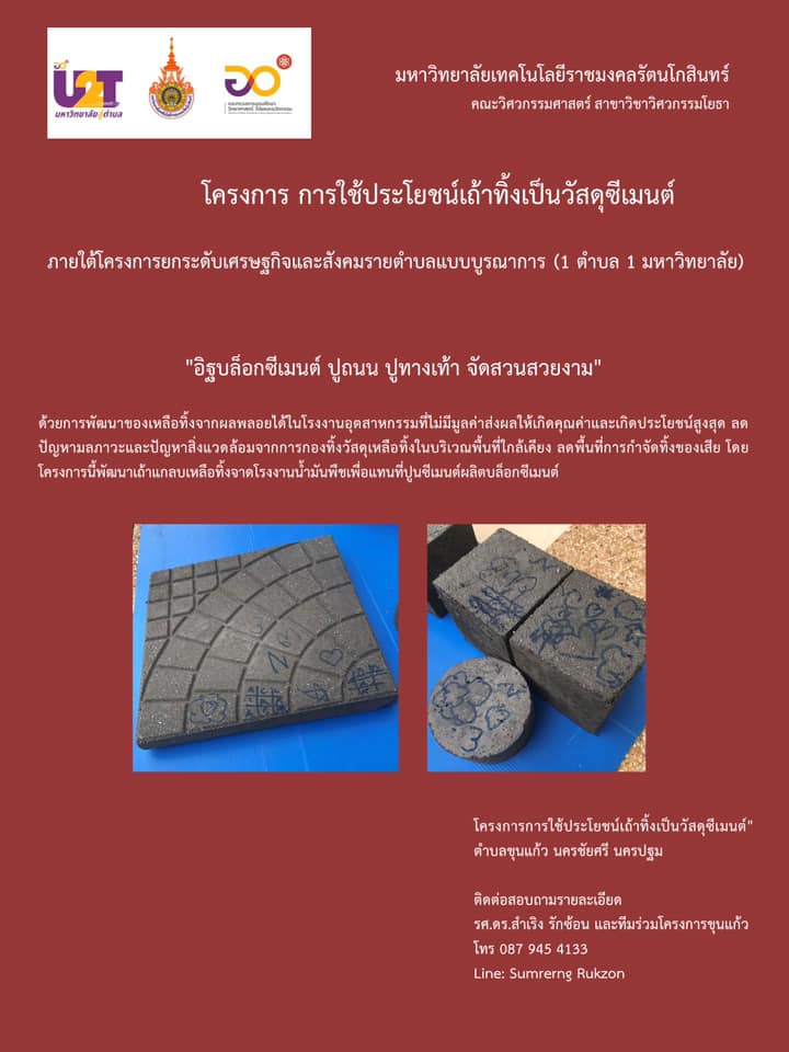 มหาวิทยาลัยเทคโนโลยีราชมงคลรัตนโกสินทร์ ขอแสดงความยินดี กับรางวัลชนะเลิศอันดับ 1 การประกวดภาพ banner ภายใต้หัวข้อ “นวัตกรรมกับ U2T โดย รศ.ดร.สำเริง รักซ้อน คณะวิศวกรรมศาสตร์ มทร.รัตนโกสินทร์ ในโครงการยกระดับเศรษฐกิจและสังคมรายตำบลแบบบูรณาการ (1ตำบล 1มหาลัย) หรือ (U2T) ตำบลขุนแก้ว อำเภอนครชัยศรี จังหวัดนครปฐม