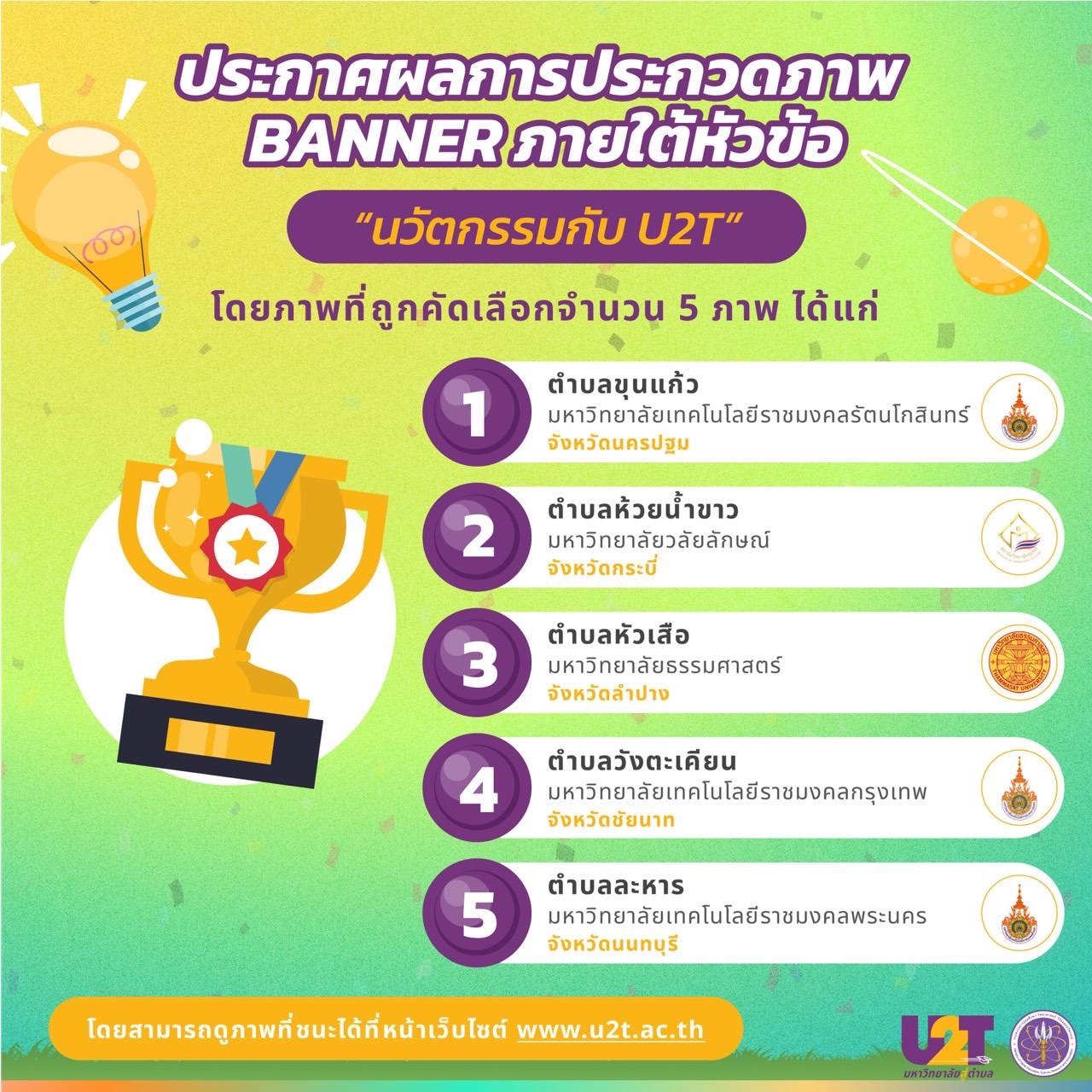 มทร.รัตนโกสินทร์ คว้ารางวัลชนะเลิศอันดับ 1 การประกวดภาพ banner ภายใต้หัวข้อ “นวัตกรรมกับ U2T