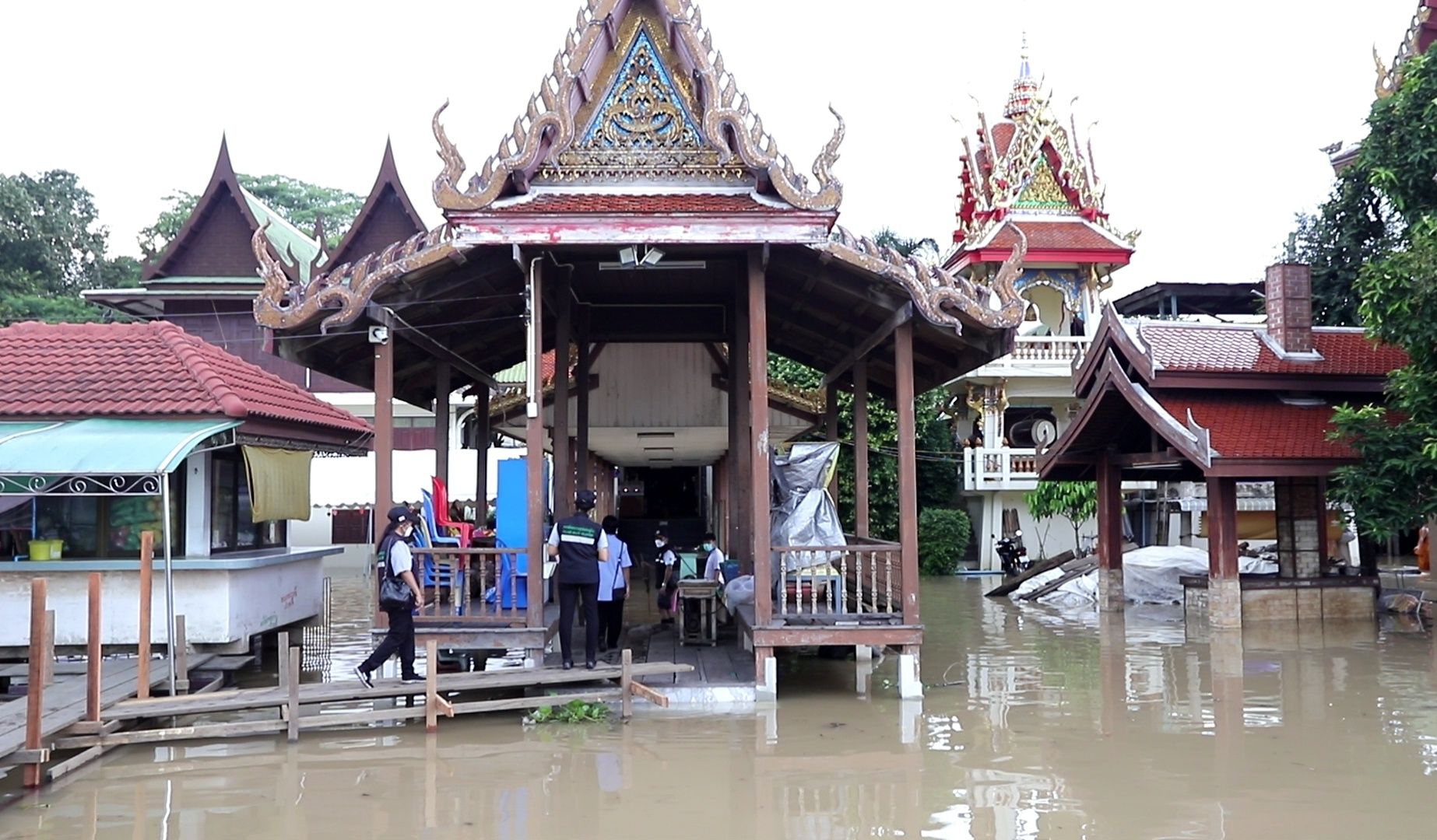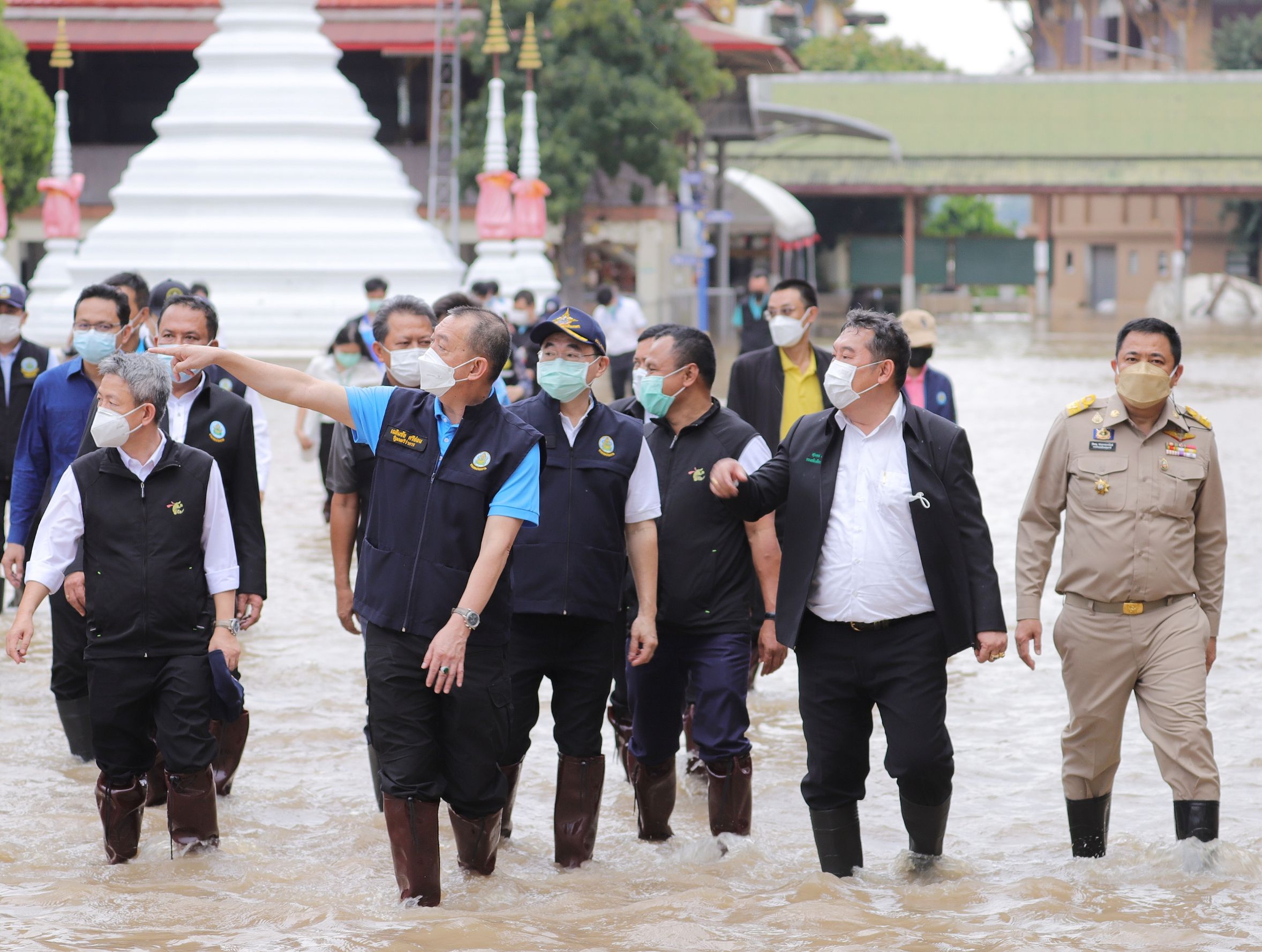 นายเฉลิมชัย ศรีอ่อน รัฐมนตรีว่าการกระทรวงเกษตรและสหกรณ์ เปิดเผยภายหลังลงพื้นที่ติดตามสถานการณ์น้ำของลุ่มน้ำเจ้าพระยา ณ ชุมชนวัดน้ำวน ตำบลบางเดื่อ อำเภอเมือง จังหวัดปทุมธานี โดยได้พบปะพูดคุยและมอบสิ่งของให้กับชุมชนนอกคันกั้นน้ำบริเวณชุมชนวัดน้ำวน และติดตามสถานการณ์น้ำ บริเวณริมสองฝั่งแม่น้ำเจ้าพระยา จากบริเวณท่าเรือวัดน้ำวน จนถึงท่าเรือกรมชลประทาน สามเสน ว่า จากสภาพอากาศที่มีฝนที่ตกหนักในหลายพื้นที่ทางตอนบนของลุ่มน้ำเจ้าพระยา ส่งผลให้มีน้ำท่าปริมาณมากจากลำน้ำสาขาไหลลงสู่แม่น้ำเจ้าพระยา ทำให้มีระดับน้ำเพิ่มสูงขึ้น ซึ่งจังหวัดปทุมธานี มีพื้นที่ส่วนใหญ่เป็นที่ราบลุ่มริมสองฝั่งแม่น้ำโดยมีแม่น้ำเจ้าพระยาไหลผ่านใจกลางจังหวัดในเขตอำเภอเมืองปทุมธานีและอำเภอสามโคก ทำให้พื้นที่ของจังหวัดปทุมธานีถูกแบ่งออกเป็น 2 ส่วน คือ ฝั่งตะวันตกของจังหวัดหรือบนฝั่งขวาของแม่น้ำเจ้าพระยา กับฝั่งตะวันออกของจังหวัดหรือบนฝั่งซ้ายของแม่น้ำเจ้าพระยา จึงได้มอบหมายกรมชลประทานให้บริหารจัดการน้ำ เพื่อรองรับปริมาณน้ำที่อาจเพิ่มสูงขึ้นอย่างต่อเนื่อง