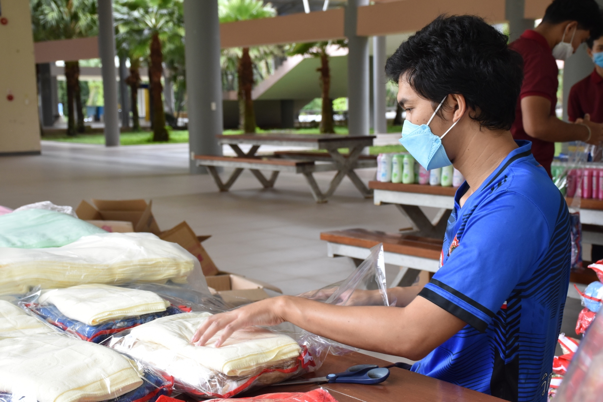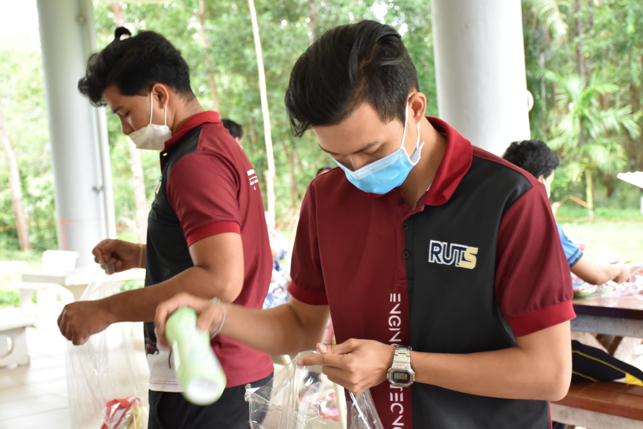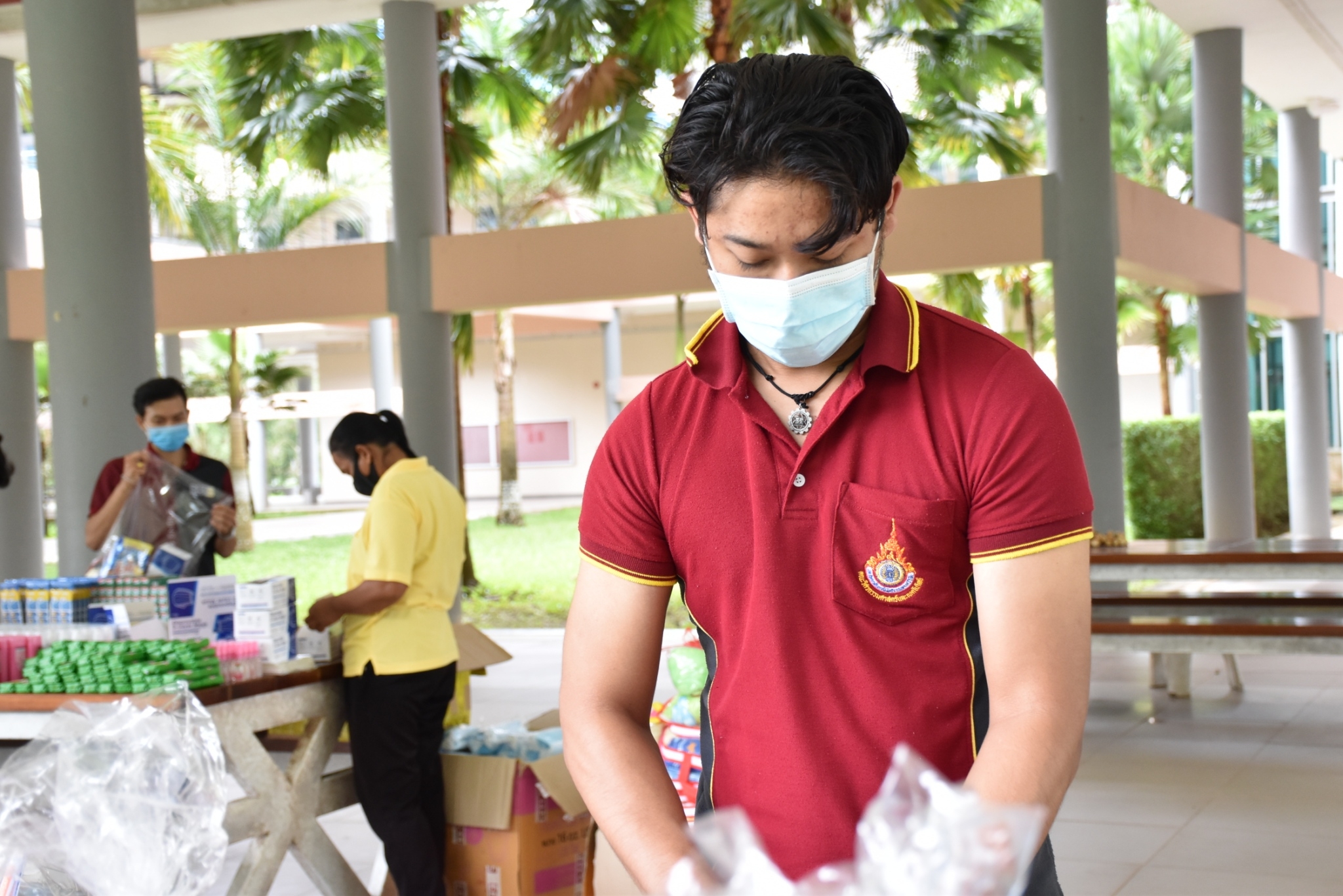 ด้านนายปรเมศ ทองเกิด นักศึกษาคณะวิศวกรรมศาสตร์และเทคโนโลยี มทร.ศรีวิชัย วิทยาเขตตรัง ผู้ดำเนินโครงการค่ายอาสา วิศวะ&เทคโน กล่าวว่า ตนได้ติดต่อสอบถามไปยังโรงพยาบาลตรังเพื่อสำรวจความต้องการในการจัดซื้อเครื่องอุปโภคบริโภค จากนั้นได้ทำการเปิดรับบริจาคเงิน เพื่อร่วมสมทบทุนและนำเงินส่วนหนึ่งของโครงการค่ายอาสาฯ ในการจัดซื้อสิ่งของต่างๆ จากนั้นจึงประสานไปยังเพื่อนๆนักศึกษา สมาชิกในโครงการฯ ช่วยกันจัดเตรียมสิ่งของ และนำมามอบให้กับโรงพยาบาลตรังเพื่อแจกจ่ายไปยังโรงพยาบาลสนามอื่นๆต่อไป