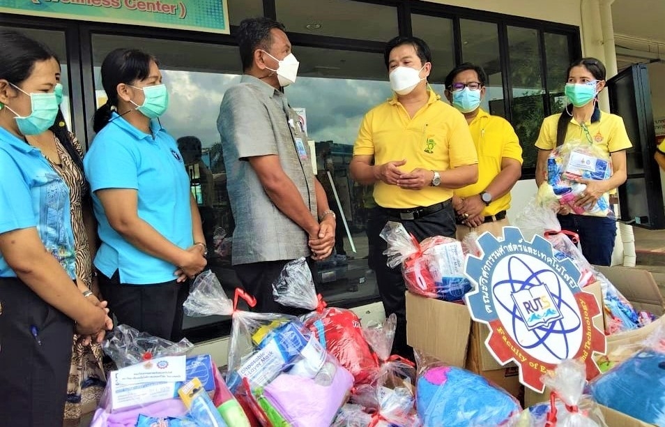 . วันที่ 1 ตุลาคม 2564 ผศ.กิตติกร ขันแกล้ว คณบดีคณะวิศวกรรมศาสตร์และเทคโนโลยี ผศ. ดร.ชัยวัฒน์ สากุล รองคณบดีฝ่ายวิชาการและวิจัย พร้อมด้วยอาจารย์ บุคลากร และนักศึกษาคณะวิศวกรรมศาสตร์และเทคโนโลยี มทร.ศรีวิชัย วิทยาเขตตรัง ร่วมส่งมอบสิ่งของเครื่องอุปโภคบริโภค ที่จำเป็นสำหรับโรงพยาบาลสนาม จำนวน 142 ชุด ภายใต้การดำเนินโครงการ ค่ายอาสา วิศวะ&เทคโน “ช่วยเหลือผู้ป่วยCOVID-19” พร้อมให้กำลังใจบุคลากรทางการแพทย์ในการปฏิบัติหน้าที่ เมื่อเวลา 10.00 น.นายสาธิต ณ พัทลุง รองผู้อำนวยการฝ่ายบริหารและบุคลากร โรงพยาบาลตรัง ได้เป็นตัวแทนในการรับมอบสิ่งของเพื่อช่วยเหลือผู้ป่วย COVID-19 ณ อาคารโรงพยาบาลตรัง ได้กล่าวว่า ตามจำนวนผู้ป่วยที่เพิ่มขึ้นในแต่ละวันโรงพยาบาลตรังซึ่งถือเป็นหน่วยงานหลักในการกระจาย สิ่งของเครื่องใช้ที่จำเป็นต่อผู้ป่วย ไปยังโรงพยาบาลสนามทั้ง 5 แห่ง โดยบางรายต้องใช้เวลาในการรักษาตัวที่โรงพยาบาลสนามเป็นเวลานานทำให้สิ่งของเครื่องใช้บางอย่างไม่เพียงพอต่อจำนวนผู้ป่วยที่เพิ่มขึ้นในแต่ละวัน