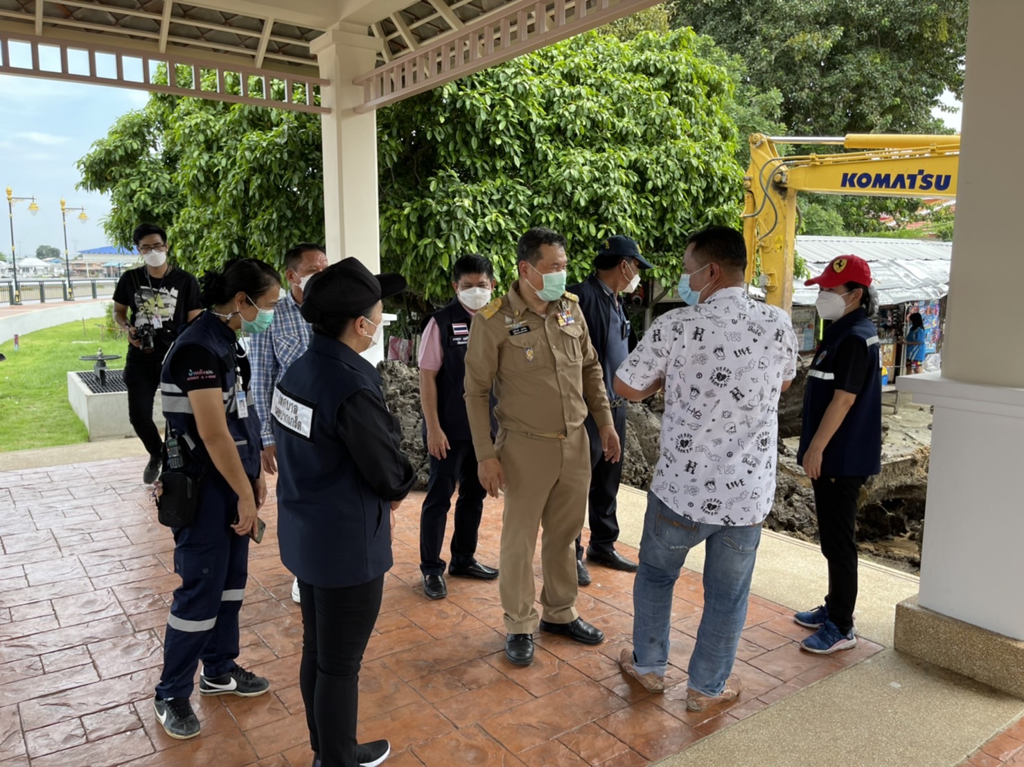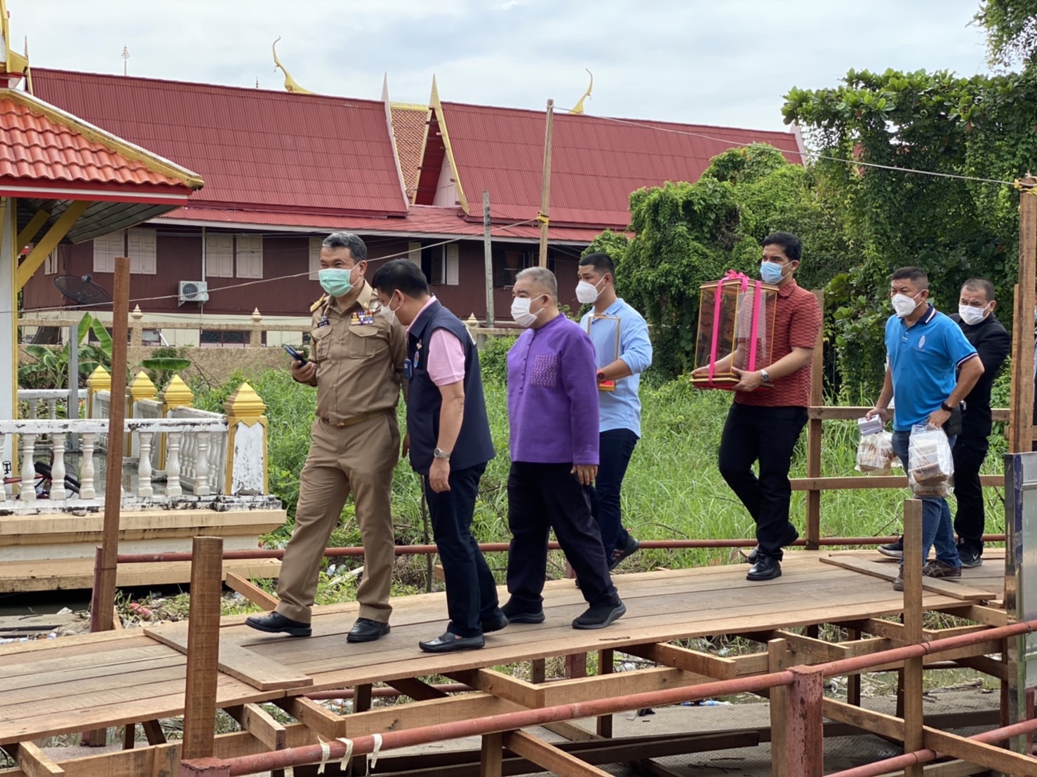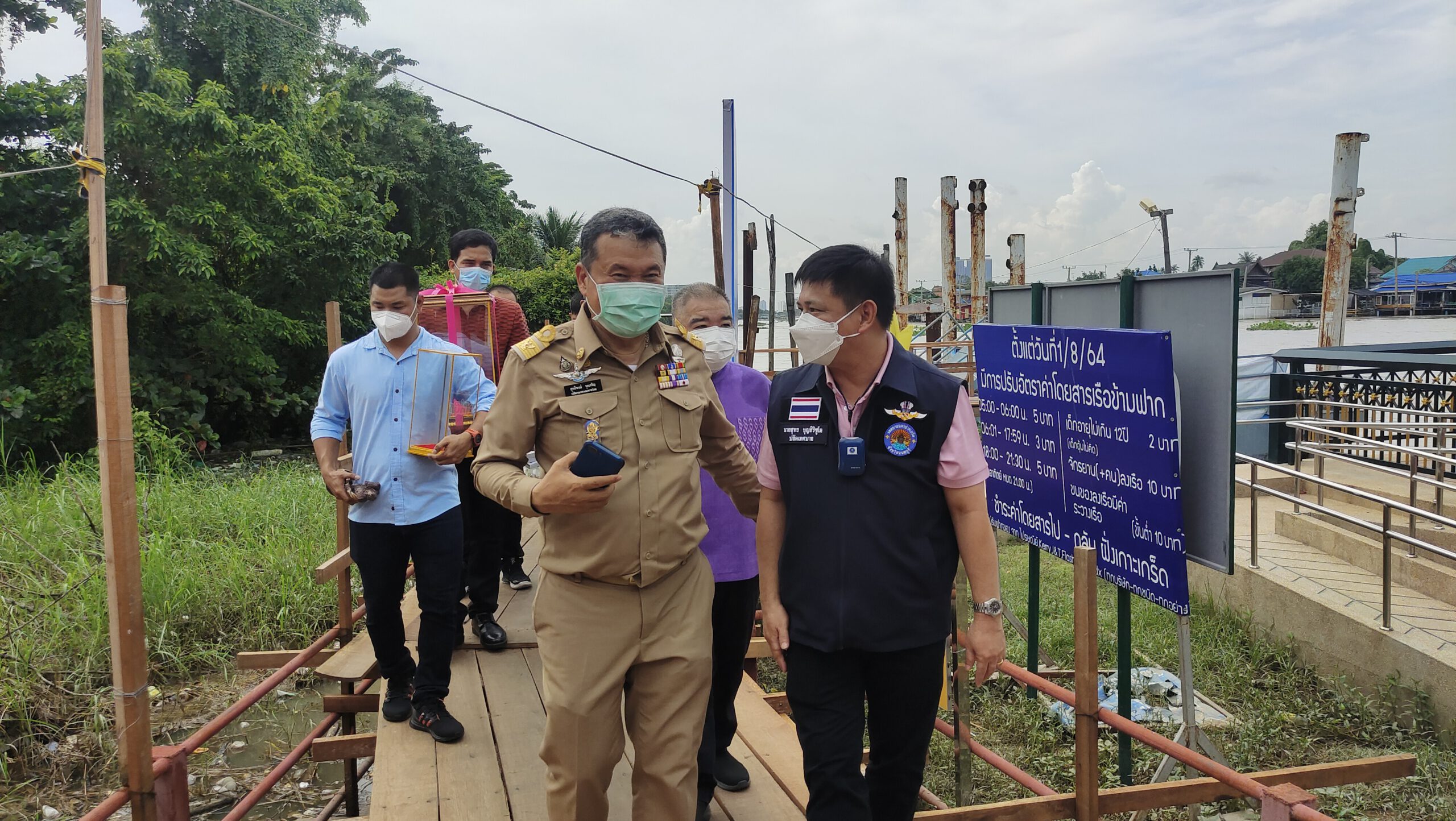 วันนี้ (2 ต.ค.64) ที่บริเวณท่าเรือวัดสนามเหนือ เขตเทศบาลนครปากเกร็ด อำเภอปากเกร็ด จังหวัดนนทบุรี นายสุทธิพงษ์ จุลเจริญ ปลัดกระทรวงมหาดไทย ตรวจเยี่ยมพร้อมให้กำลังใจประชาชนและเจ้าหน้าที่การดำเนินงานสร้างเขื่อนป้องกันน้ำท่วมพื้นที่เทศบาลนครปากเกร็ด โดยมี นายสมศักดิ์ ลามอ และนายบุญเสริม ปิ่นกาญจนนาวี รองนายกเทศมนตรีนครปากเกร็ด นายสุทร บุญสิริชูโต ปลัดเทศบาลนครปากเกร็ด นางปริญดา เชาว์อรัญ นางสาวพนารี กิมฮู้ นางสุทารัตน์ อรุณบรรเจิดกุล รองปลัดเทศบาลนครปากเกร็ด นายนพกร หวังพราย ผู้อำนวยการสำนักการช่าง พร้อมหัวหน้าส่วนราชการในสังกัดเทศบาลนครปากเกร็ด ให้การต้อนรับและนำตรวจเยี่ยม