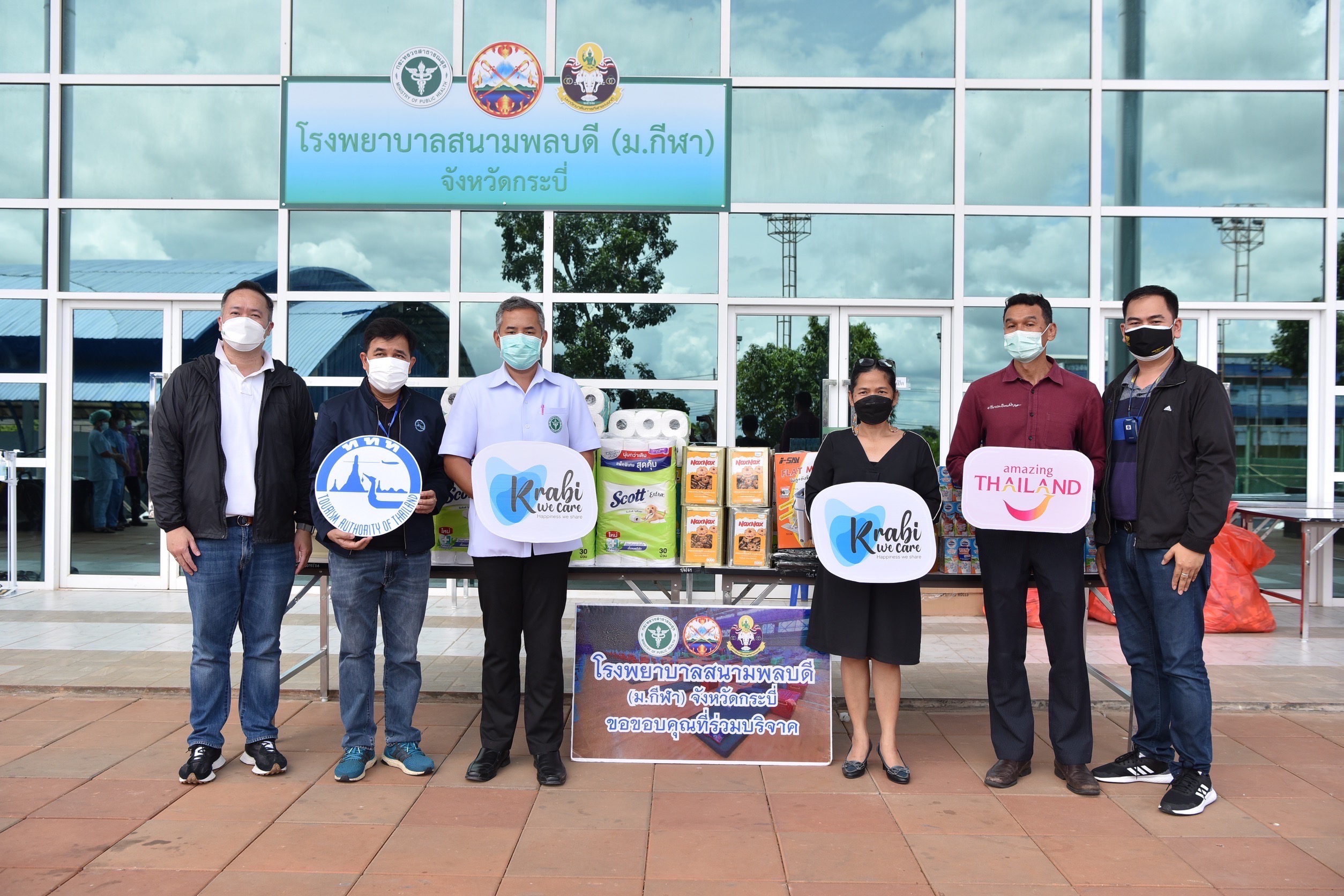 เมื่อวันที่ 28 กันยายน 2564การท่องเที่ยวแห่งประเทศไทย(ททท.) นำทีมโดยนายณัฐ ครุฑสูตร ผู้อำนวยการกองสร้างสรรค์กิจกรรม ฝ่ายกิจกรรม พร้อมด้วย รองผู้อำนวยการสำนักงานการท่องเที่ยวแห่งประเทศไทย สำนักงานกระบี่ และทีมเจ้าหน้าที่ ททท. เดินทางลงพื้นที่ไปให้กำลังใจ และมอบอาหาร เครื่องดื่ม และสิ่งของจำเป็น อาทิ กระดาษทิชชู ถุงขยะเกรดเอ น้ำยาทำความสะอาดพื้น ถุงมืออนามัยเครื่องดื่มไม่ว่าจะเป็น น้ำเปล่า นม และอาหารแห้ง ขนมต่าง ๆ เป็นต้น ให้แก่ เจ้าหน้าที่ ทีมแพทย์ และพยาบาลที่ปฏิบัติหน้าที่ รวมถึงผู้ป่วยโรคติดเชื้อไวรัสโคโรนา 2019 (COVID-19) ณ โรงพยาบาลสนามพลบดี (ม.กีฬา) จังหวัดกระบี่ โดยมีนายแพทย์ณัฐพงษ์ ดูงาม ผู้อำนวยการโรงพยาบาลสนามพลบดี (ม.กีฬา) จังหวัดกระบี่ เป็นผู้แทนรับมอบ