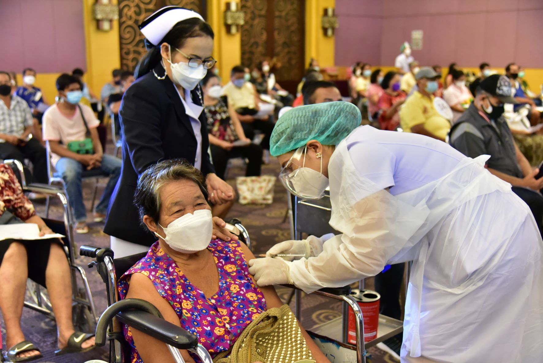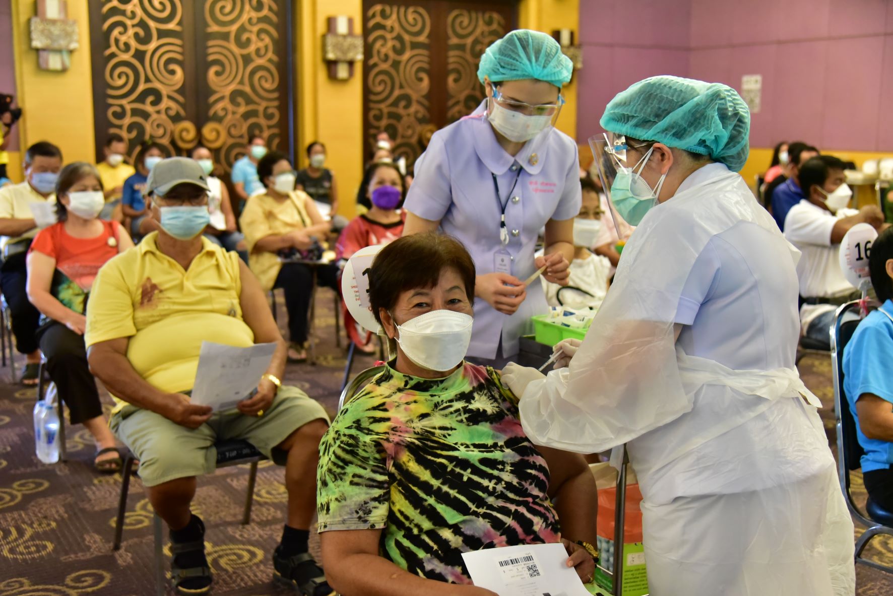 วันที่ 4 ตุลาคม 2564 บรรยากาศการฉีดวัคซีนของจังหวัดนครปฐม ที่อุทยานการอาชีพชัยพัฒนา อำเภอเมือง จังหวัดนปฐม มีประชาชนที่มีคิวนัดฉีดวัคซีนแอสตร้าเซนเนก้า เข็มที่ 2 เดินทางมารับบริการฉีดวัคซีน โดยมีทีมแพทย์ พยาบาล และเจ้าหน้าที่จากโรงพยาบาลนครปฐมคอยให้บริการ ซึ่งที่ผ่านมาจังหวัดนครปฐมได้ดำเนินการฉีดวัคซีนป้องกันโควิด-19 ตามกลุ่มเป้าหมาย สะสม 1,093,020 โดส คิดเป็นผู้ได้รับวัคซีนสะสม 59.44 เปอร์เซ็นต์ รวมประชากรแฝง 1,125,350 คน