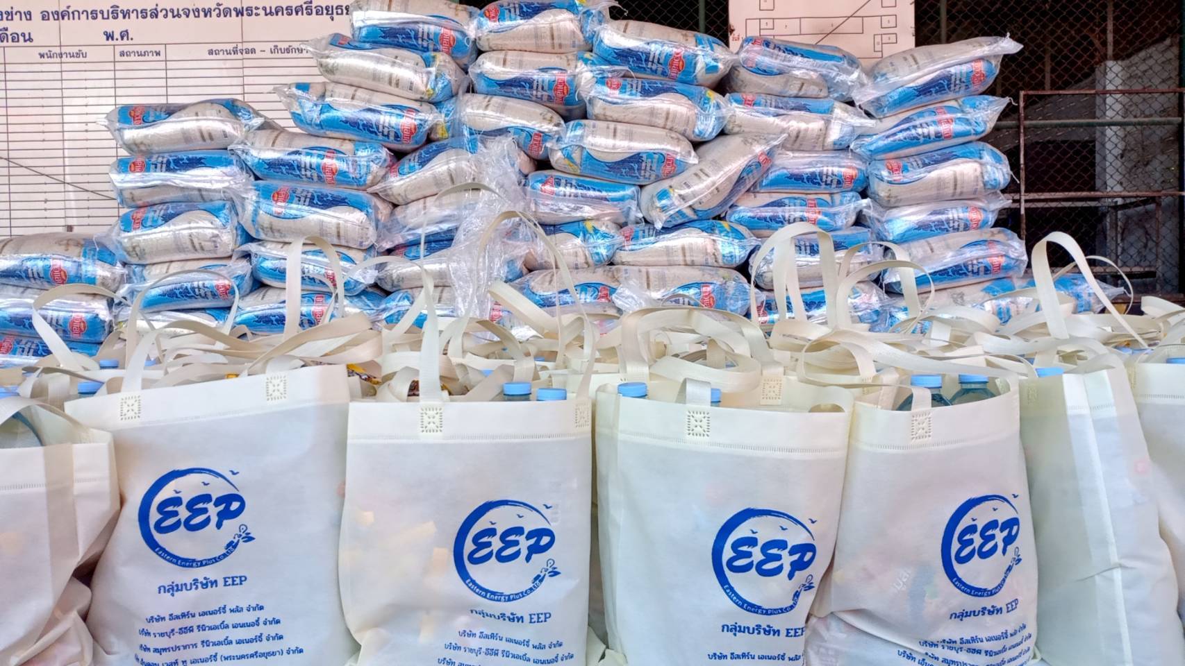 กลุ่มบริษัทอีอีพี ร่วมกับ บริษัทอีซีดับบลิว มอบชุดอาหารยังชีพช่วยเหลือประชาชนชาวอำเภอบางบาลที่ประสบภัยน้ำท่วม