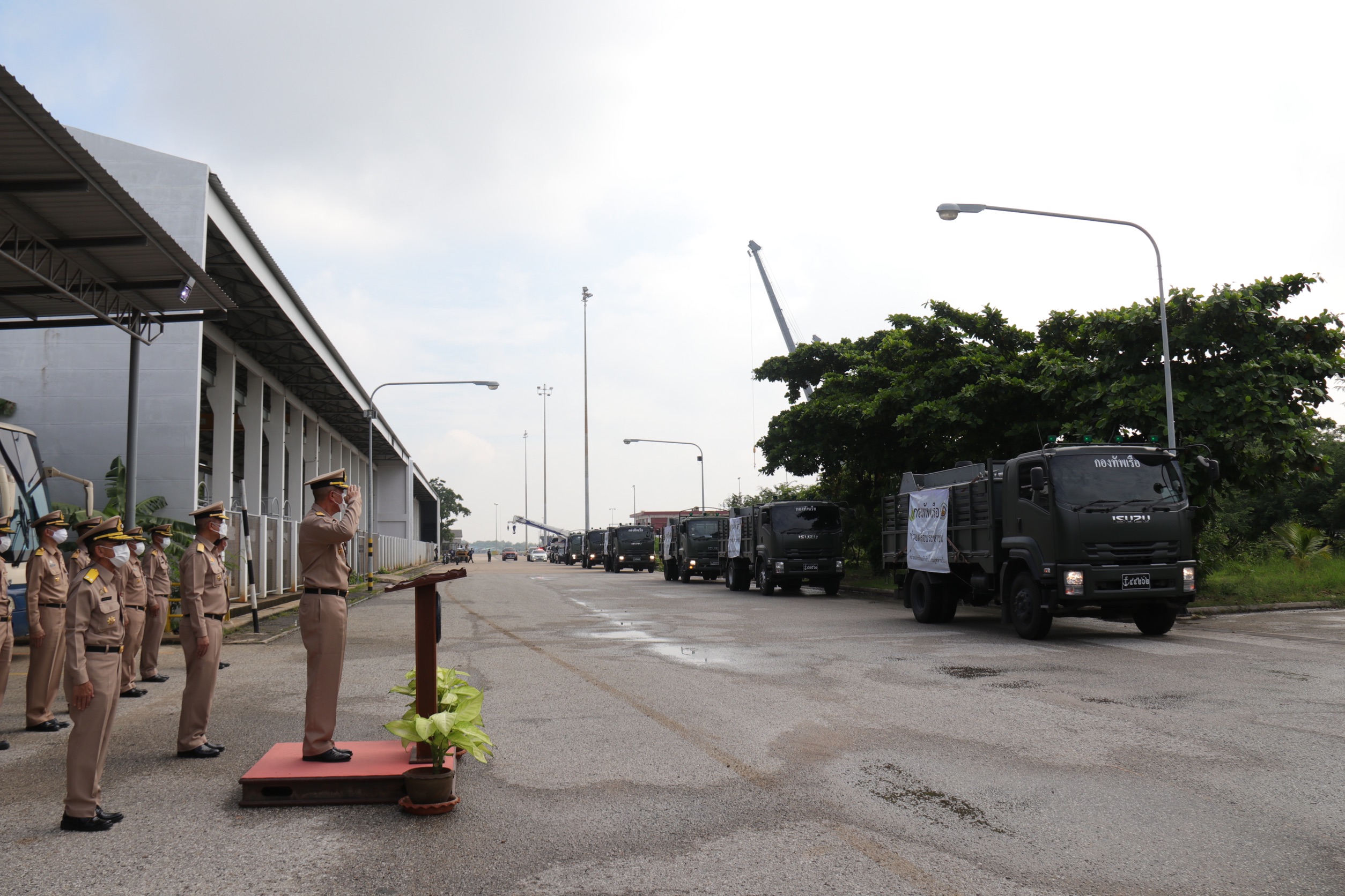 พลเรือตรี สุทธิศักดิ์ บุตรนาค รองผู้อำนวยการอู่ทหารเรือพระจุลจอมเกล้า กรมอู่ทหารเรือ ในฐานะ หัวหน้าชุดเฉพาะกิจผลักดันน้ำ อู่ทหารเรือพระจุลจอมเกล้า เป็นประธานในพิธีปล่อยขบวนลำเลียงเรือผลักดันน้ำ จำนวน 12 ลำ จากอู่ทหารเรือพระจุลจอมเกล้า กรมอู่ทหารเรือ อ.พระสมุทรเจดีย์ จ.สมุทรปราการ มาปฏิบัติภารกิจผลักดันน้ำที่คลองลัดโพธิ์